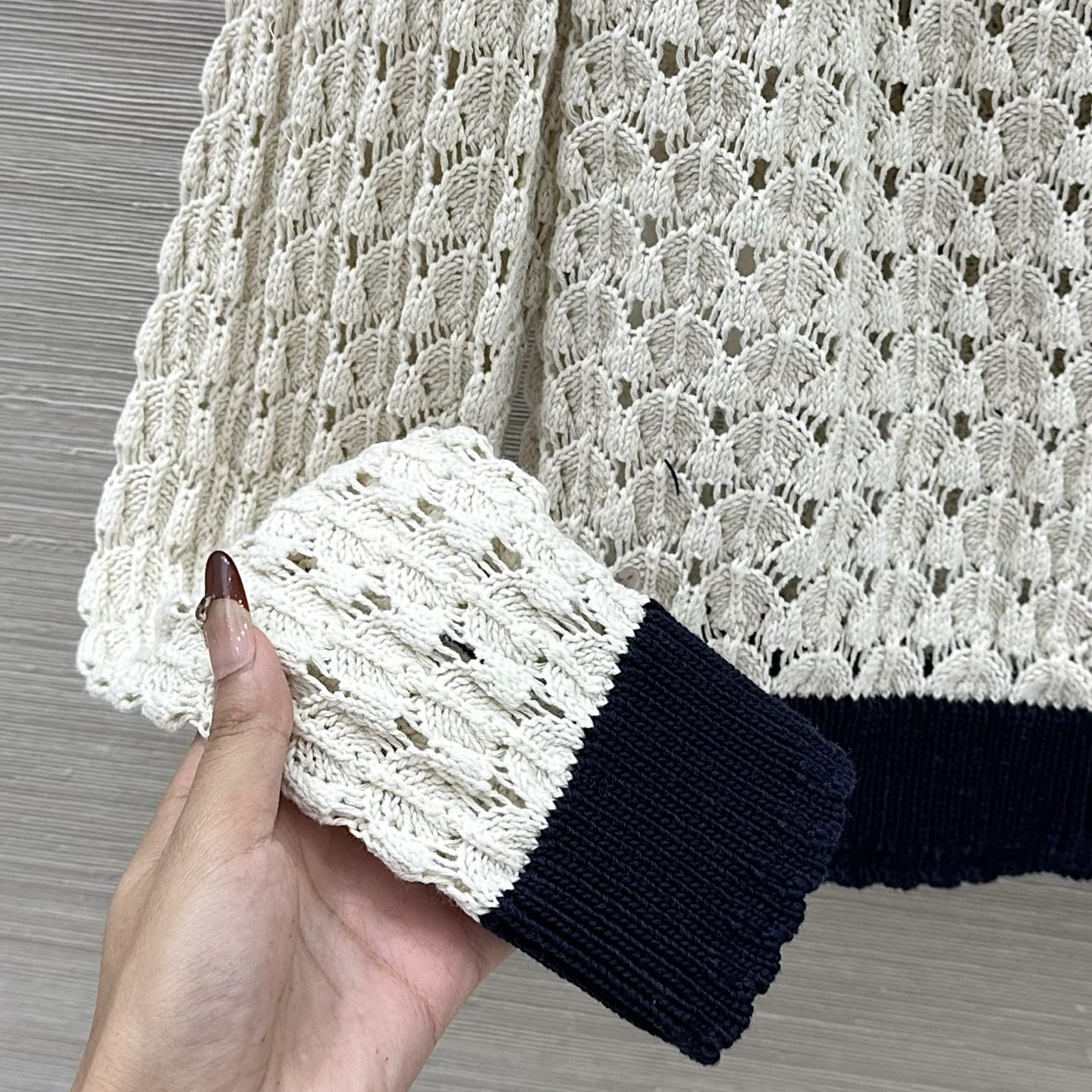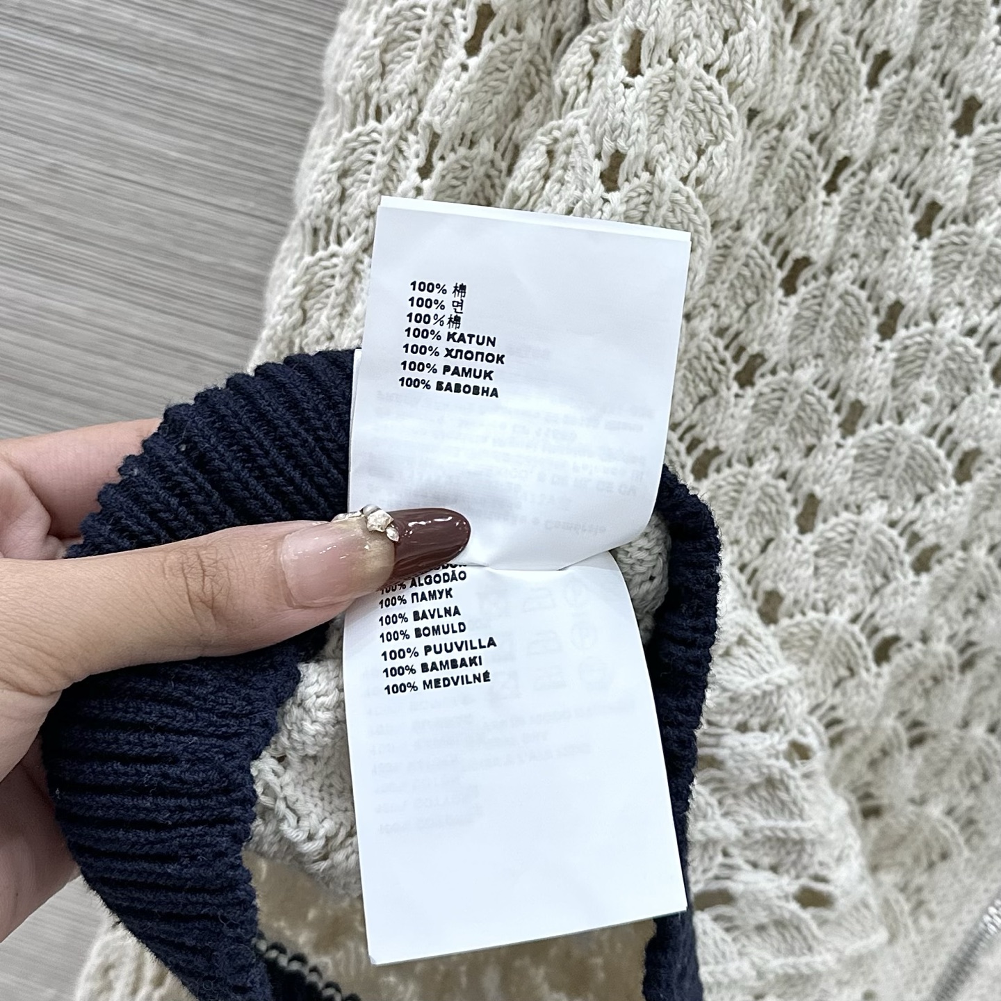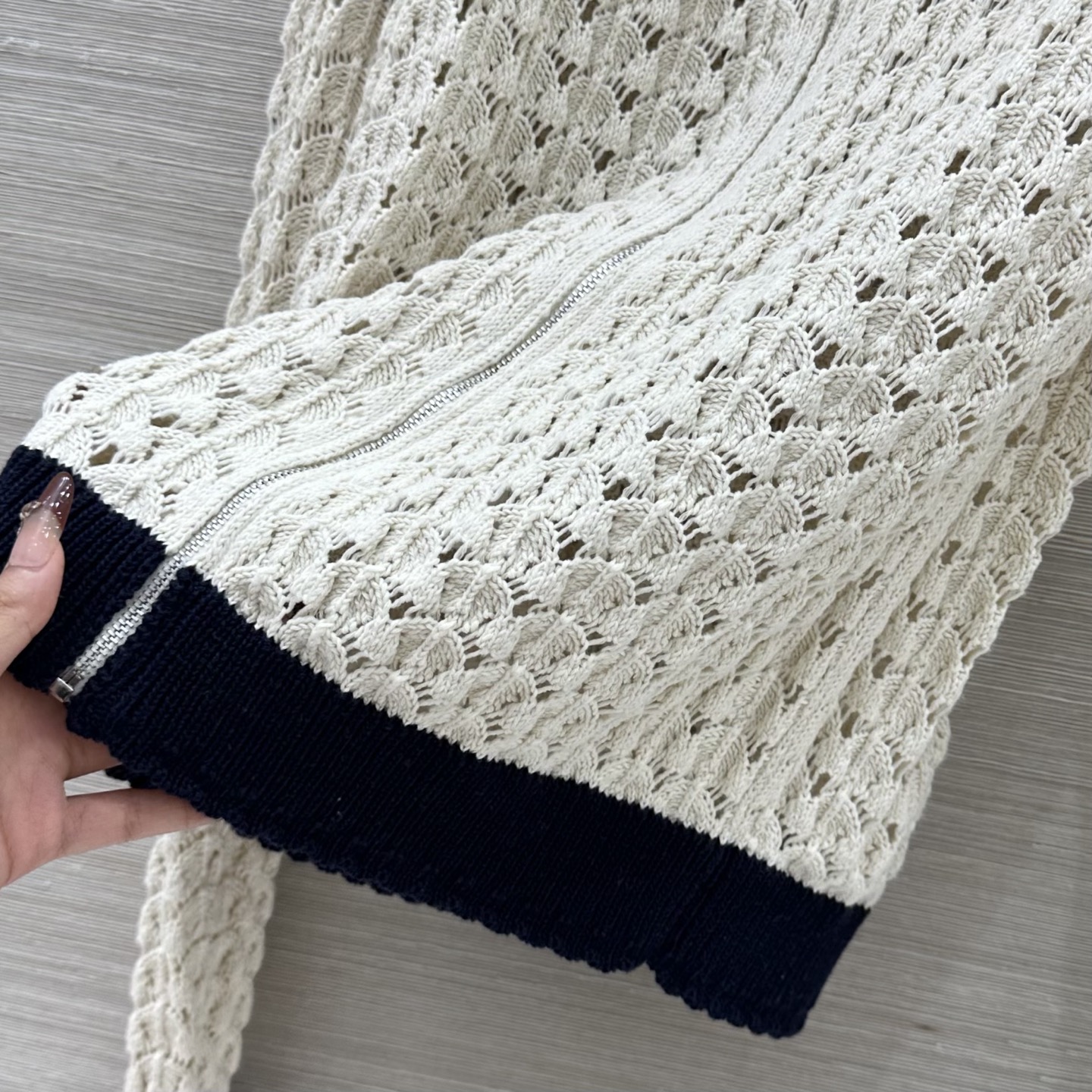 这款衣服是AAAAA 1:1 质量 (非常棒). 使用了和原版一模一样的材料. 商标部分也保持了和缪缪/Miu Miu一样. 图片拍摄是实物衣服拍摄, 您所收到的实物保证和我们图片一模一样.