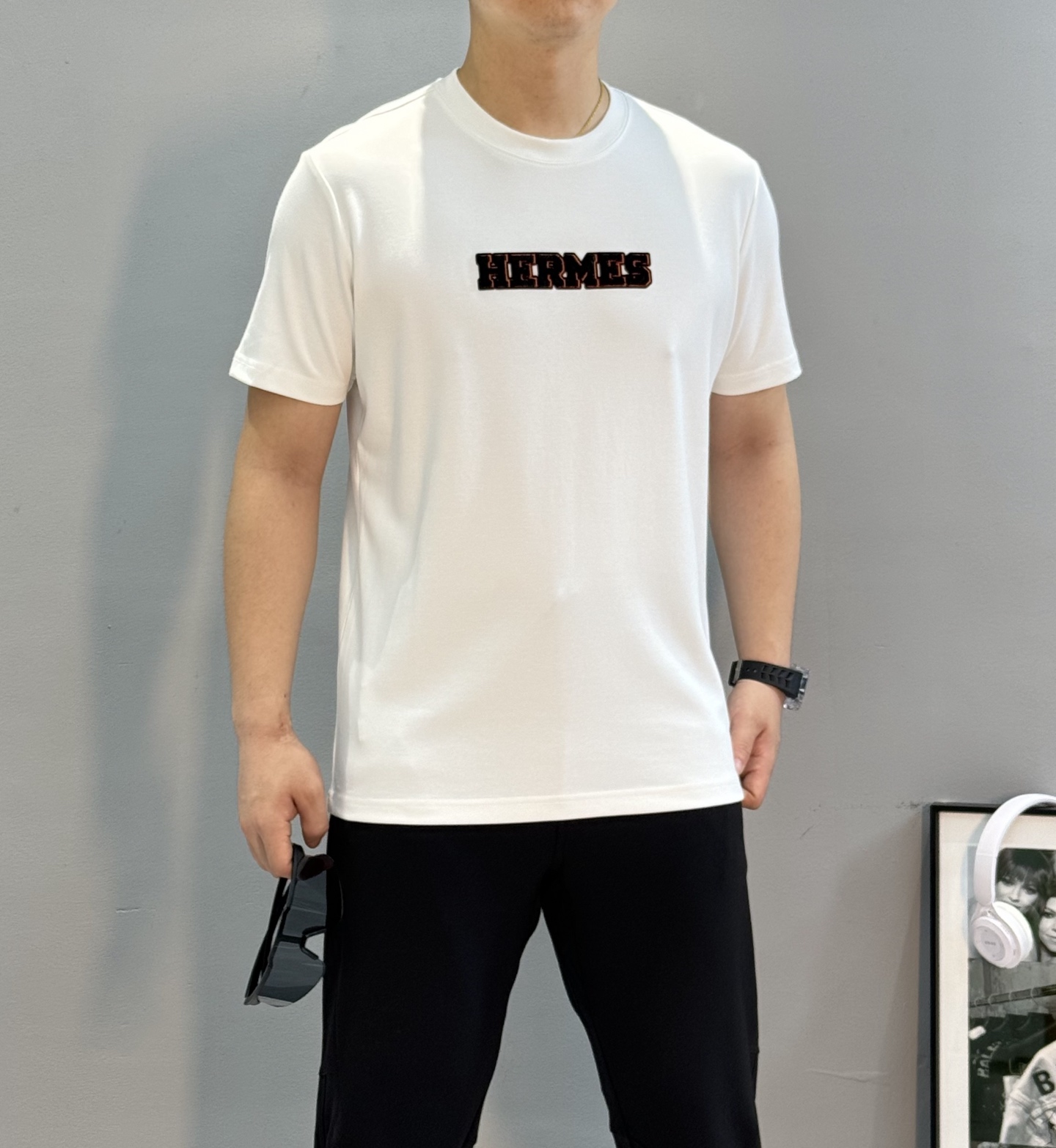 这款衣服是AAAAA 1:1 质量 (非常棒). 使用了和原版一模一样的材料. 商标部分也保持了和爱马仕/Hermes一样. 图片拍摄是实物衣服拍摄, 您所收到的实物保证和我们图片一模一样.