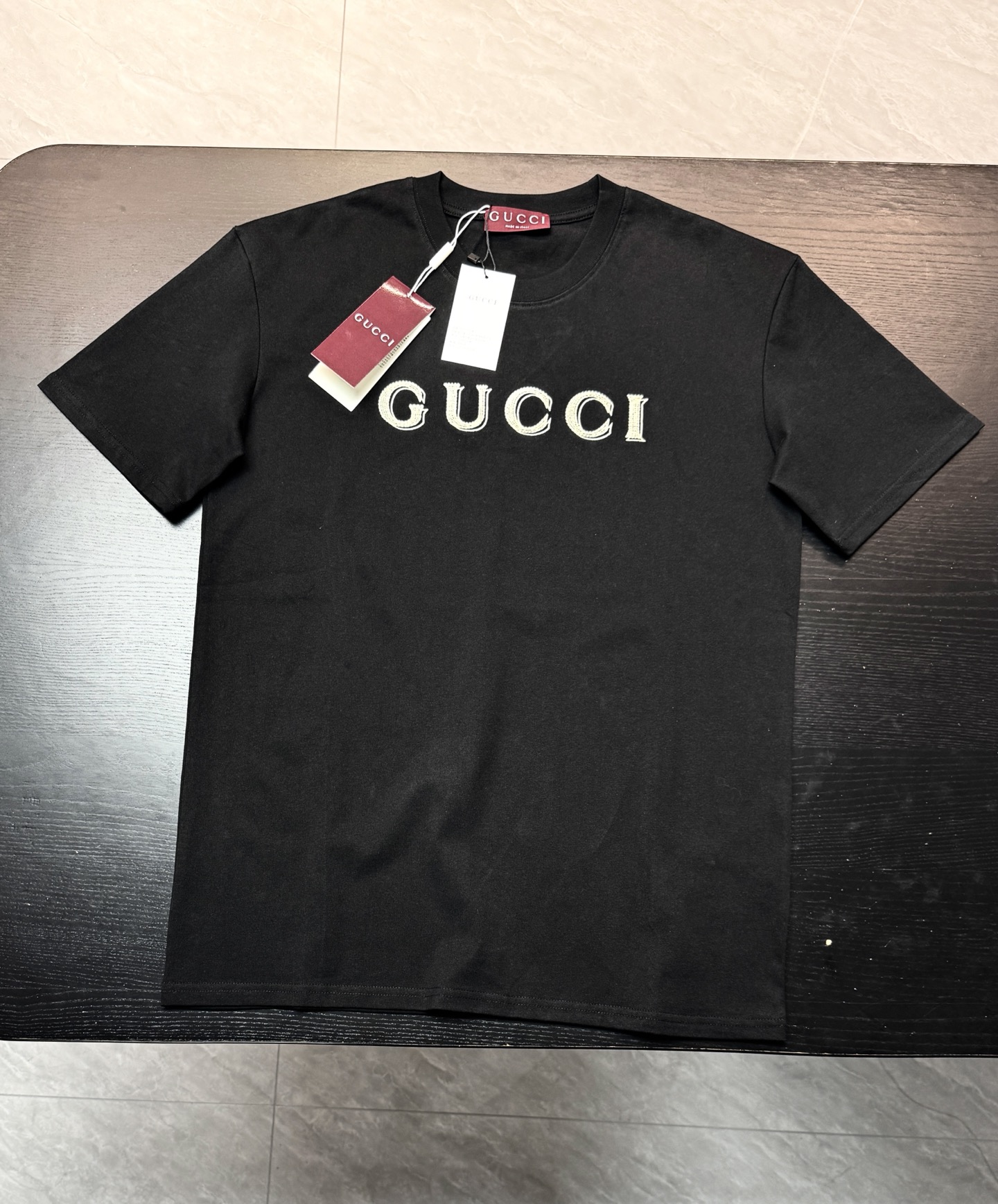 这款衣服是AAAAA 1:1 质量 (非常棒). 使用了和原版一模一样的材料. 商标部分也保持了和古奇/Gucci一样. 图片拍摄是实物衣服拍摄, 您所收到的实物保证和我们图片一模一样.