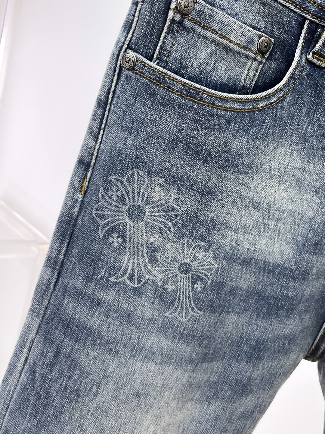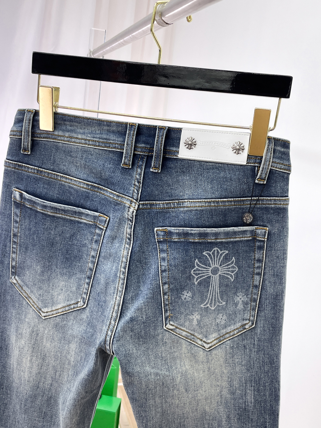 这款衣服是AAAAA 1:1 质量 (非常棒). 使用了和原版一模一样的材料. 商标部分也保持了和克罗心/Chrome Hearts一样. 图片拍摄是实物衣服拍摄, 您所收到的实物保证和我们图片一模一样.
