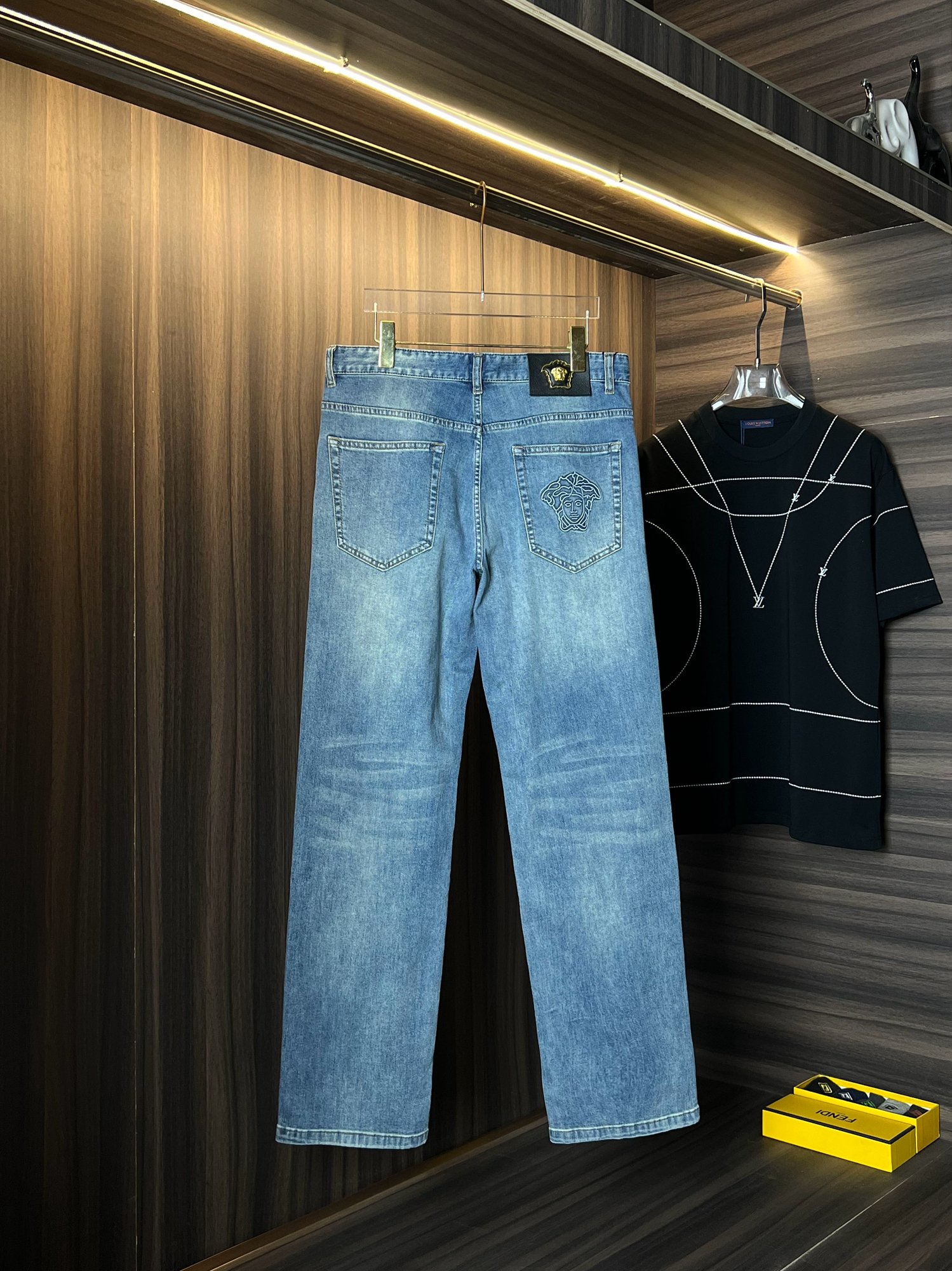 这款衣服是AAAAA 1:1 质量 (非常棒). 使用了和原版一模一样的材料. 商标部分也保持了和范思哲/Versace一样. 图片拍摄是实物衣服拍摄, 您所收到的实物保证和我们图片一模一样.