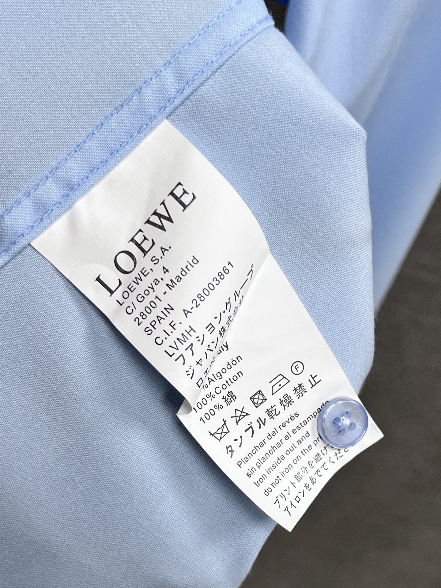 这款衣服是AAAAA 1:1 质量 (非常棒). 使用了和原版一模一样的材料. 商标部分也保持了和罗意威/Loewe一样. 图片拍摄是实物衣服拍摄, 您所收到的实物保证和我们图片一模一样.