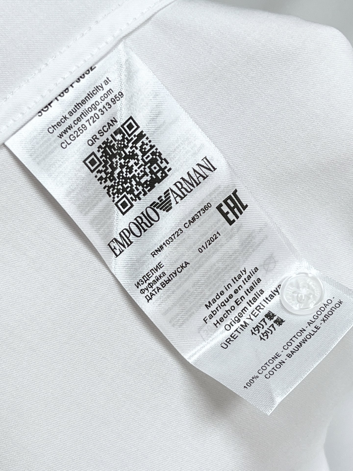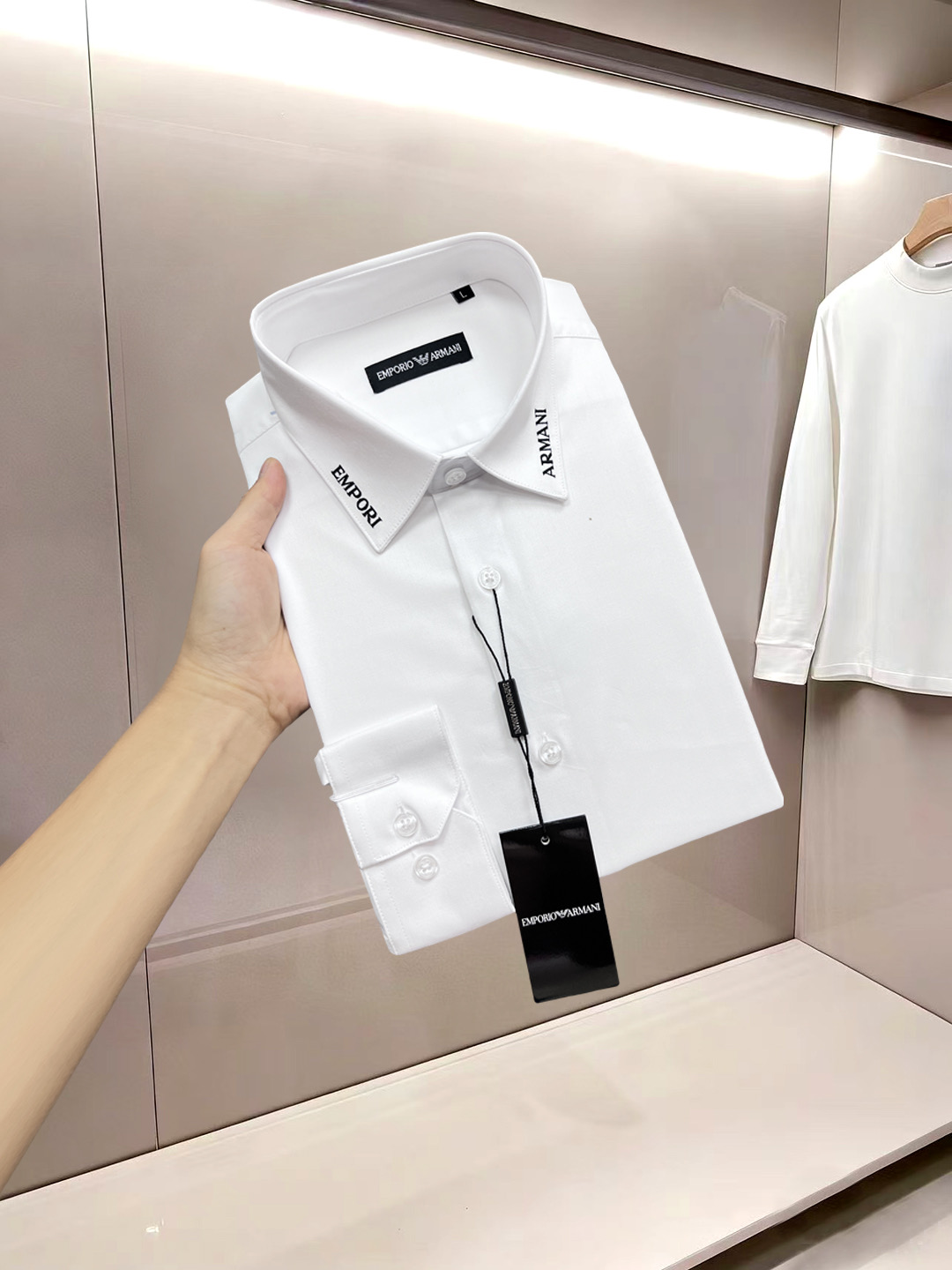 这款衣服是AAAAA 1:1 质量 (非常棒). 使用了和原版一模一样的材料. 商标部分也保持了和阿玛尼/Armani一样. 图片拍摄是实物衣服拍摄, 您所收到的实物保证和我们图片一模一样.