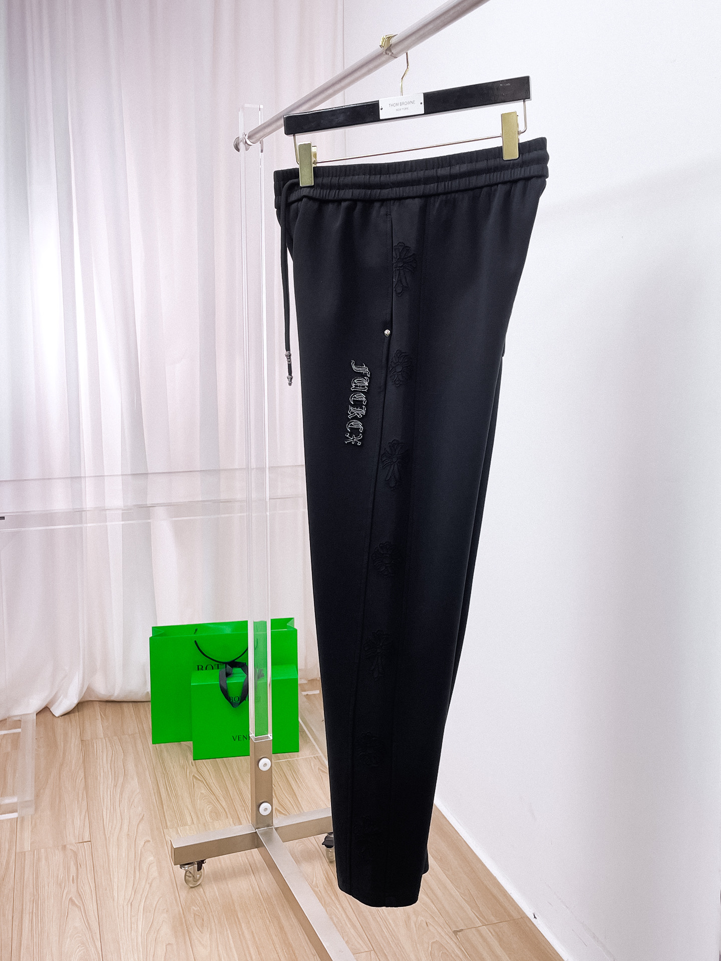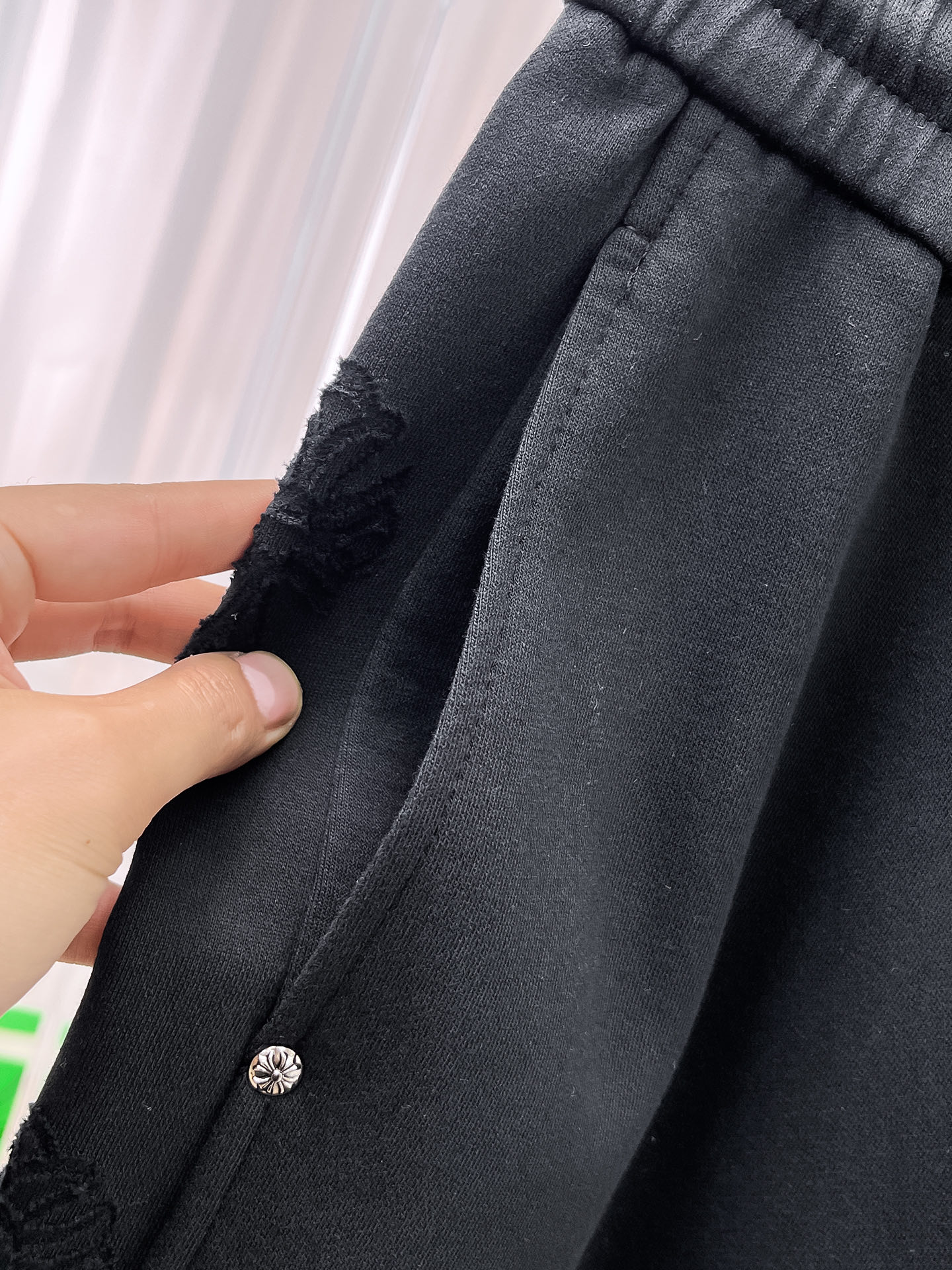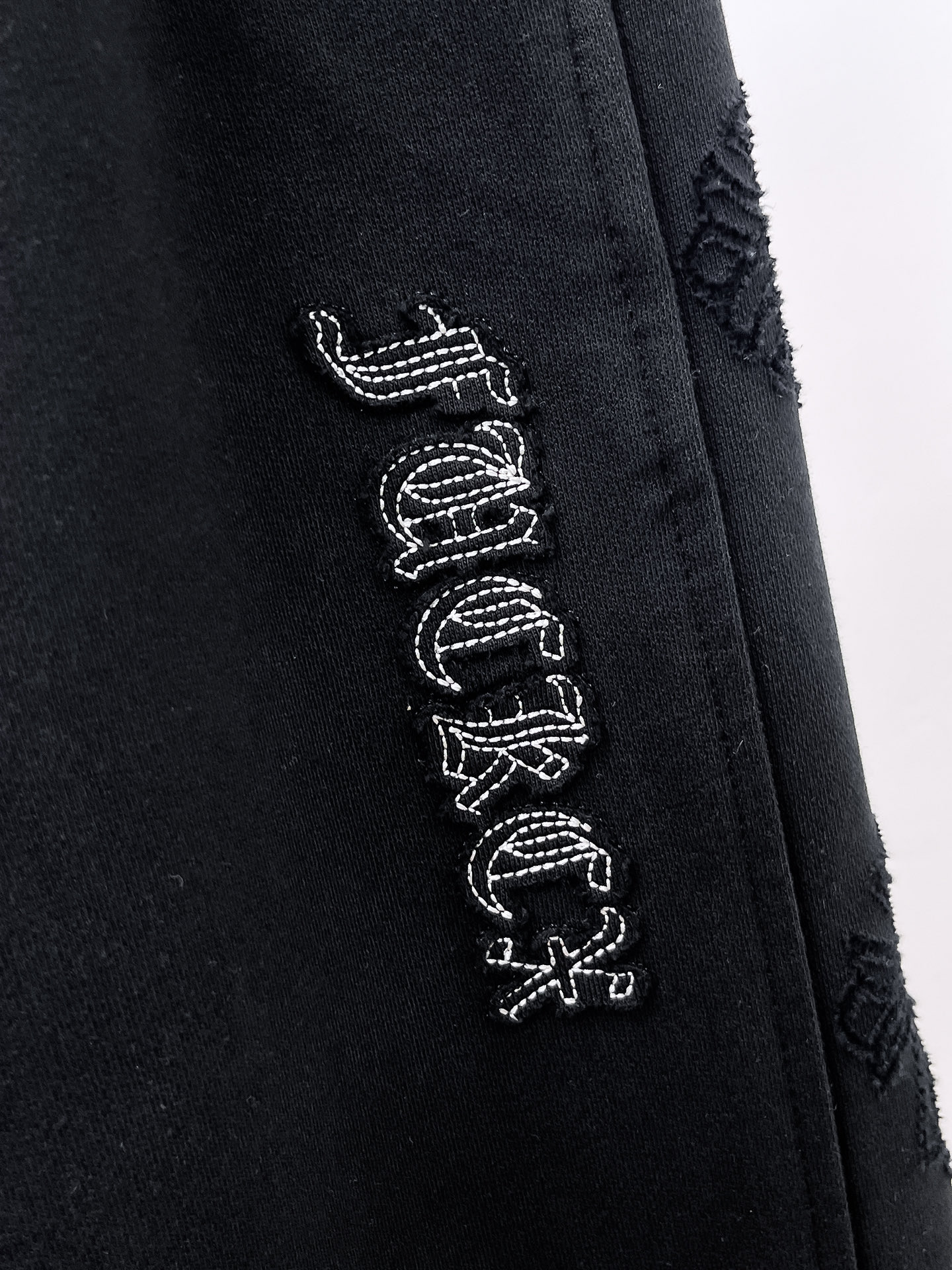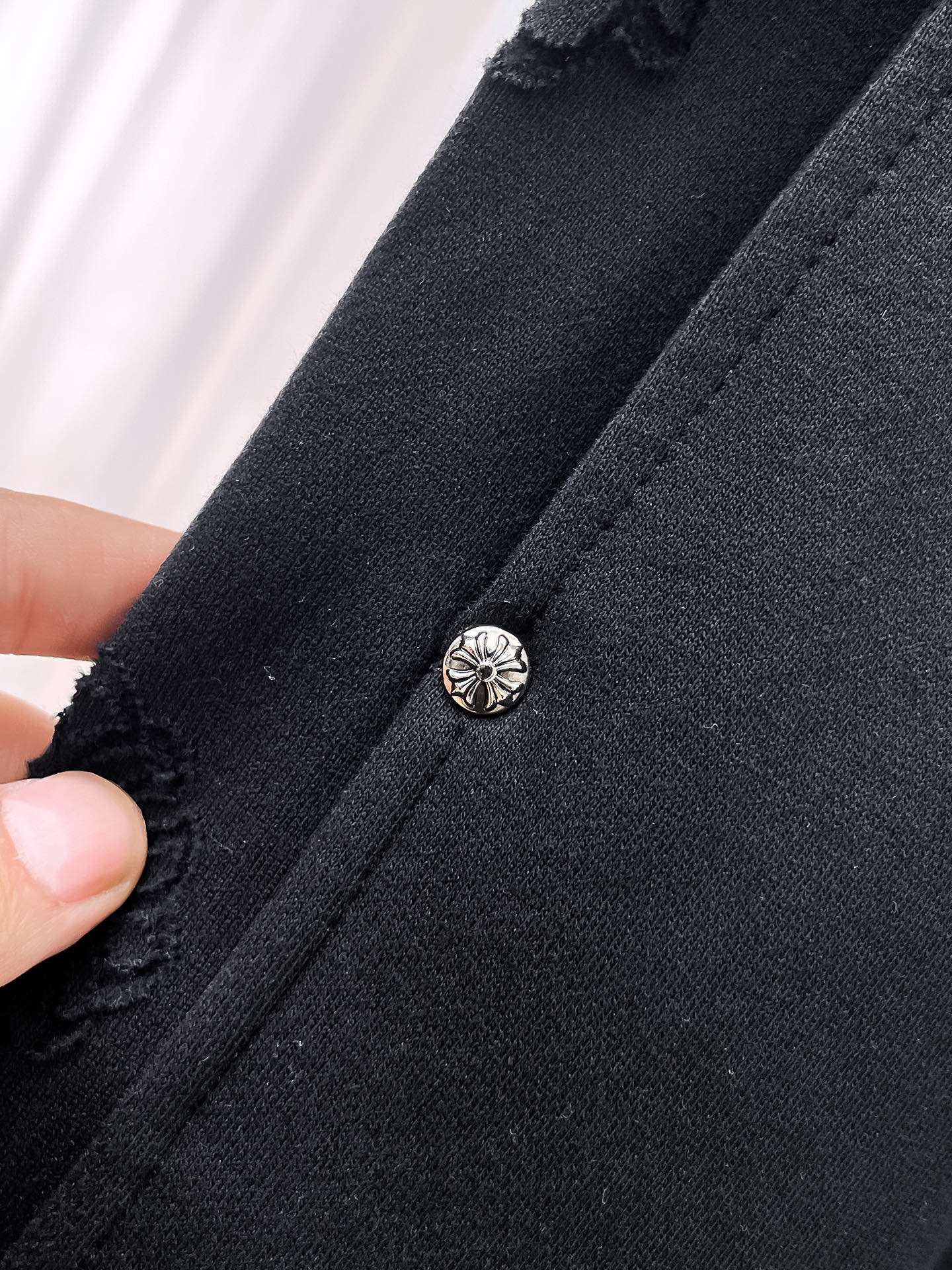 这款衣服是AAAAA 1:1 质量 (非常棒). 使用了和原版一模一样的材料. 商标部分也保持了和克罗心/Chrome Hearts一样. 图片拍摄是实物衣服拍摄, 您所收到的实物保证和我们图片一模一样.