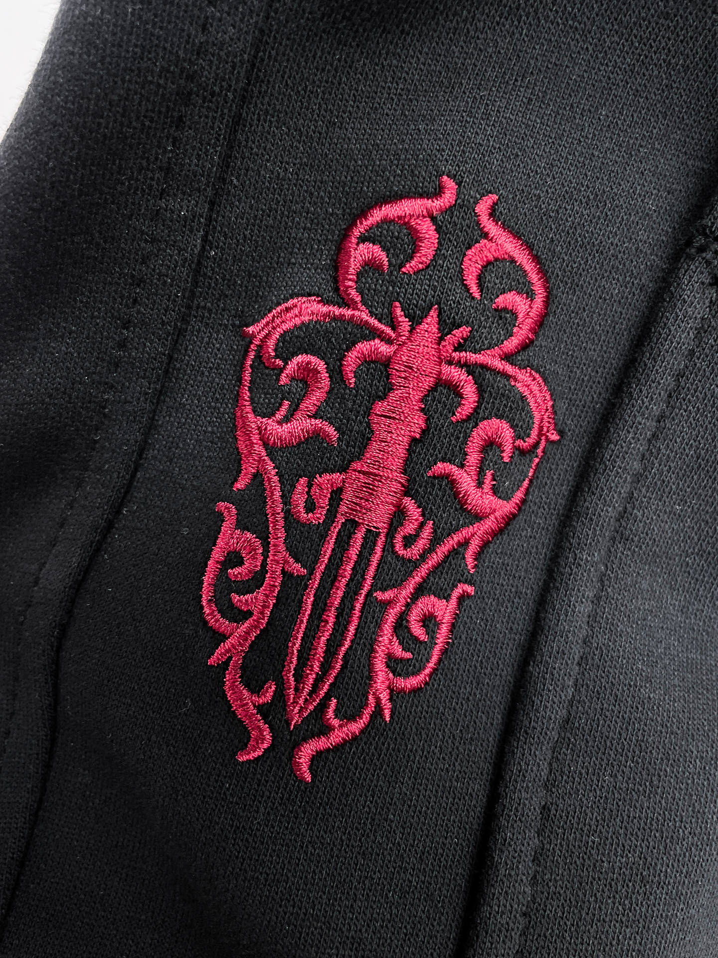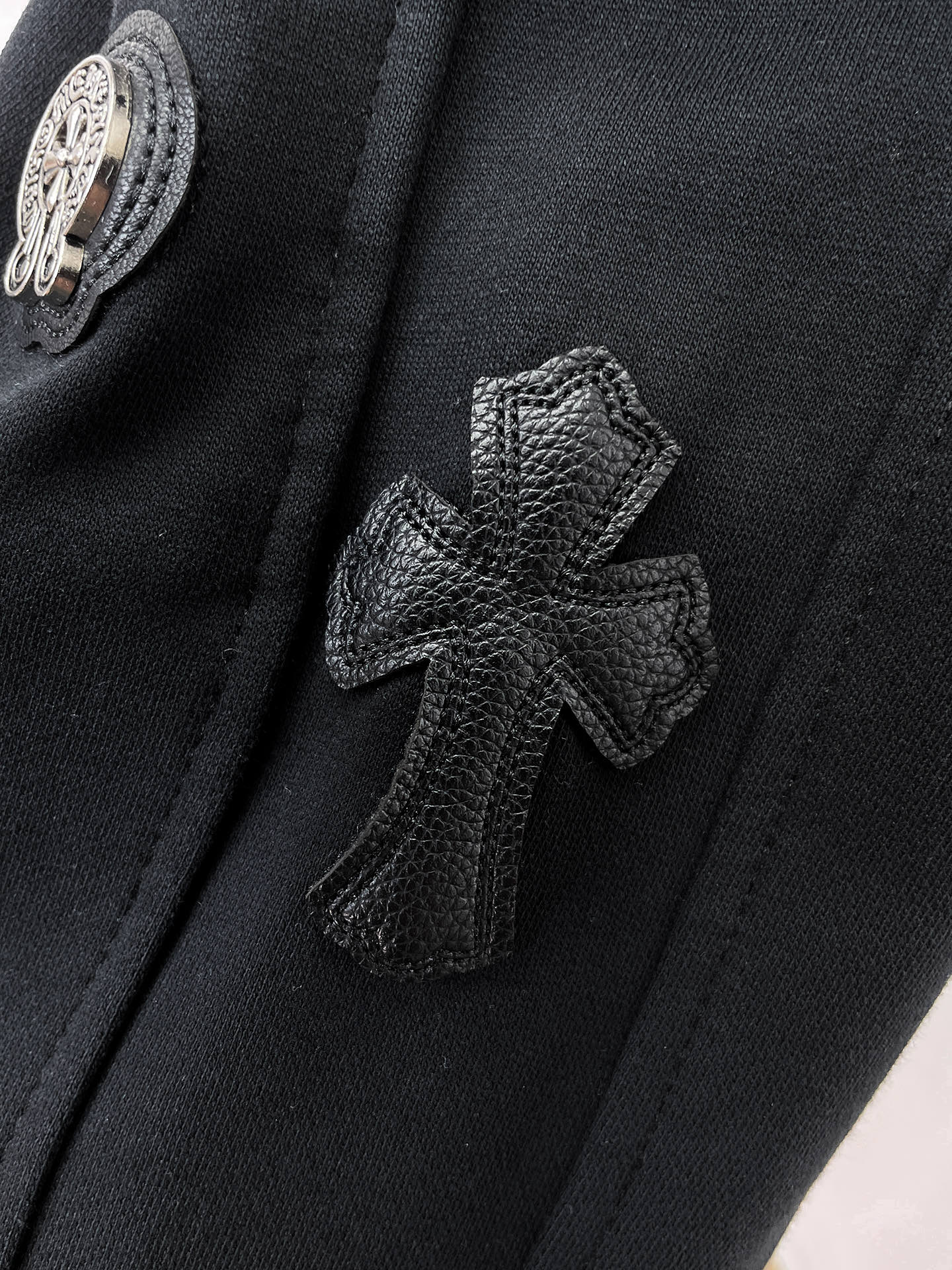 这款衣服是AAAAA 1:1 质量 (非常棒). 使用了和原版一模一样的材料. 商标部分也保持了和克罗心/Chrome Hearts一样. 图片拍摄是实物衣服拍摄, 您所收到的实物保证和我们图片一模一样.