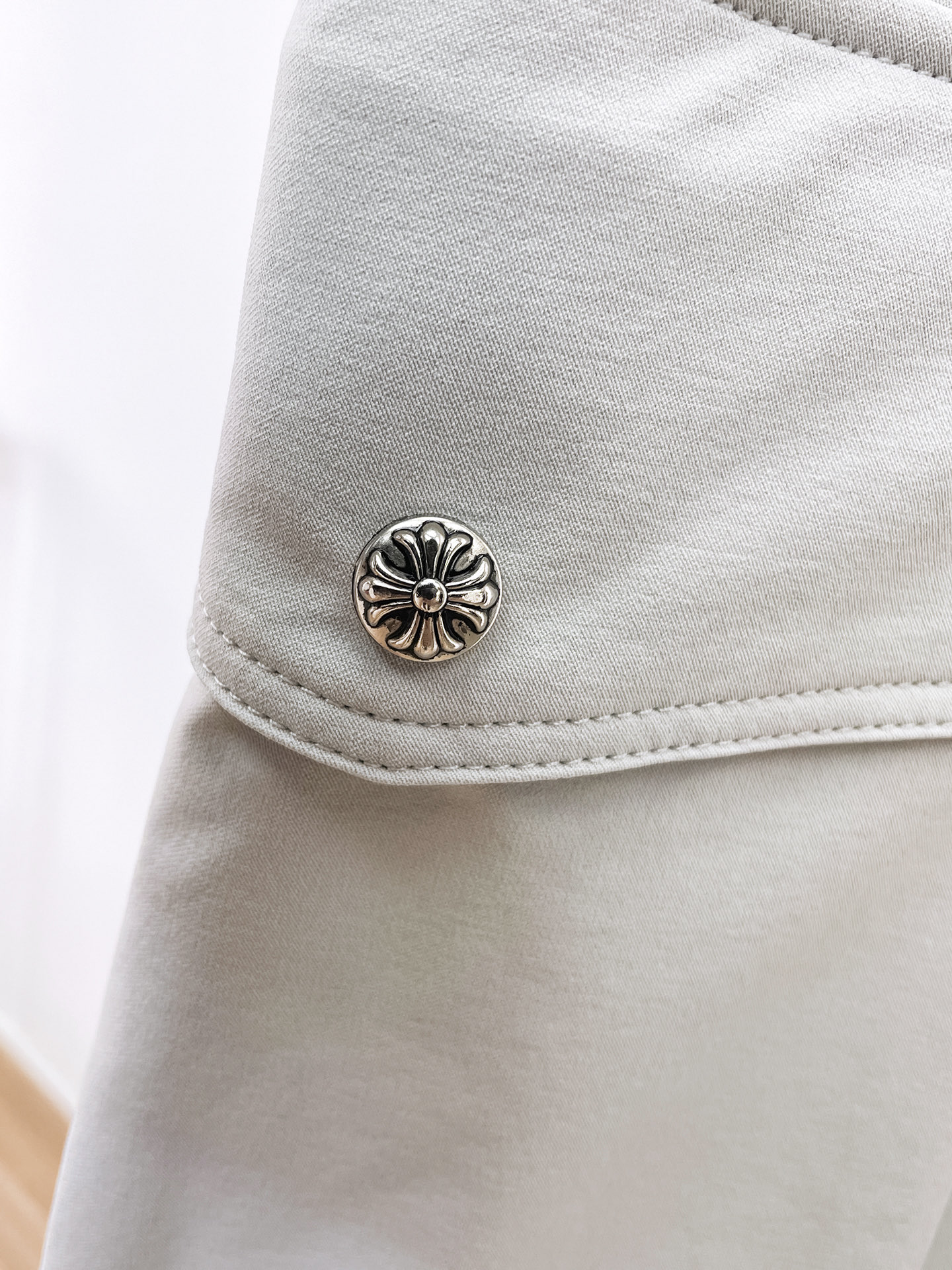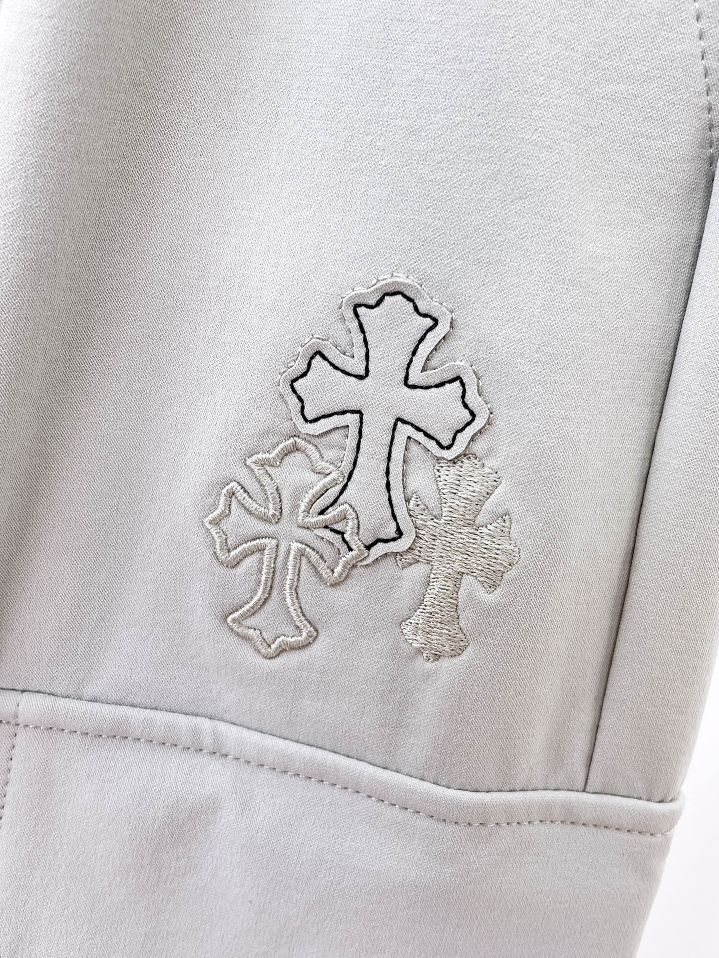 这款衣服是AAAAA 1:1 质量 (非常棒). 使用了和原版一模一样的材料. 商标部分也保持了和克罗心/Chrome Hearts一样. 图片拍摄是实物衣服拍摄, 您所收到的实物保证和我们图片一模一样.