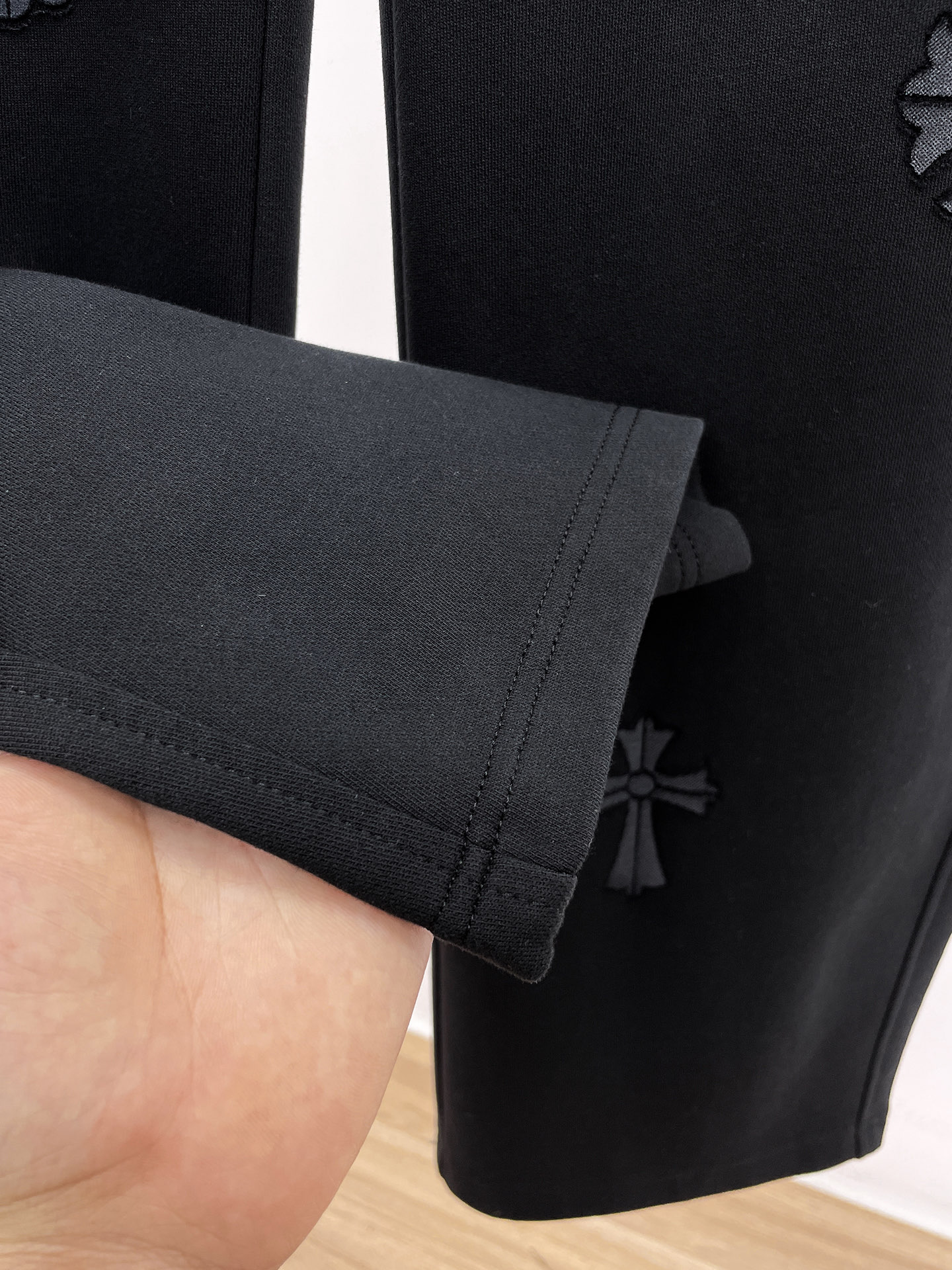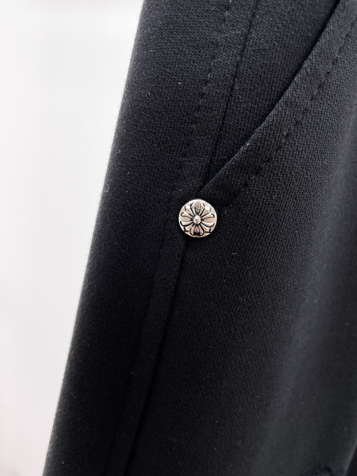 这款衣服是AAAAA 1:1 质量 (非常棒). 使用了和原版一模一样的材料. 商标部分也保持了和克罗心/Chrome Hearts一样. 图片拍摄是实物衣服拍摄, 您所收到的实物保证和我们图片一模一样.