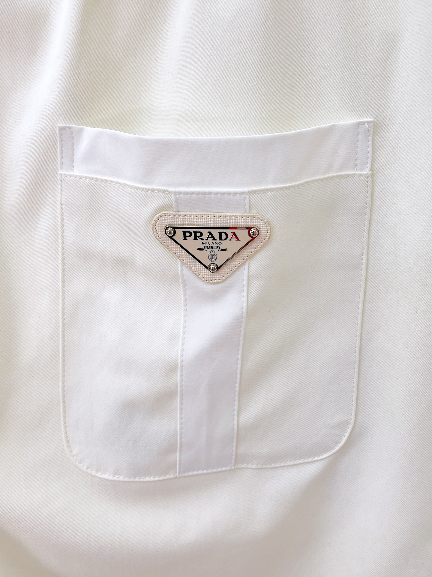 这款衣服是AAAAA 1:1 质量 (非常棒). 使用了和原版一模一样的材料. 商标部分也保持了和普拉达/Prada一样. 图片拍摄是实物衣服拍摄, 您所收到的实物保证和我们图片一模一样.