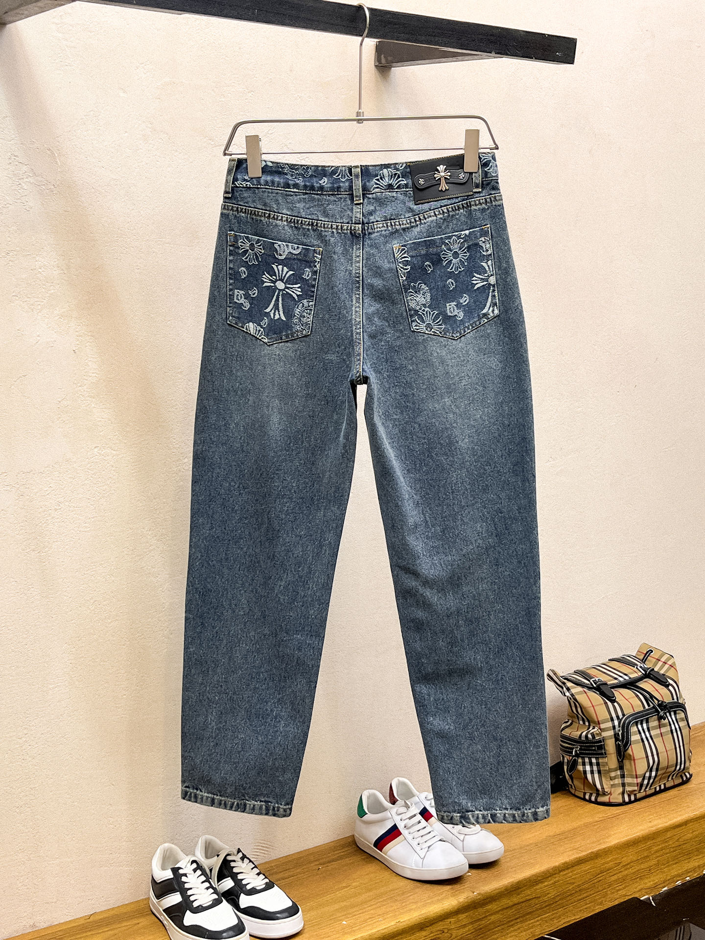 这款衣服是AAAAA 1:1 质量 (非常棒). 使用了和原版一模一样的材料. 商标部分也保持了和克罗心/Chrome Hearts一样. 图片拍摄是实物衣服拍摄, 您所收到的实物保证和我们图片一模一样.