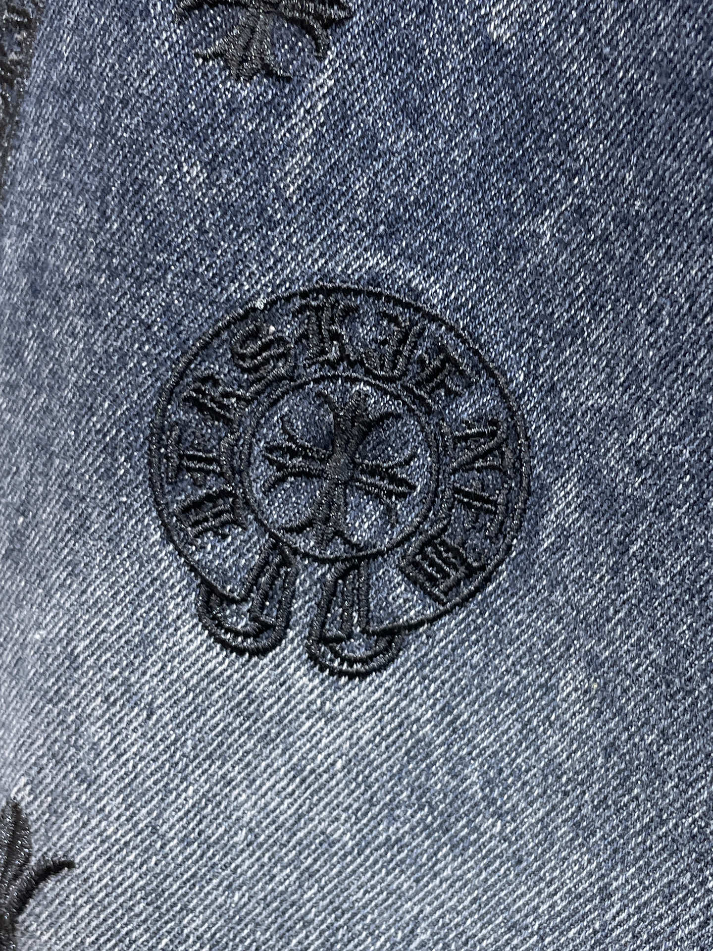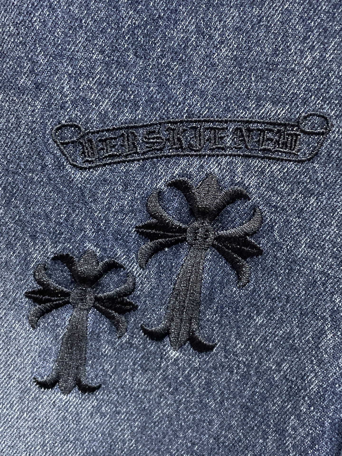 这款衣服是AAAAA 1:1 质量 (非常棒). 使用了和原版一模一样的材料. 商标部分也保持了和克罗心/Chrome Hearts一样. 图片拍摄是实物衣服拍摄, 您所收到的实物保证和我们图片一模一样.