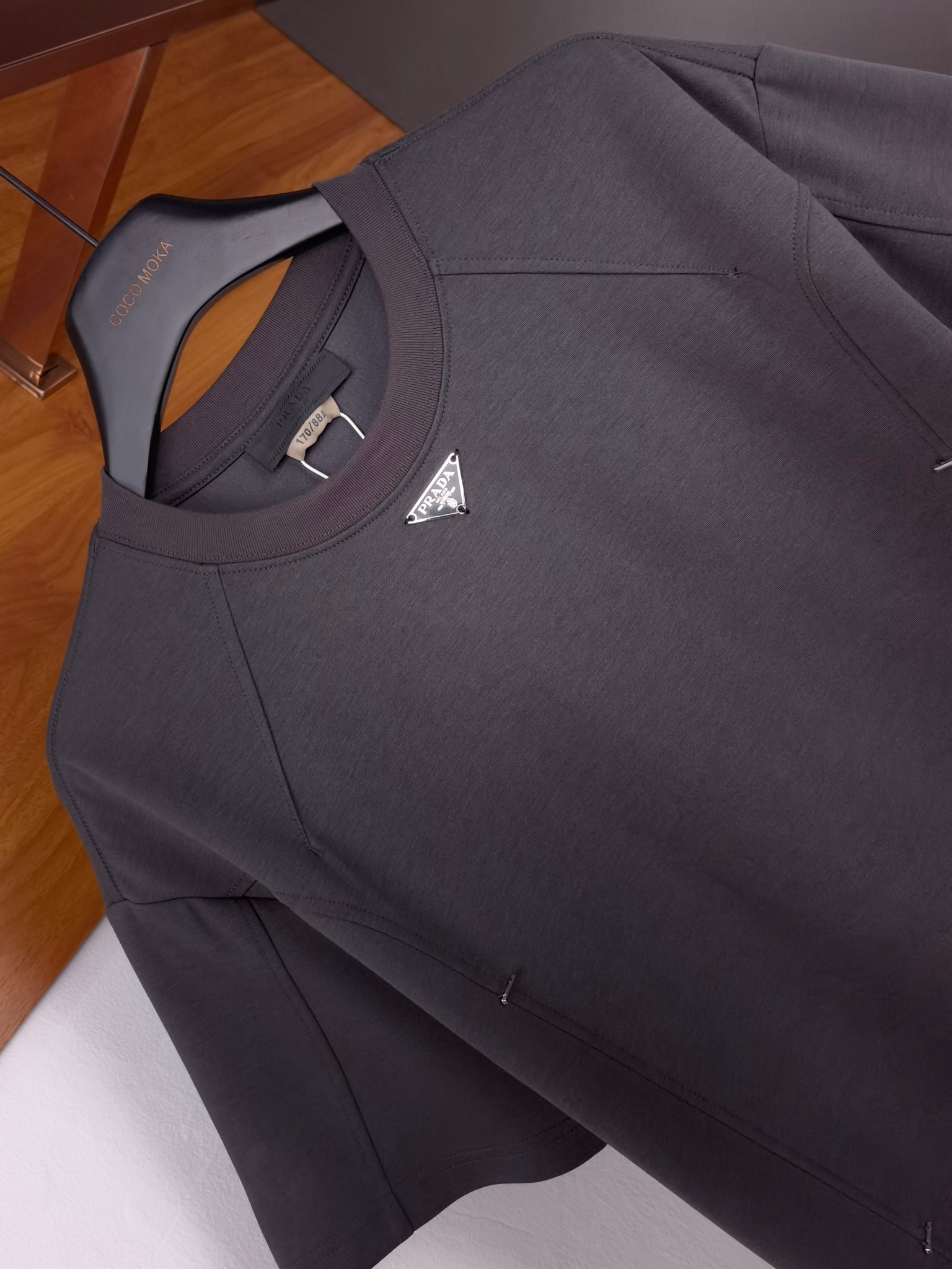这款衣服是AAAAA 1:1 质量 (非常棒). 使用了和原版一模一样的材料. 商标部分也保持了和普拉达/Prada一样. 图片拍摄是实物衣服拍摄, 您所收到的实物保证和我们图片一模一样.