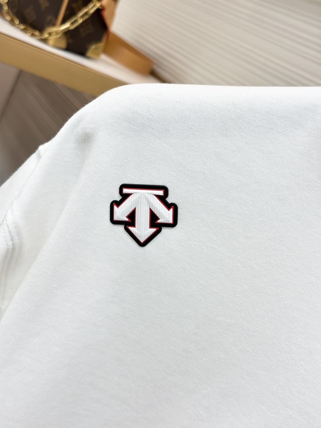 这款衣服是AAAAA 1:1 质量 (非常棒). 使用了和原版一模一样的材料. 商标部分也保持了和Descente一样. 图片拍摄是实物衣服拍摄, 您所收到的实物保证和我们图片一模一样.