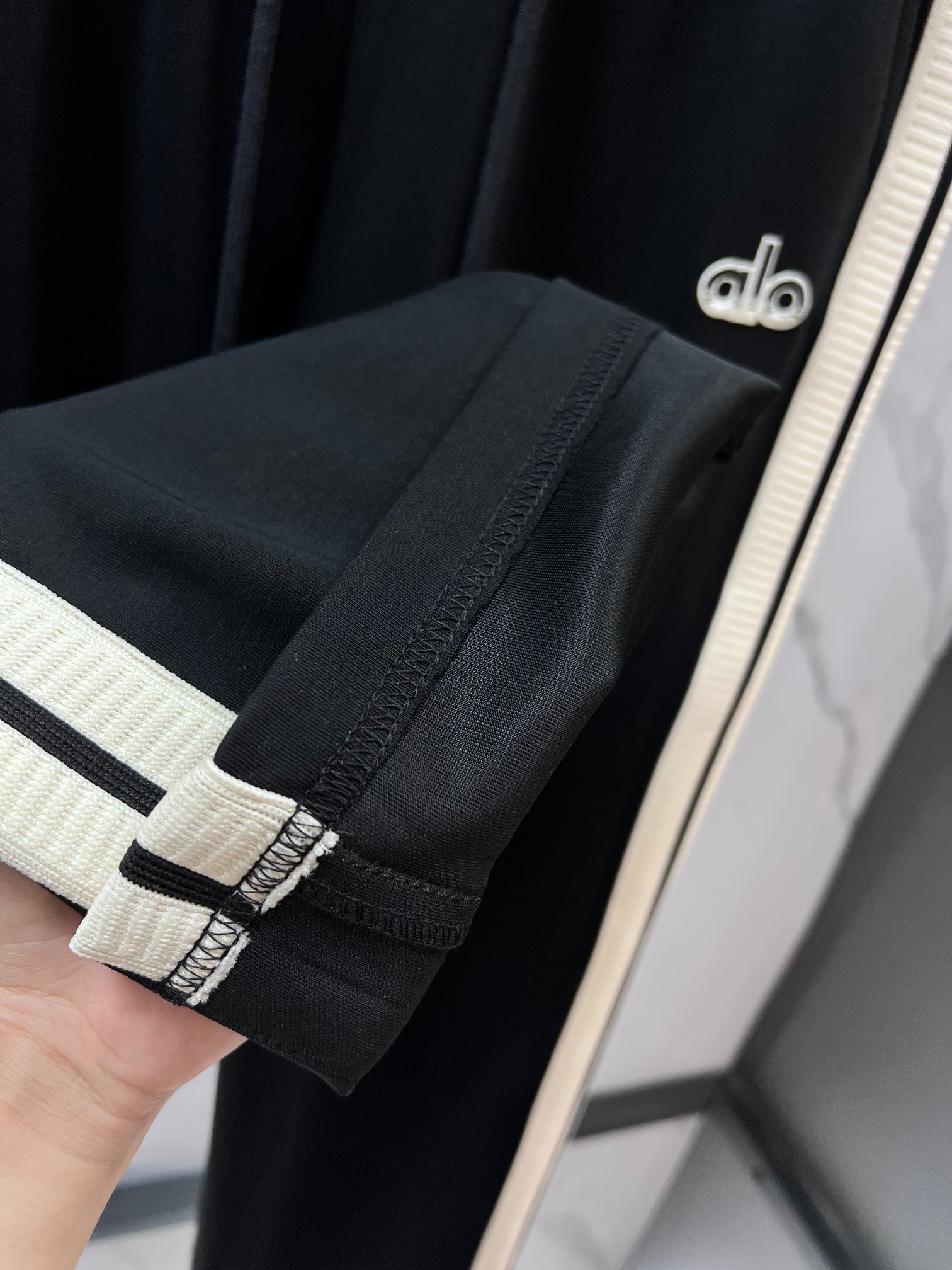 这款衣服是AAAAA 1:1 质量 (非常棒). 使用了和原版一模一样的材料. 商标部分也保持了和Alo Yoga一样. 图片拍摄是实物衣服拍摄, 您所收到的实物保证和我们图片一模一样.