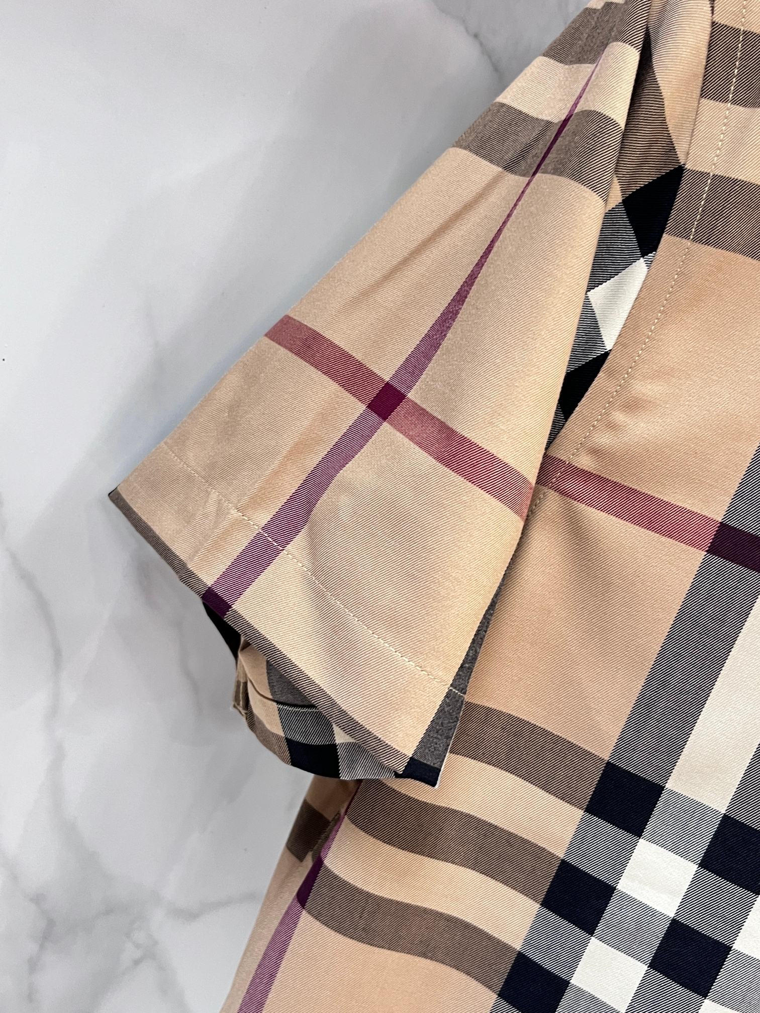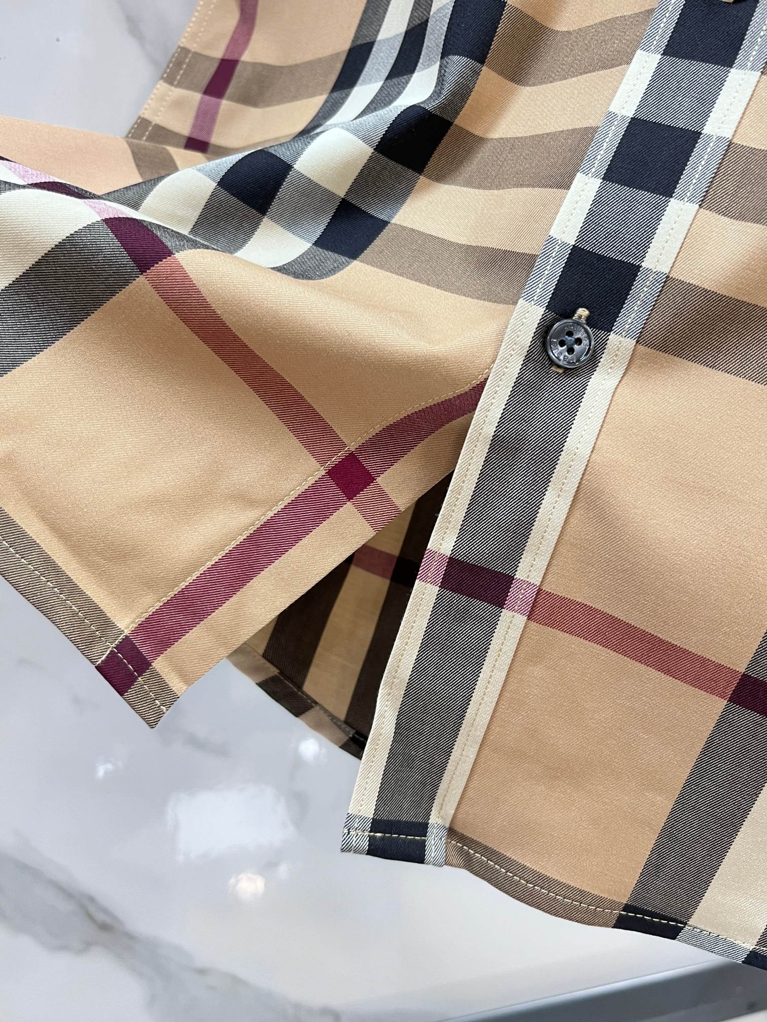 这款衣服是AAAAA 1:1 质量 (非常棒). 使用了和原版一模一样的材料. 商标部分也保持了和巴宝莉/Burberry一样. 图片拍摄是实物衣服拍摄, 您所收到的实物保证和我们图片一模一样.