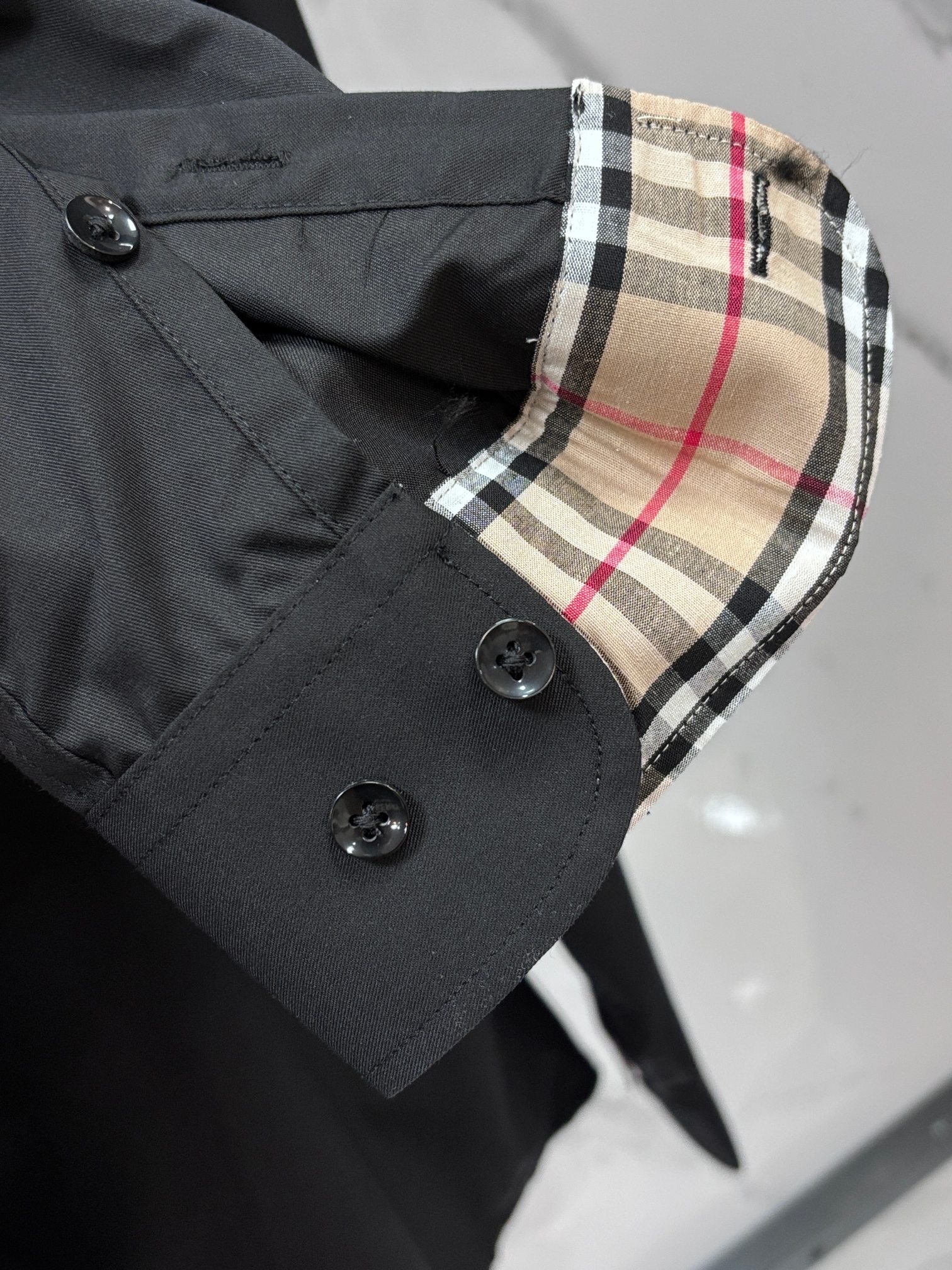 这款衣服是AAAAA 1:1 质量 (非常棒). 使用了和原版一模一样的材料. 商标部分也保持了和巴宝莉/Burberry一样. 图片拍摄是实物衣服拍摄, 您所收到的实物保证和我们图片一模一样.