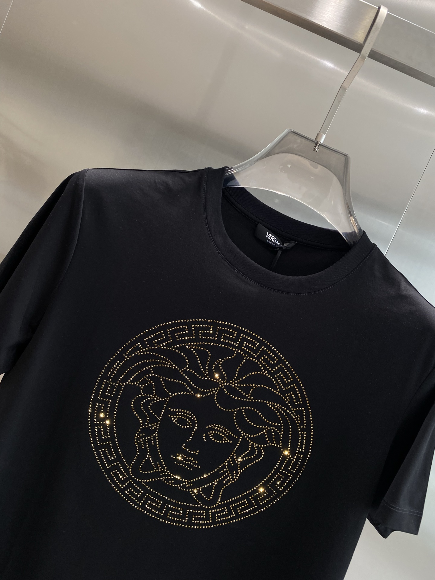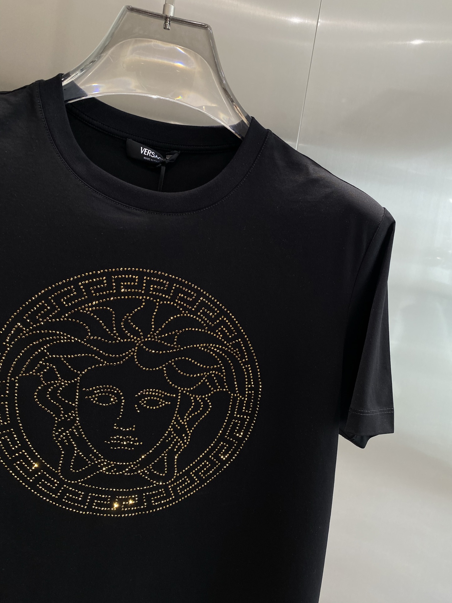 这款衣服是AAAAA 1:1 质量 (非常棒). 使用了和原版一模一样的材料. 商标部分也保持了和范思哲/Versace一样. 图片拍摄是实物衣服拍摄, 您所收到的实物保证和我们图片一模一样.