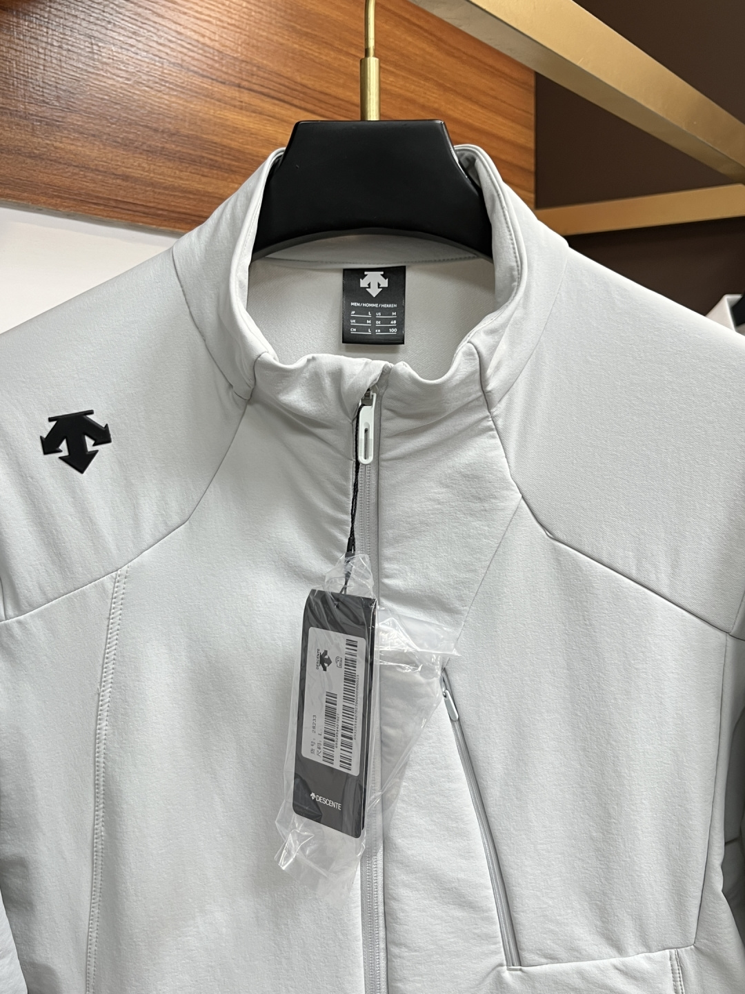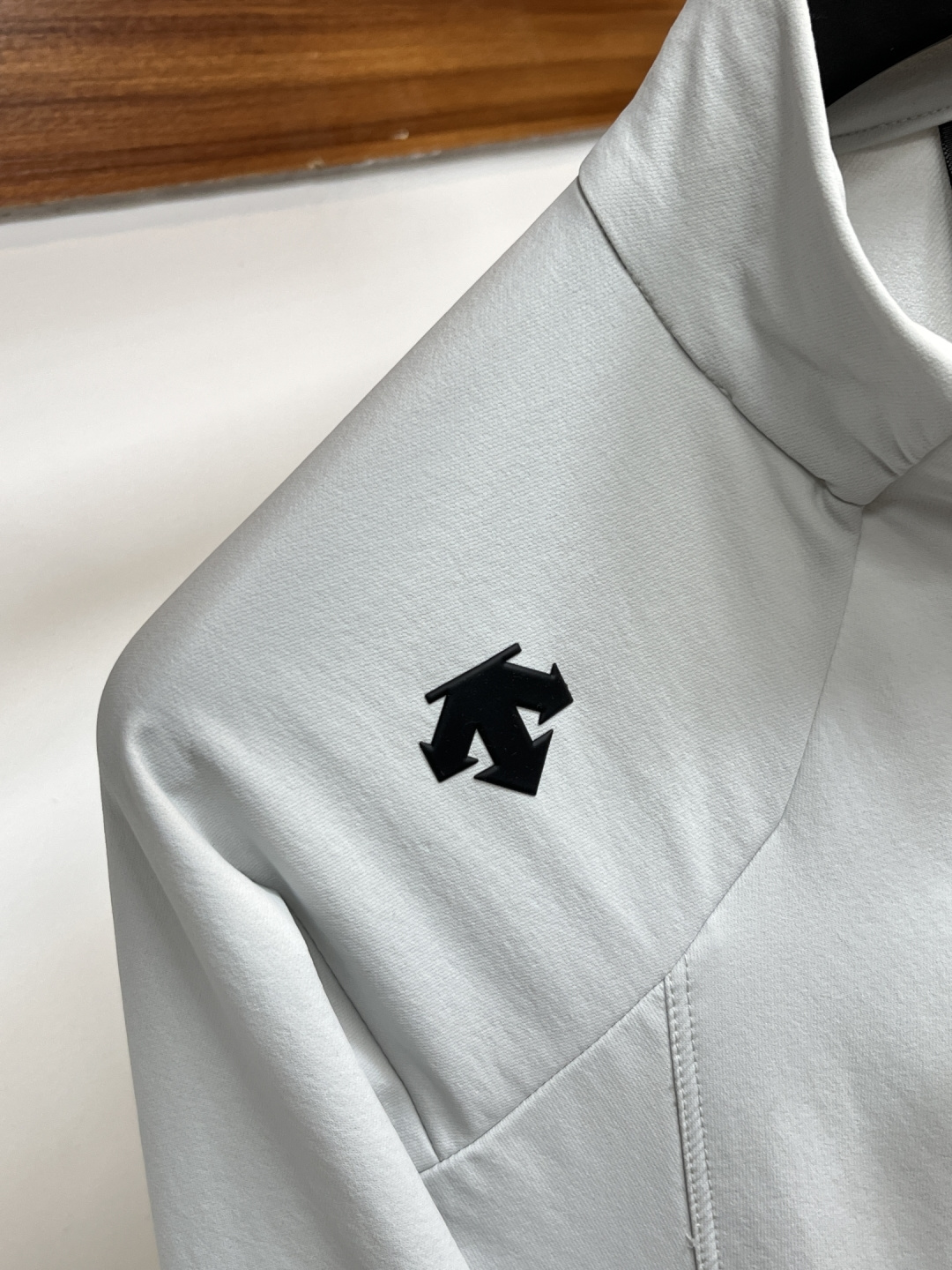 这款衣服是AAAAA 1:1 质量 (非常棒). 使用了和原版一模一样的材料. 商标部分也保持了和Descente一样. 图片拍摄是实物衣服拍摄, 您所收到的实物保证和我们图片一模一样.