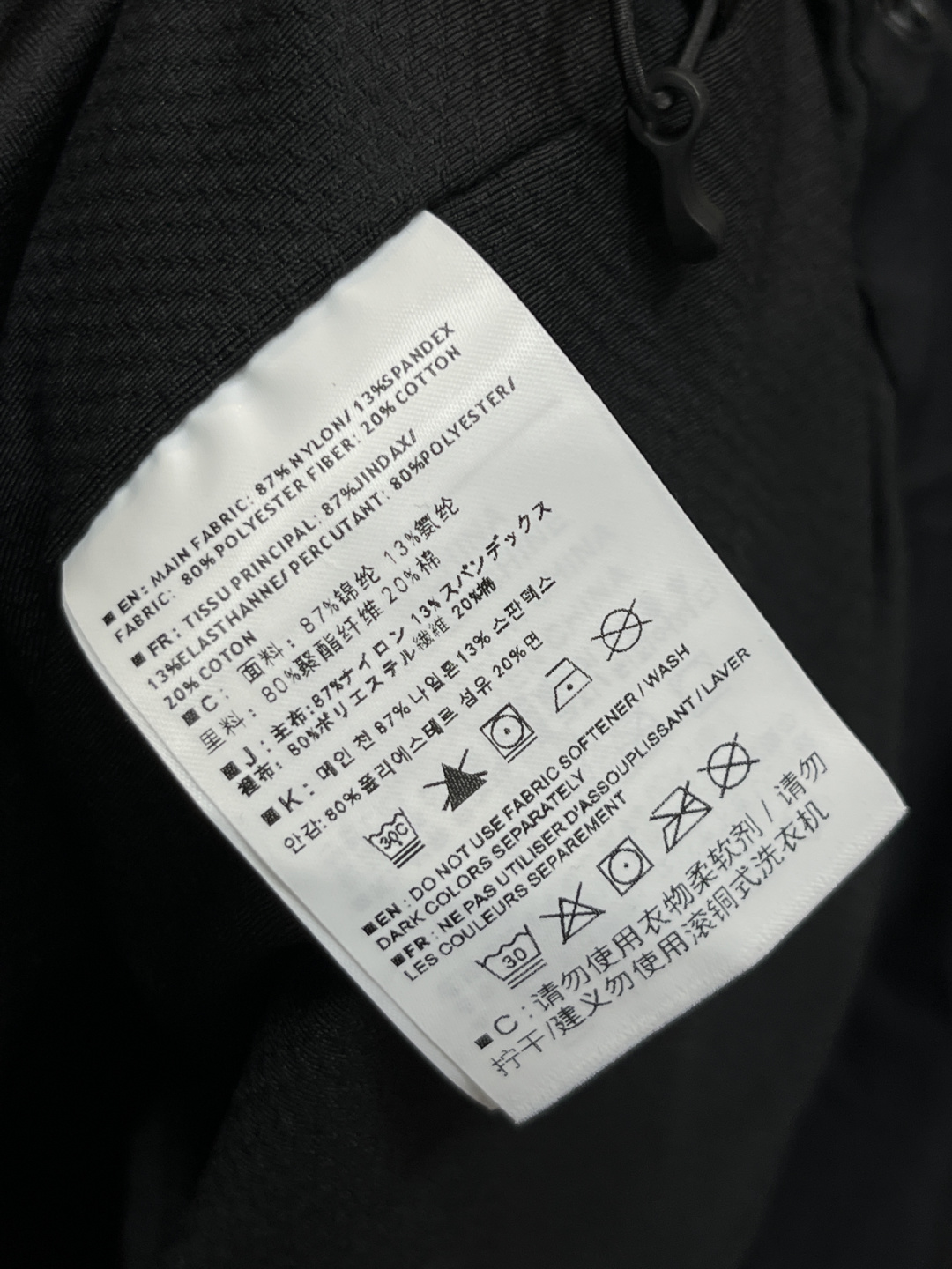 这款衣服是AAAAA 1:1 质量 (非常棒). 使用了和原版一模一样的材料. 商标部分也保持了和ARC'TERYX一样. 图片拍摄是实物衣服拍摄, 您所收到的实物保证和我们图片一模一样.