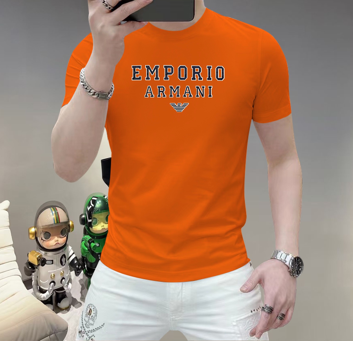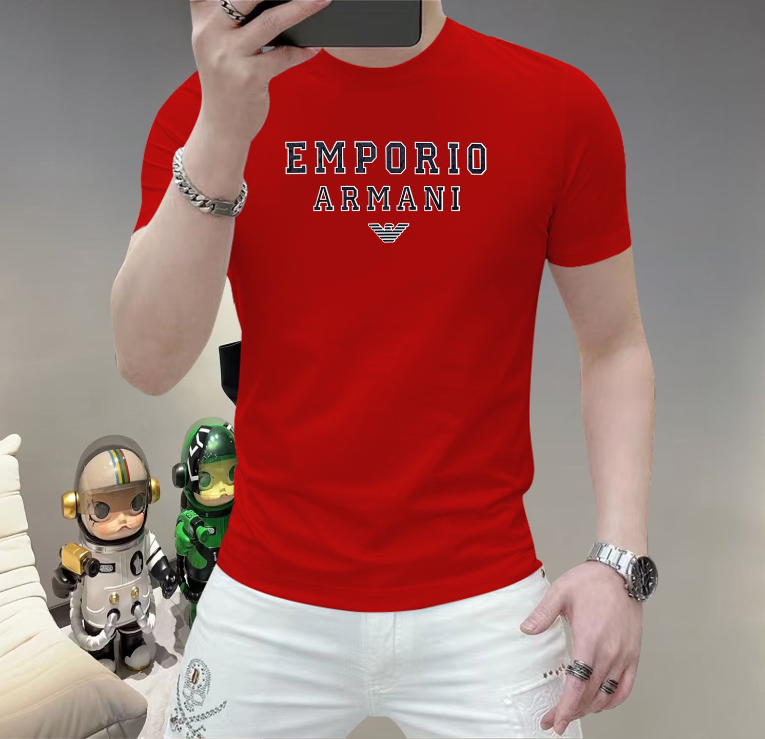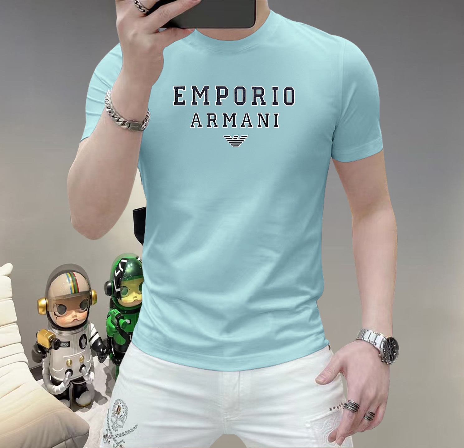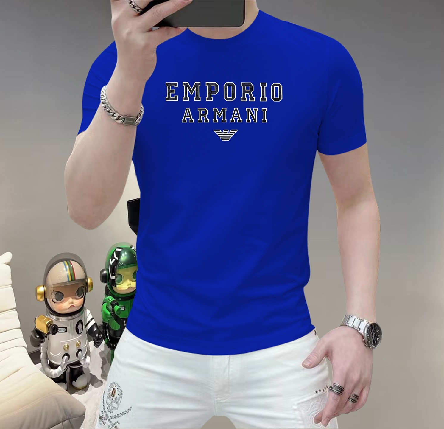 这款衣服是AAAAA 1:1 质量 (非常棒). 使用了和原版一模一样的材料. 商标部分也保持了和阿玛尼/Armani一样. 图片拍摄是实物衣服拍摄, 您所收到的实物保证和我们图片一模一样.