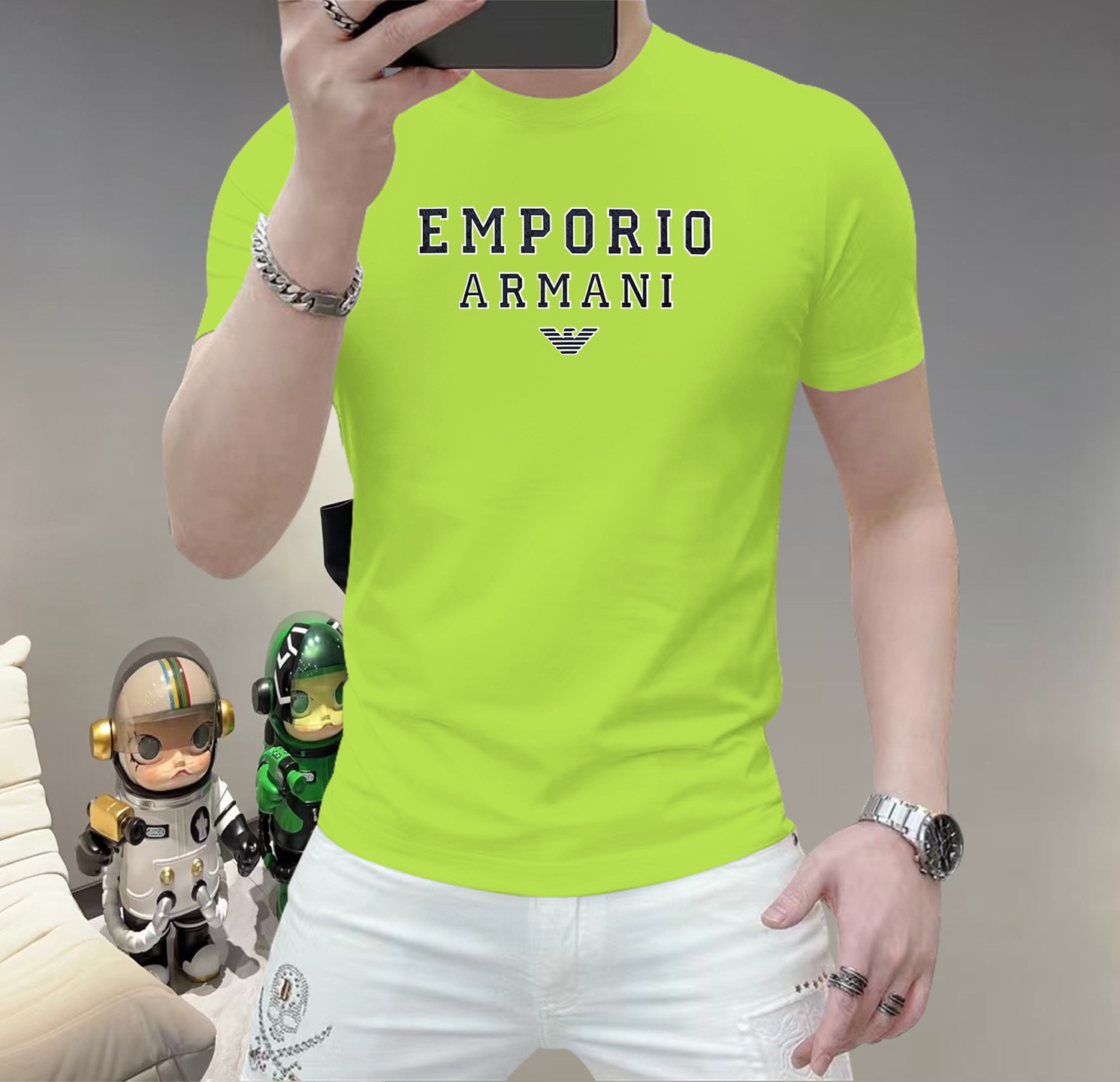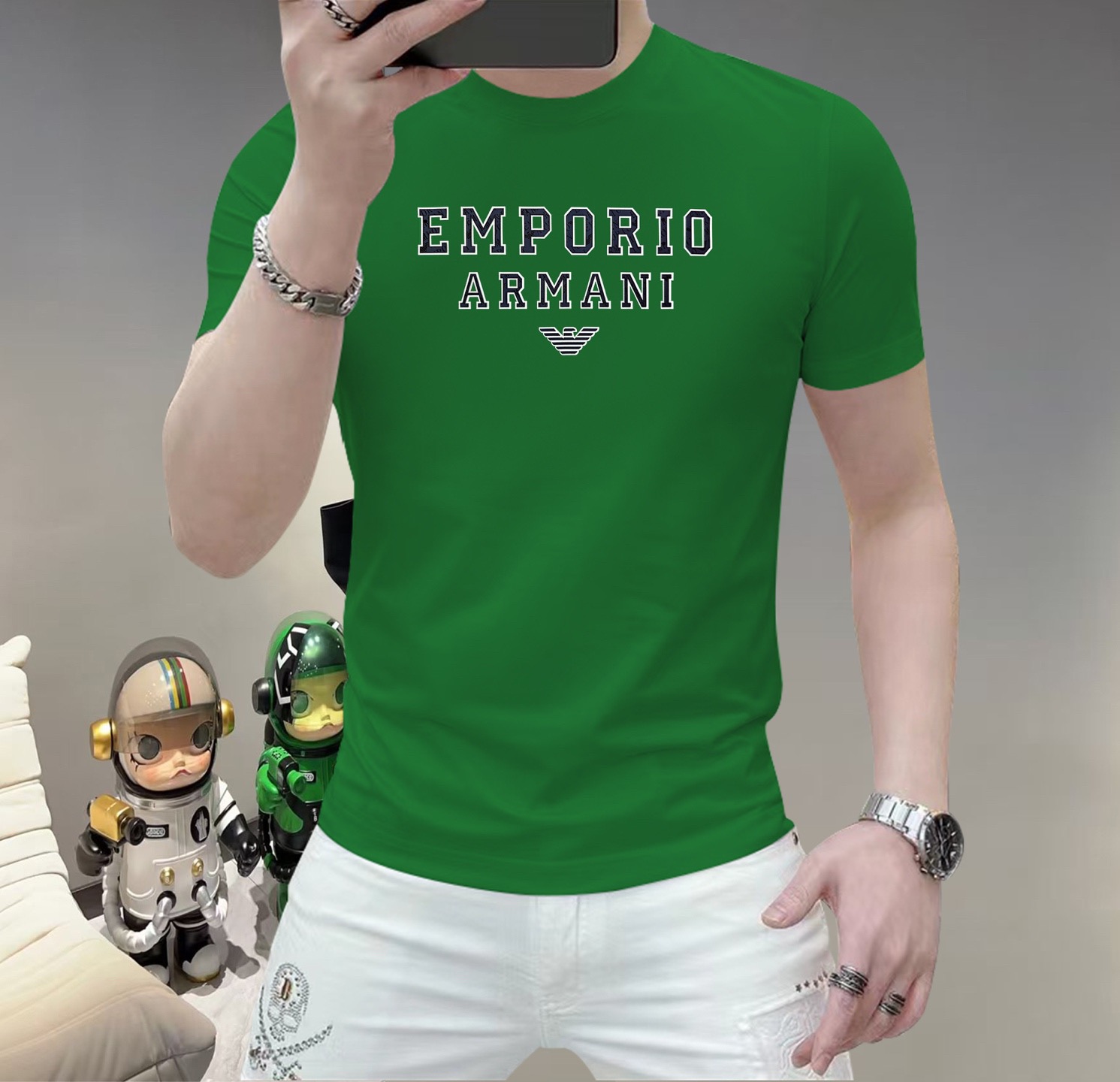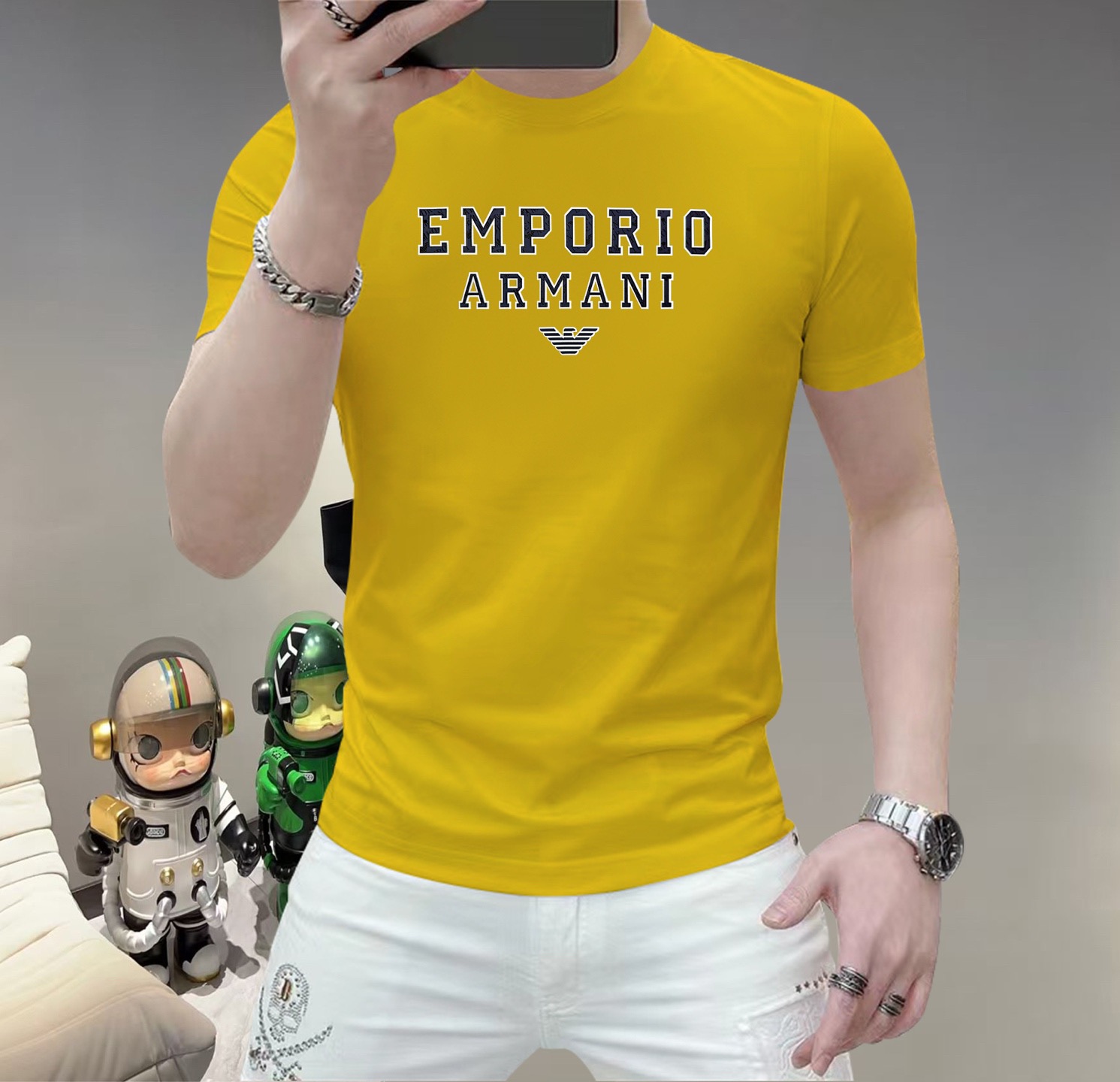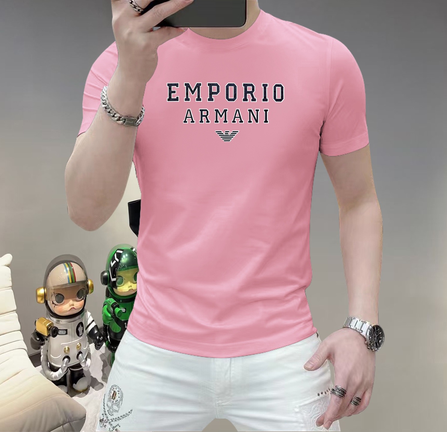 这款衣服是AAAAA 1:1 质量 (非常棒). 使用了和原版一模一样的材料. 商标部分也保持了和阿玛尼/Armani一样. 图片拍摄是实物衣服拍摄, 您所收到的实物保证和我们图片一模一样.
