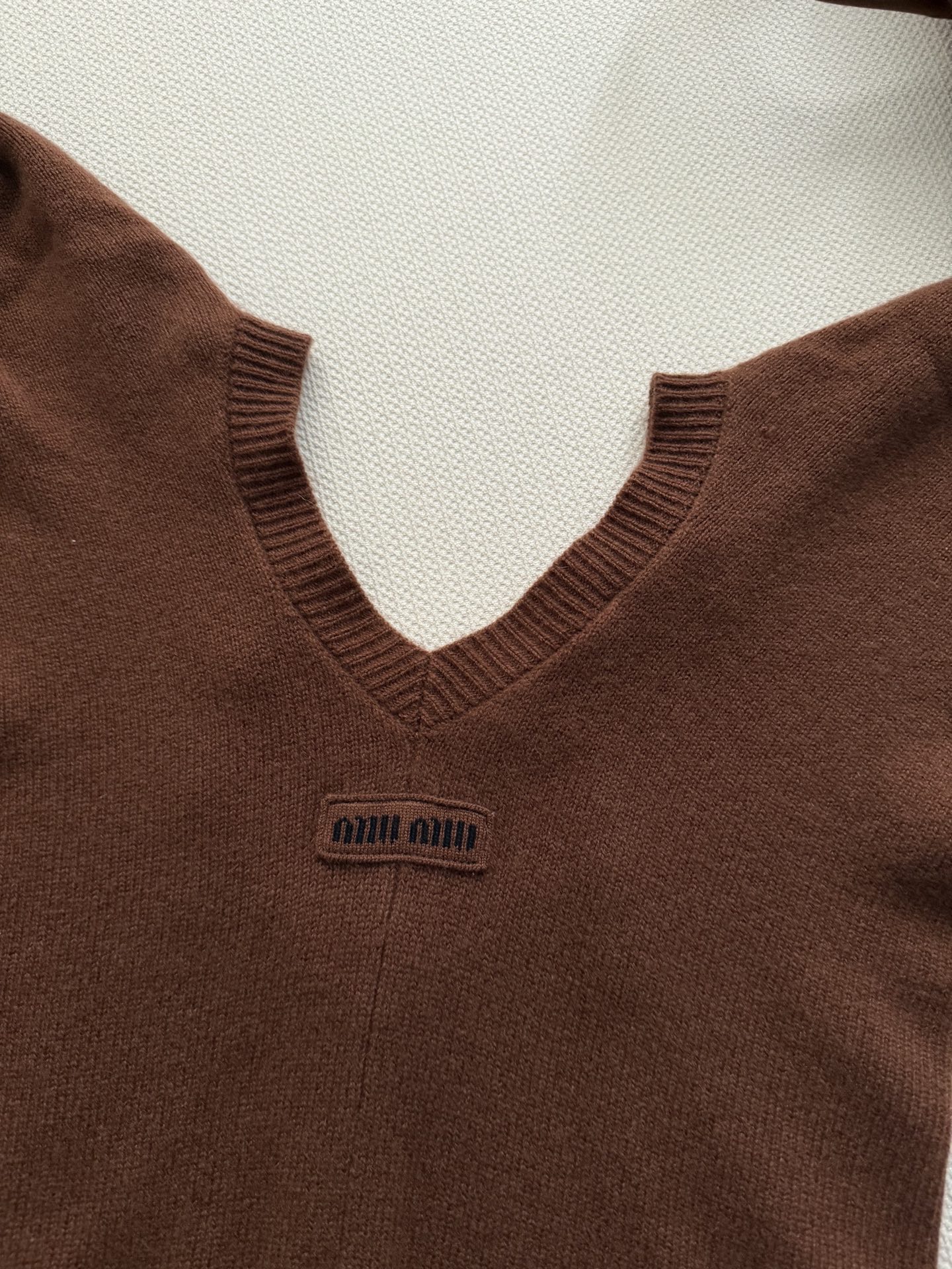 这款衣服是AAAAA 1:1 质量 (非常棒). 使用了和原版一模一样的材料. 商标部分也保持了和缪缪/Miu Miu一样. 图片拍摄是实物衣服拍摄, 您所收到的实物保证和我们图片一模一样.