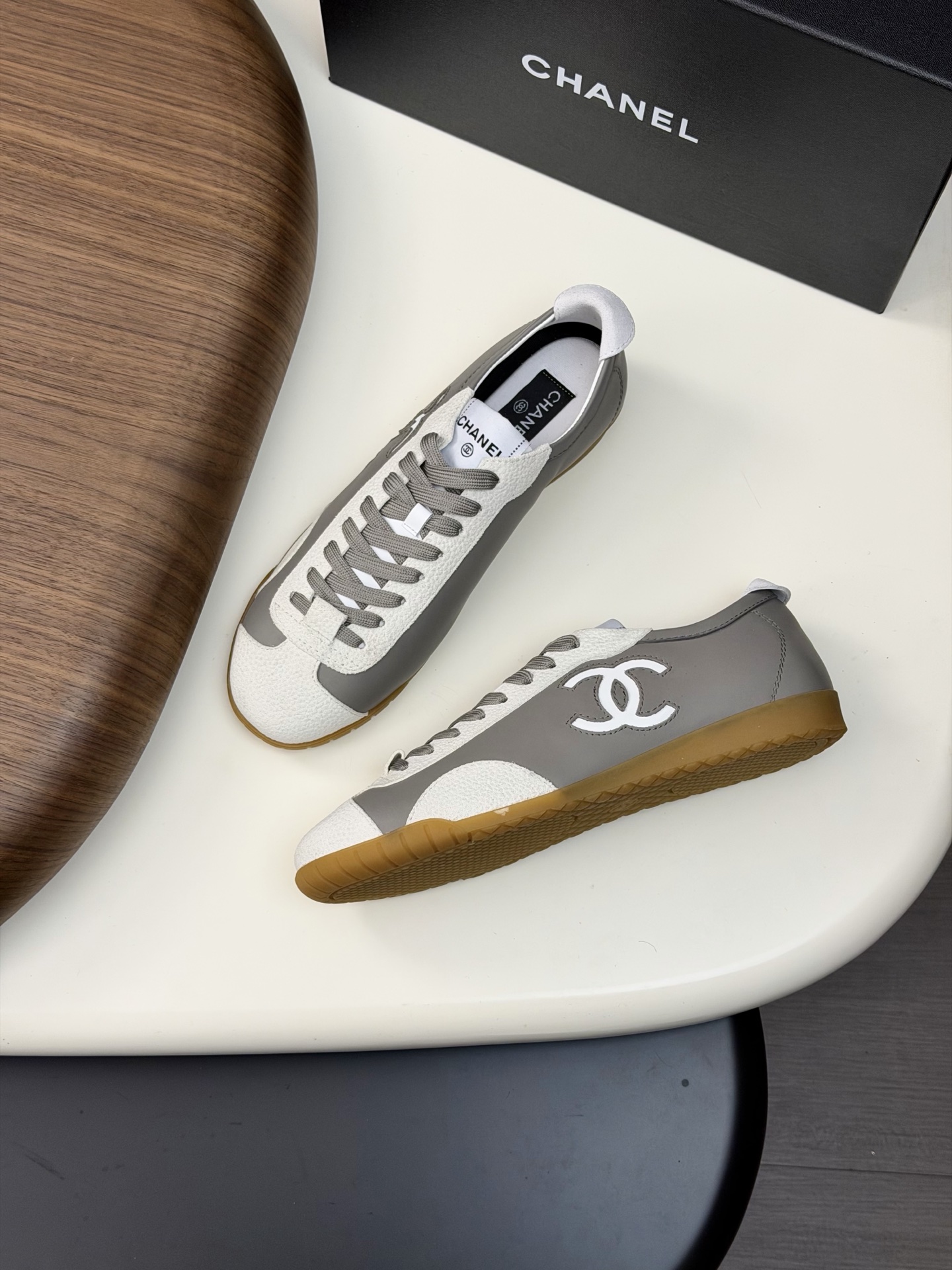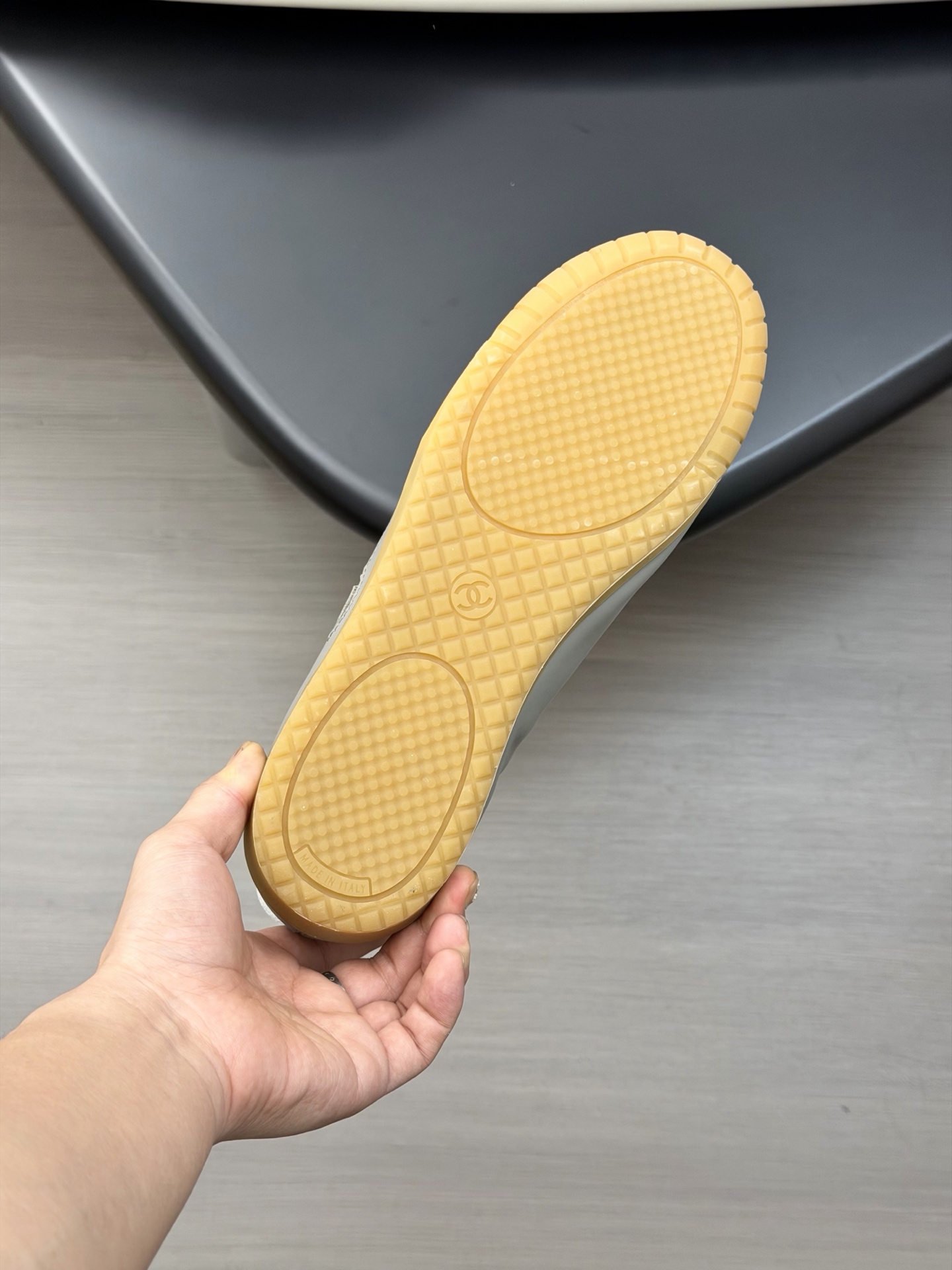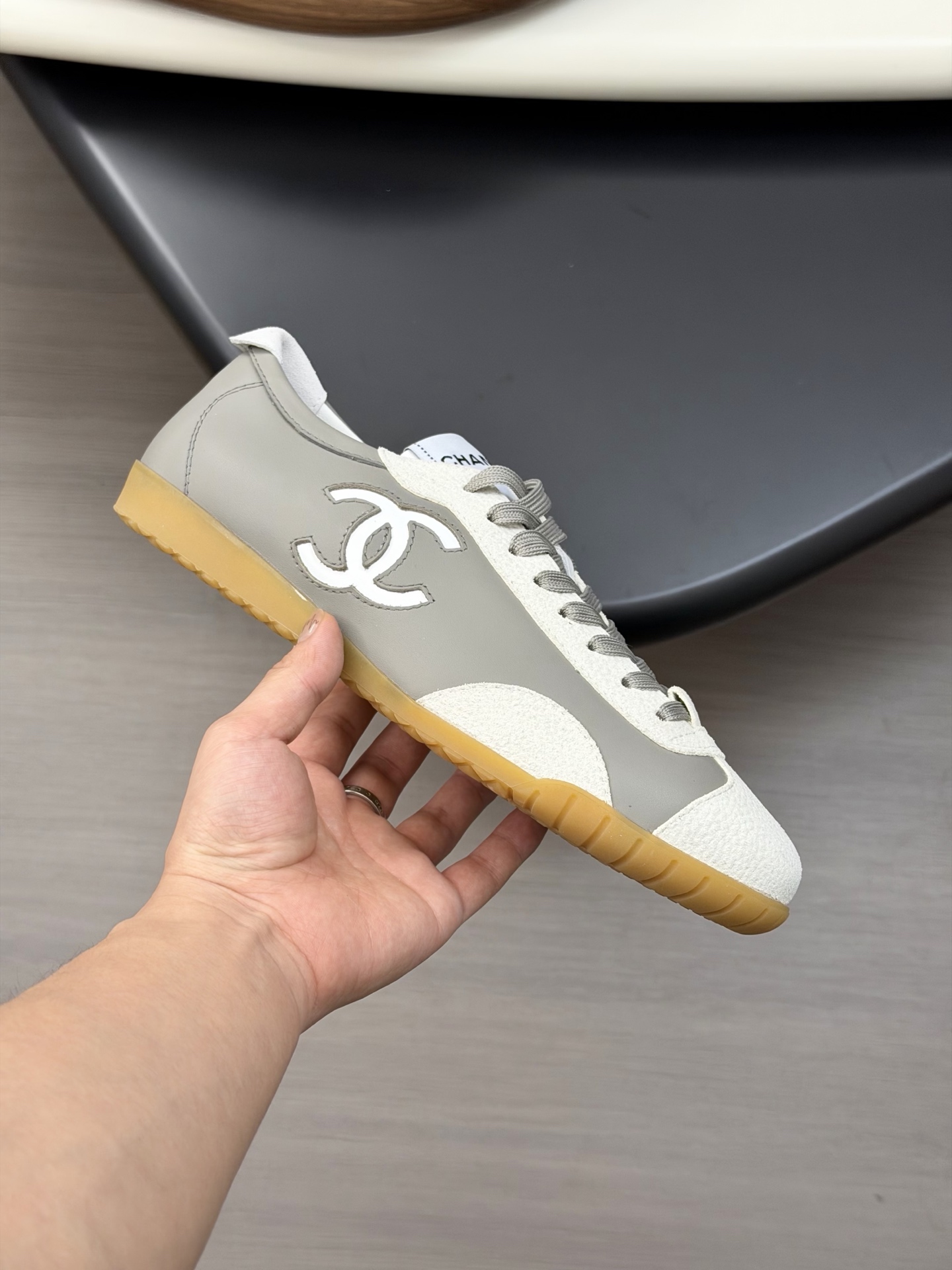 这款鞋子是AAAAA 1:1 质量 (非常棒). 使用了和原版一模一样的材料. 商标部分也保持了和香奈儿/Chanel一样. 图片拍摄是实物鞋子拍摄, 您所收到的实物保证和我们图片一模一样.