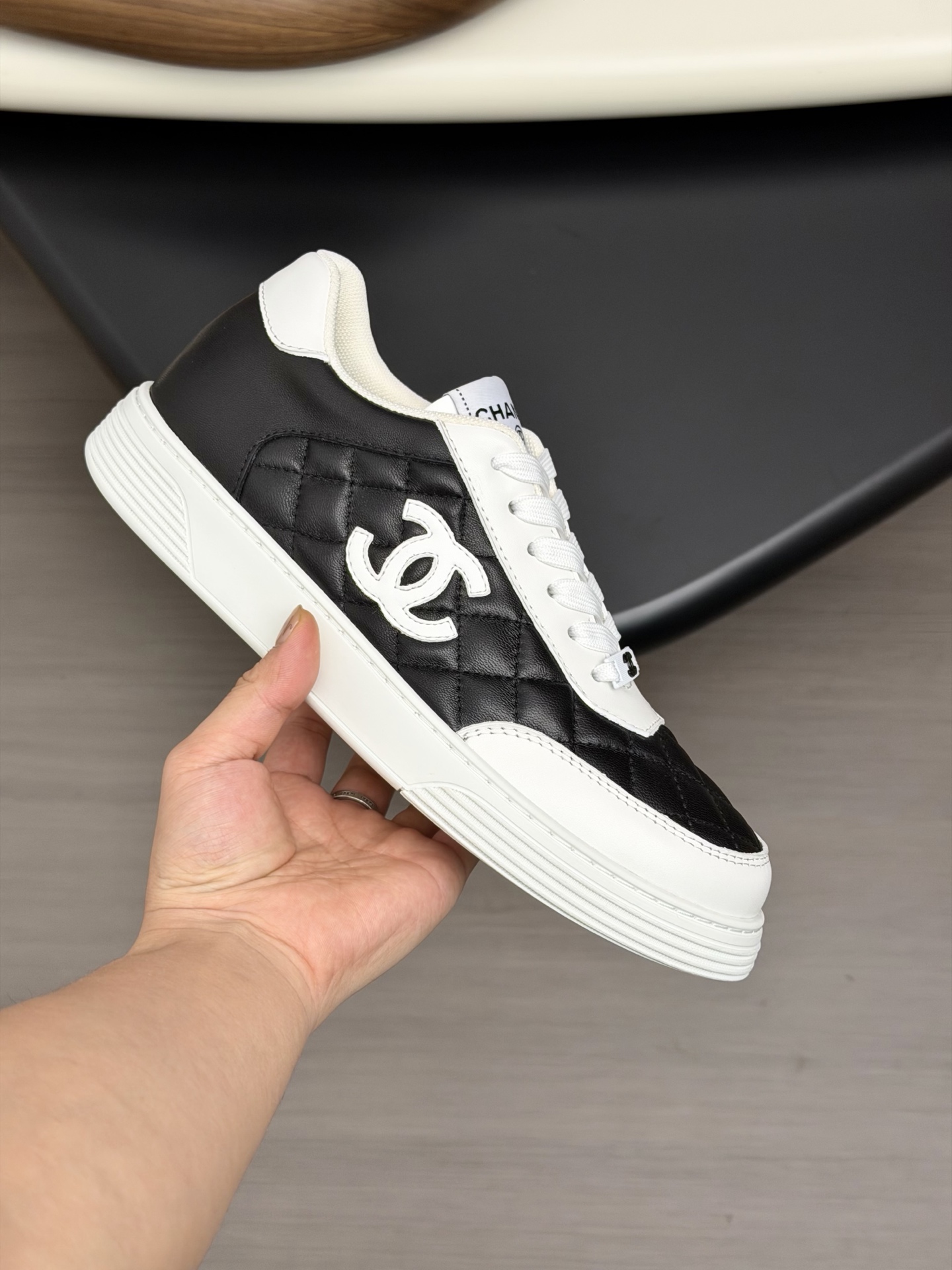 这款鞋子是AAAAA 1:1 质量 (非常棒). 使用了和原版一模一样的材料. 商标部分也保持了和香奈儿/Chanel一样. 图片拍摄是实物鞋子拍摄, 您所收到的实物保证和我们图片一模一样.