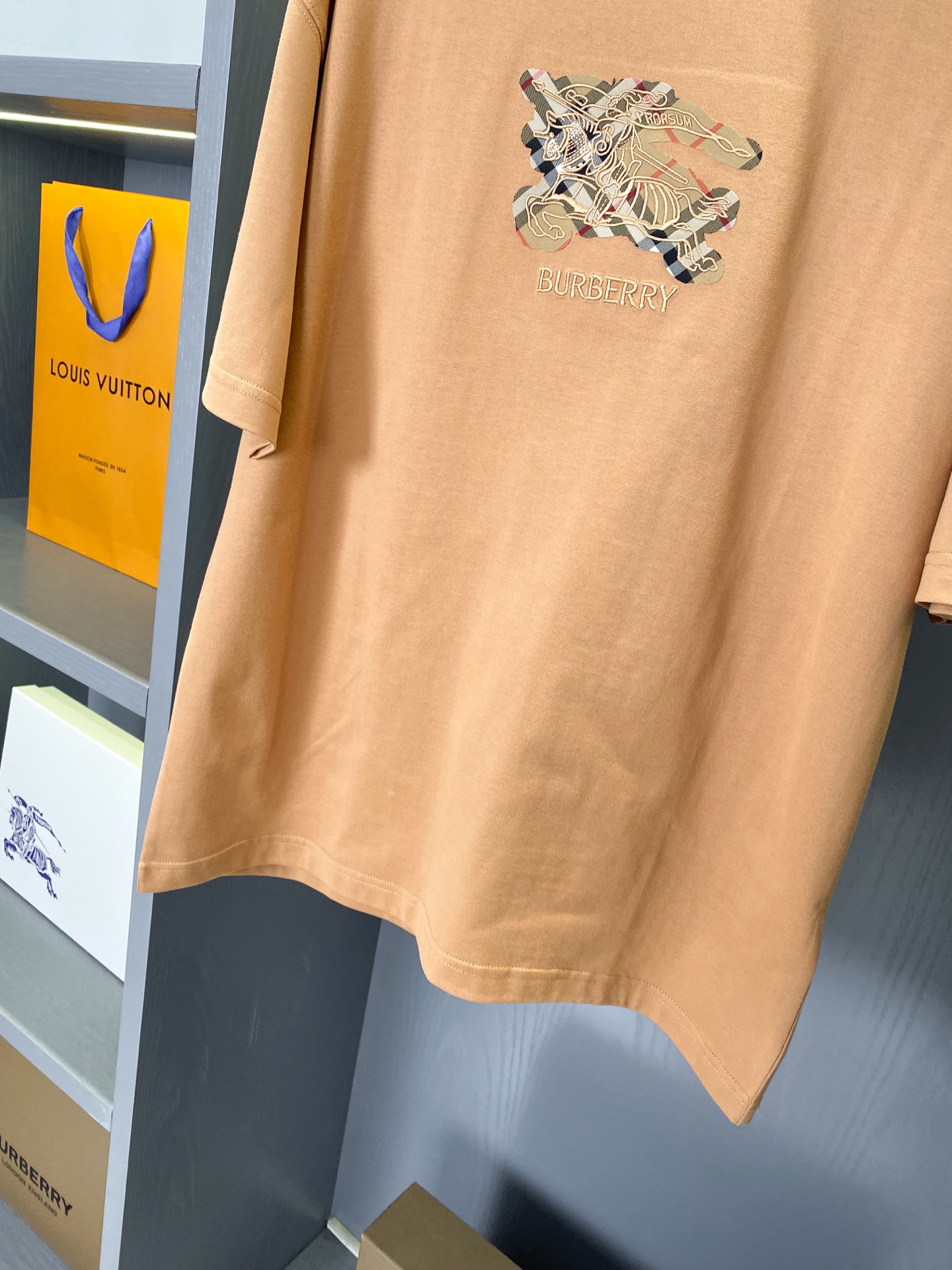 这款衣服是AAAAA 1:1 质量 (非常棒). 使用了和原版一模一样的材料. 商标部分也保持了和巴宝莉/Burberry一样. 图片拍摄是实物衣服拍摄, 您所收到的实物保证和我们图片一模一样.