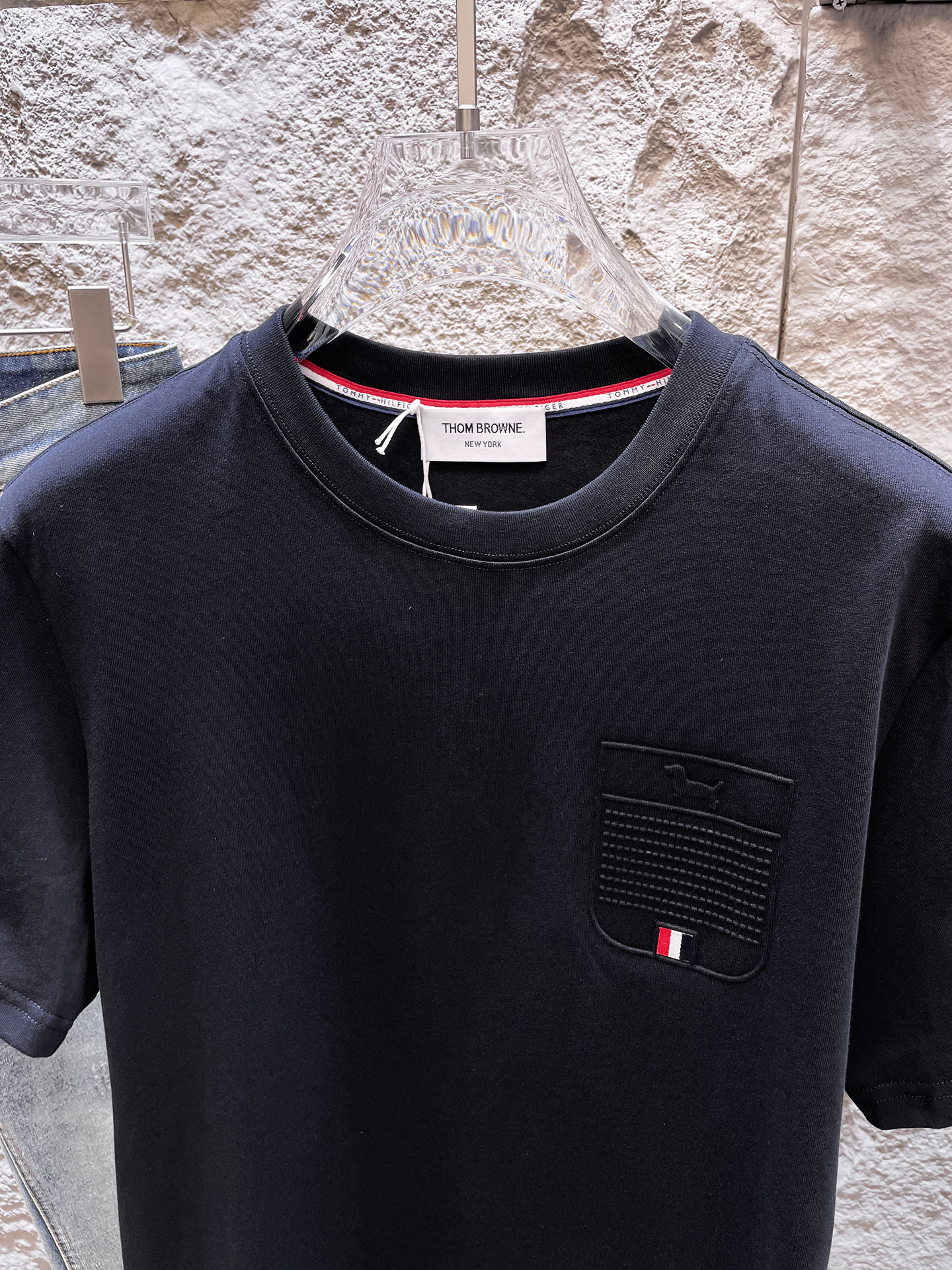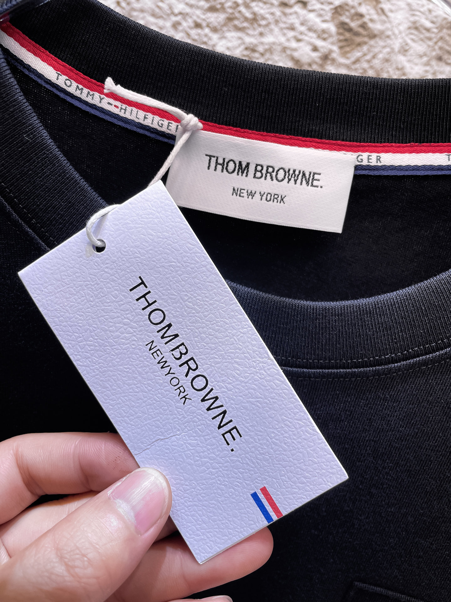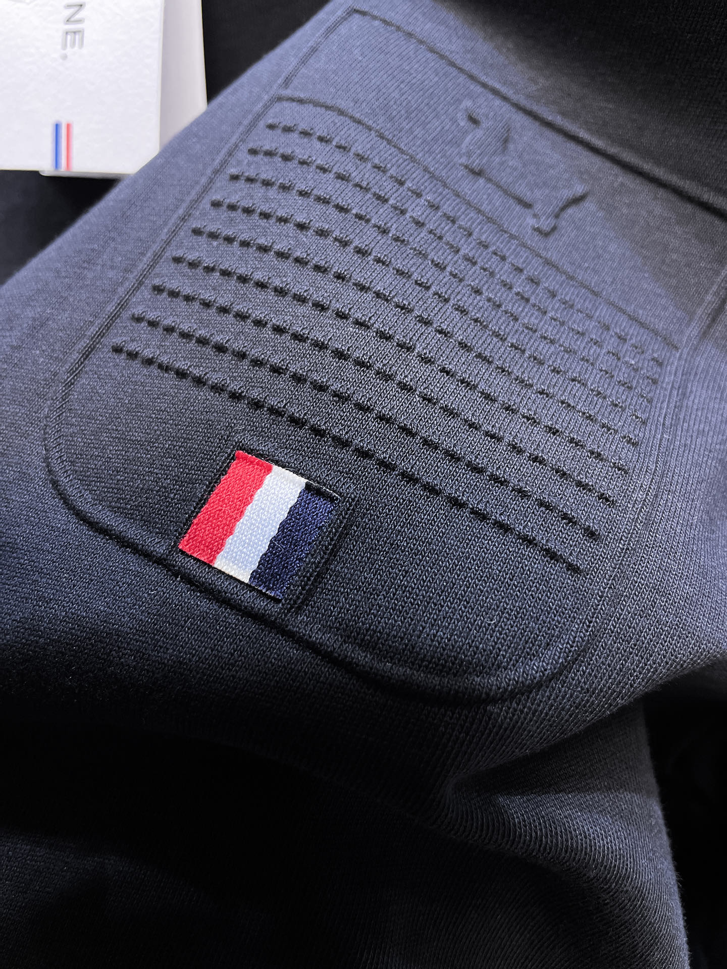 这款衣服是AAAAA 1:1 质量 (非常棒). 使用了和原版一模一样的材料. 商标部分也保持了和汤姆布朗/Thom Browne一样. 图片拍摄是实物衣服拍摄, 您所收到的实物保证和我们图片一模一样.