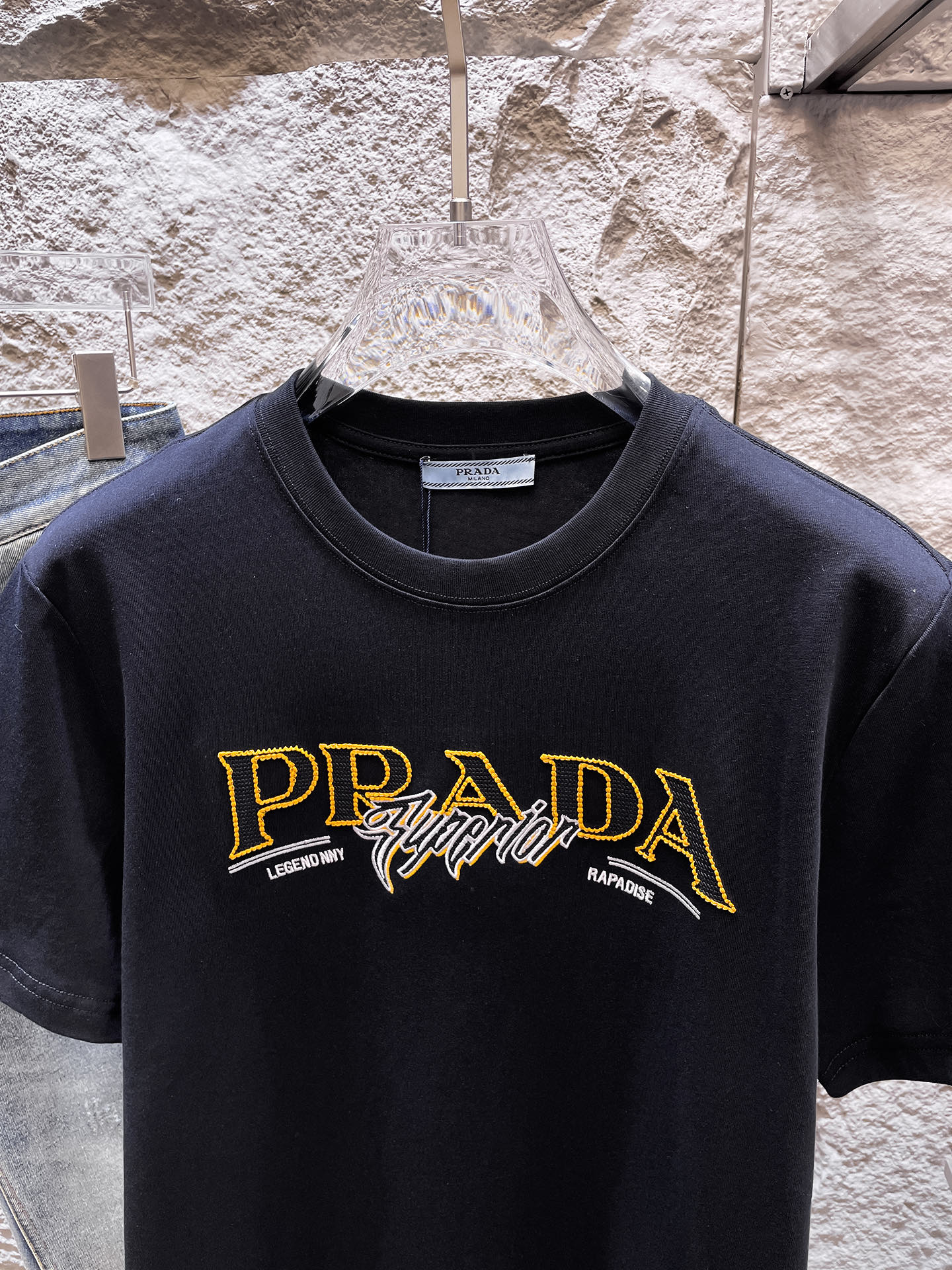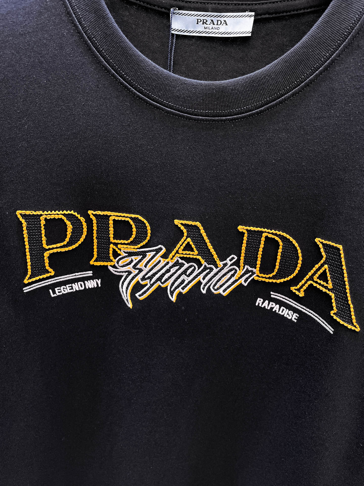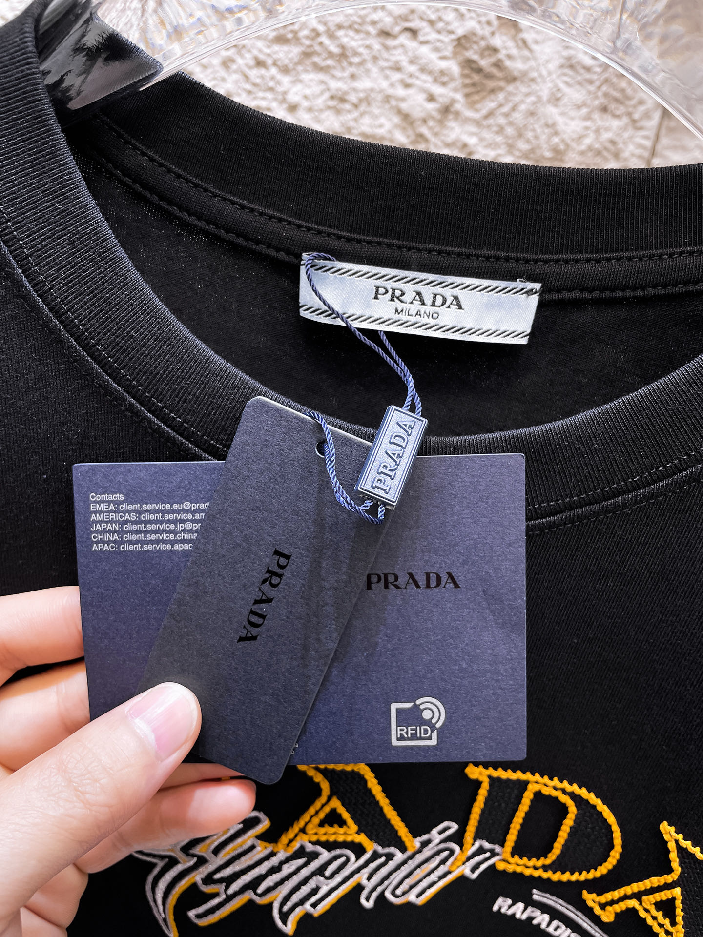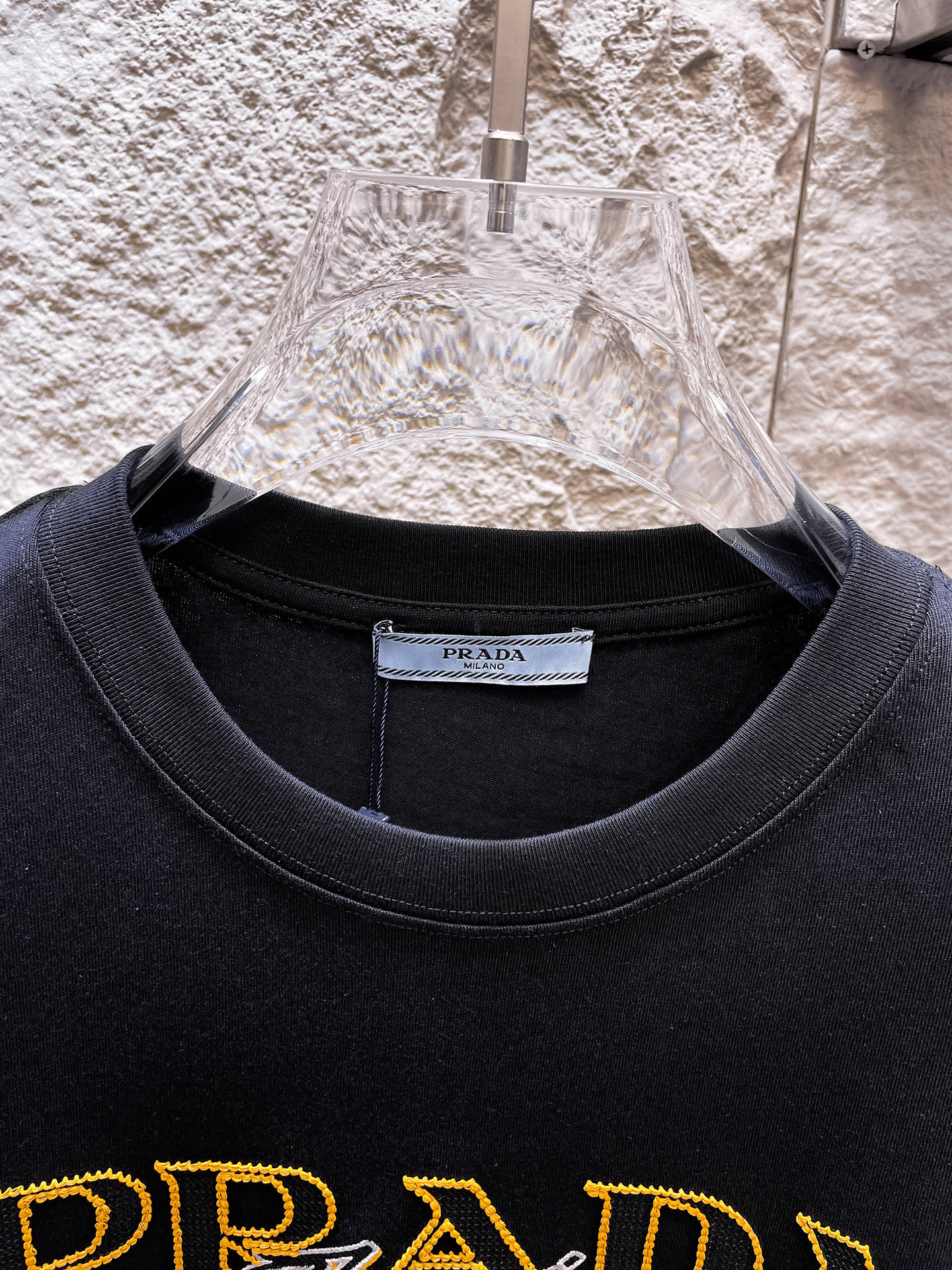 这款衣服是AAAAA 1:1 质量 (非常棒). 使用了和原版一模一样的材料. 商标部分也保持了和普拉达/Prada一样. 图片拍摄是实物衣服拍摄, 您所收到的实物保证和我们图片一模一样.