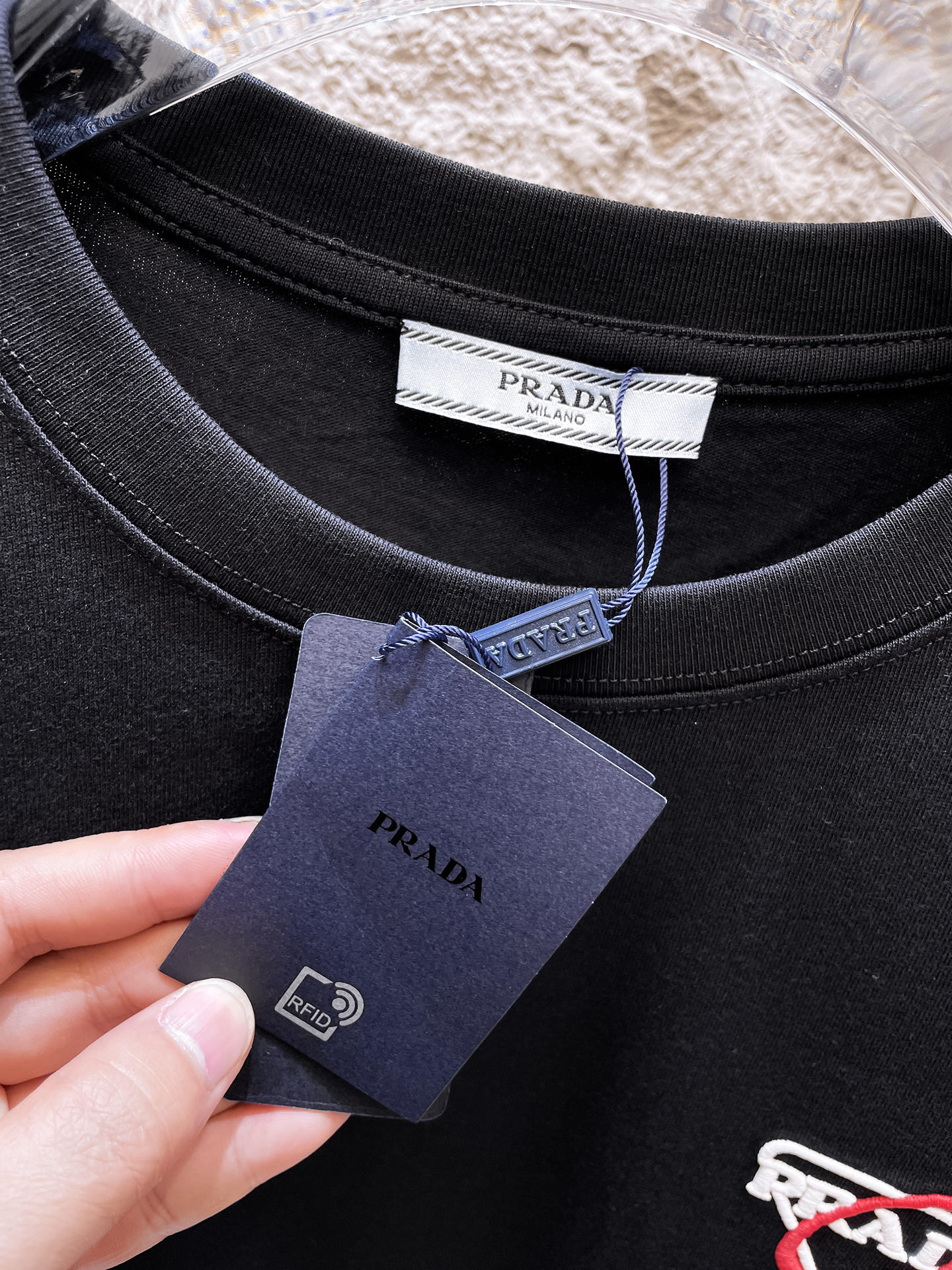 这款衣服是AAAAA 1:1 质量 (非常棒). 使用了和原版一模一样的材料. 商标部分也保持了和普拉达/Prada一样. 图片拍摄是实物衣服拍摄, 您所收到的实物保证和我们图片一模一样.