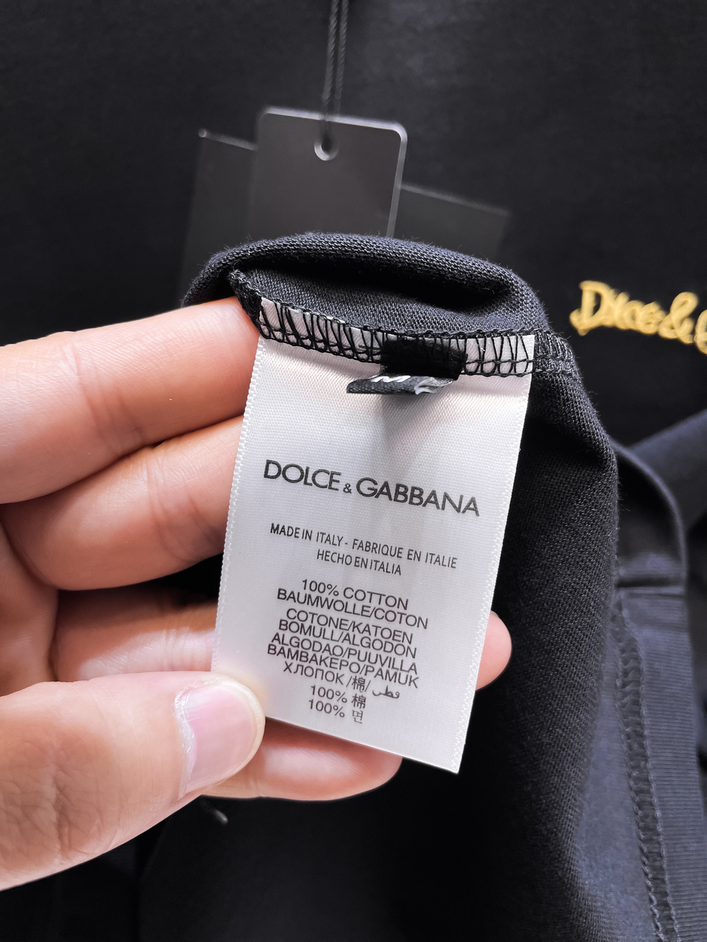 这款衣服是AAAAA 1:1 质量 (非常棒). 使用了和原版一模一样的材料. 商标部分也保持了和杜嘉班纳/Dolce&Gabbana一样. 图片拍摄是实物衣服拍摄, 您所收到的实物保证和我们图片一模一样.