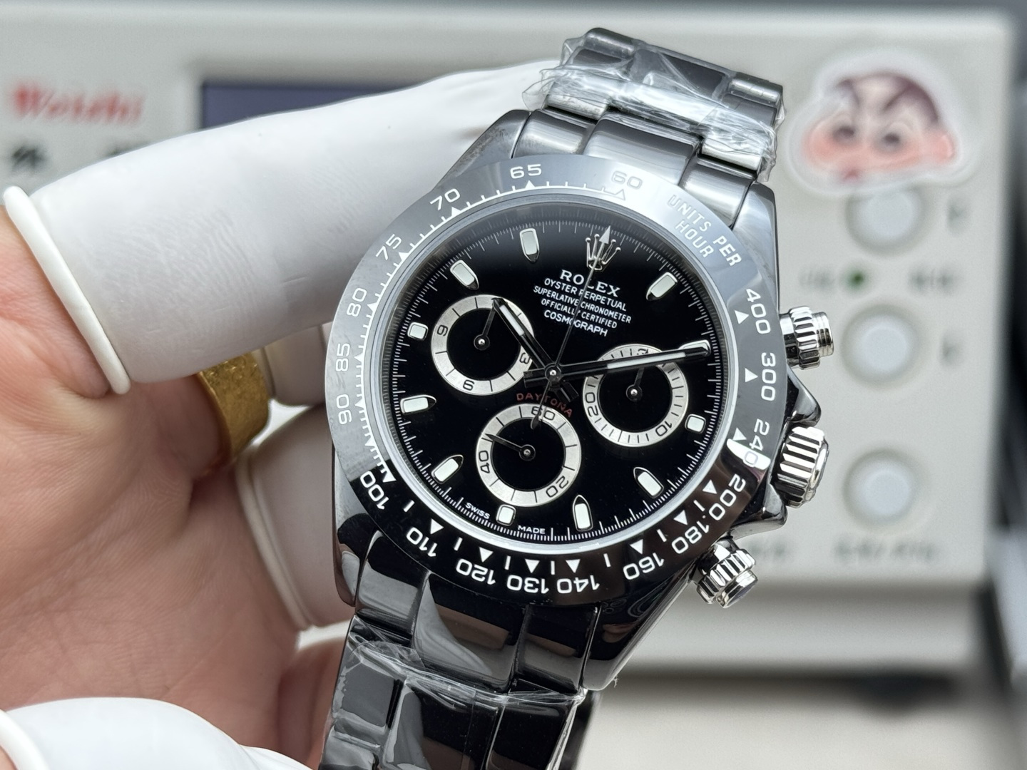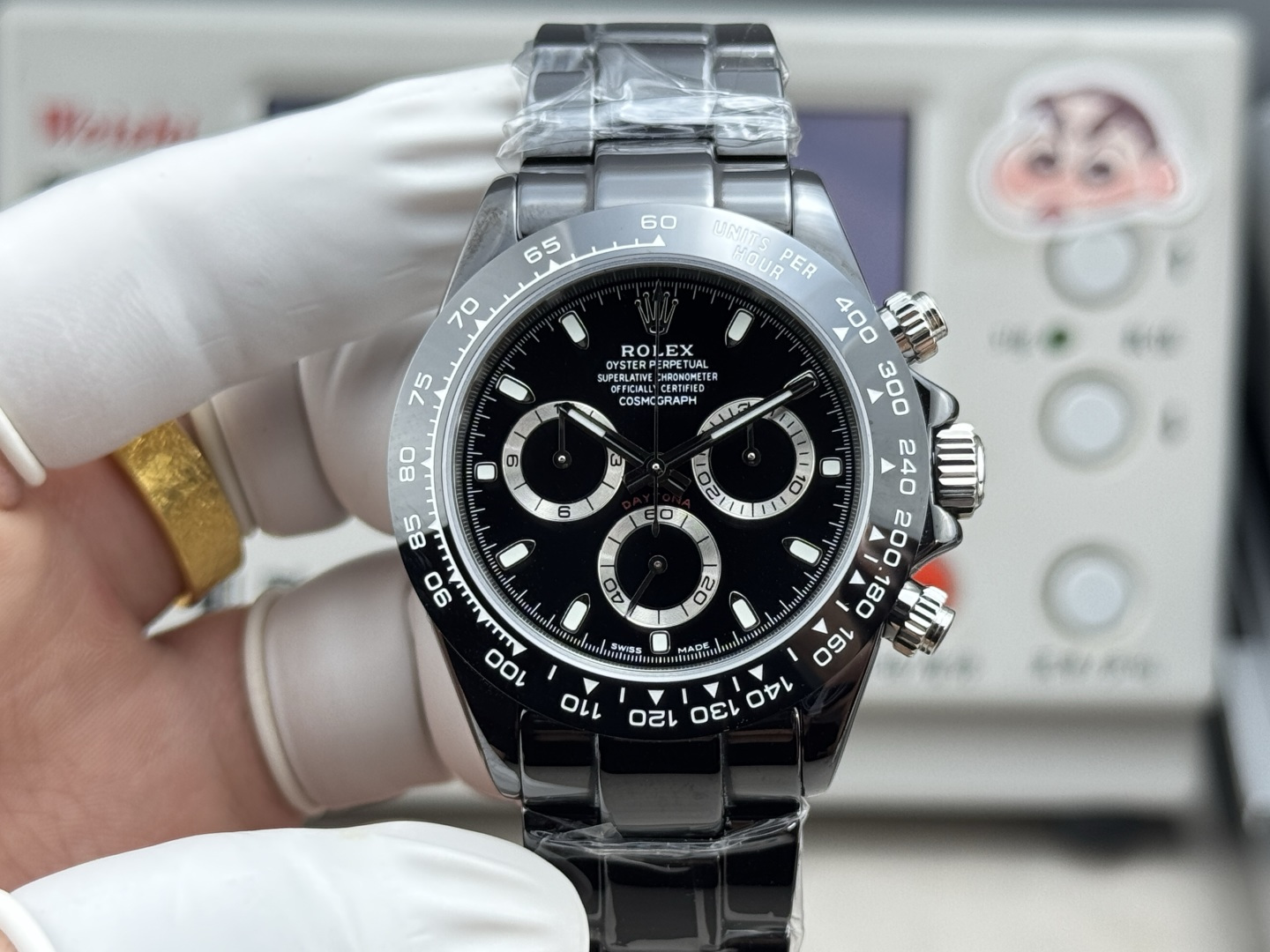 这款手表是AAAAA 1:1 质量 (非常棒). 使用了和原版一模一样的材料. 商标部分也保持了和劳力士/Rolex一样. 图片拍摄是实物手表拍摄, 您所收到的实物保证和我们图片一模一样.