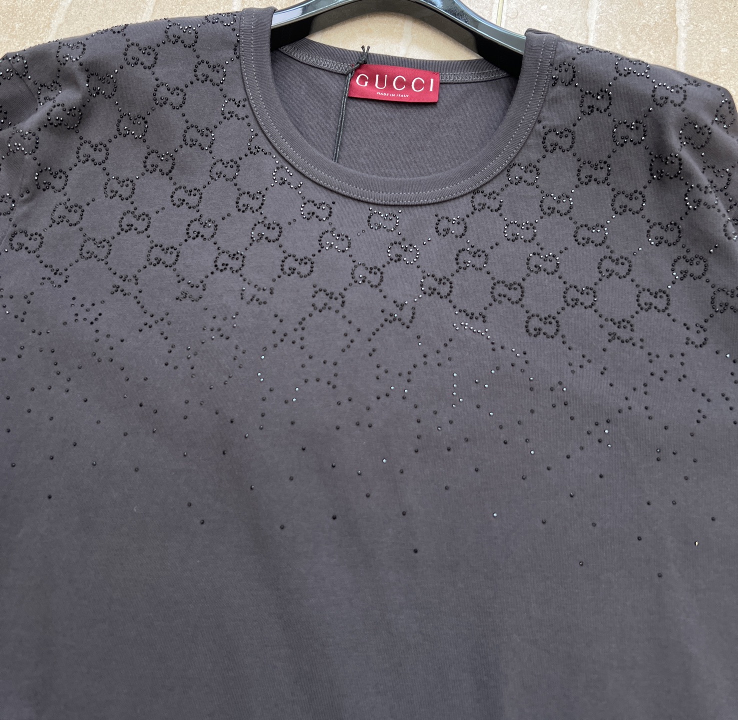 这款衣服是AAAAA 1:1 质量 (非常棒). 使用了和原版一模一样的材料. 商标部分也保持了和古奇/Gucci一样. 图片拍摄是实物衣服拍摄, 您所收到的实物保证和我们图片一模一样.