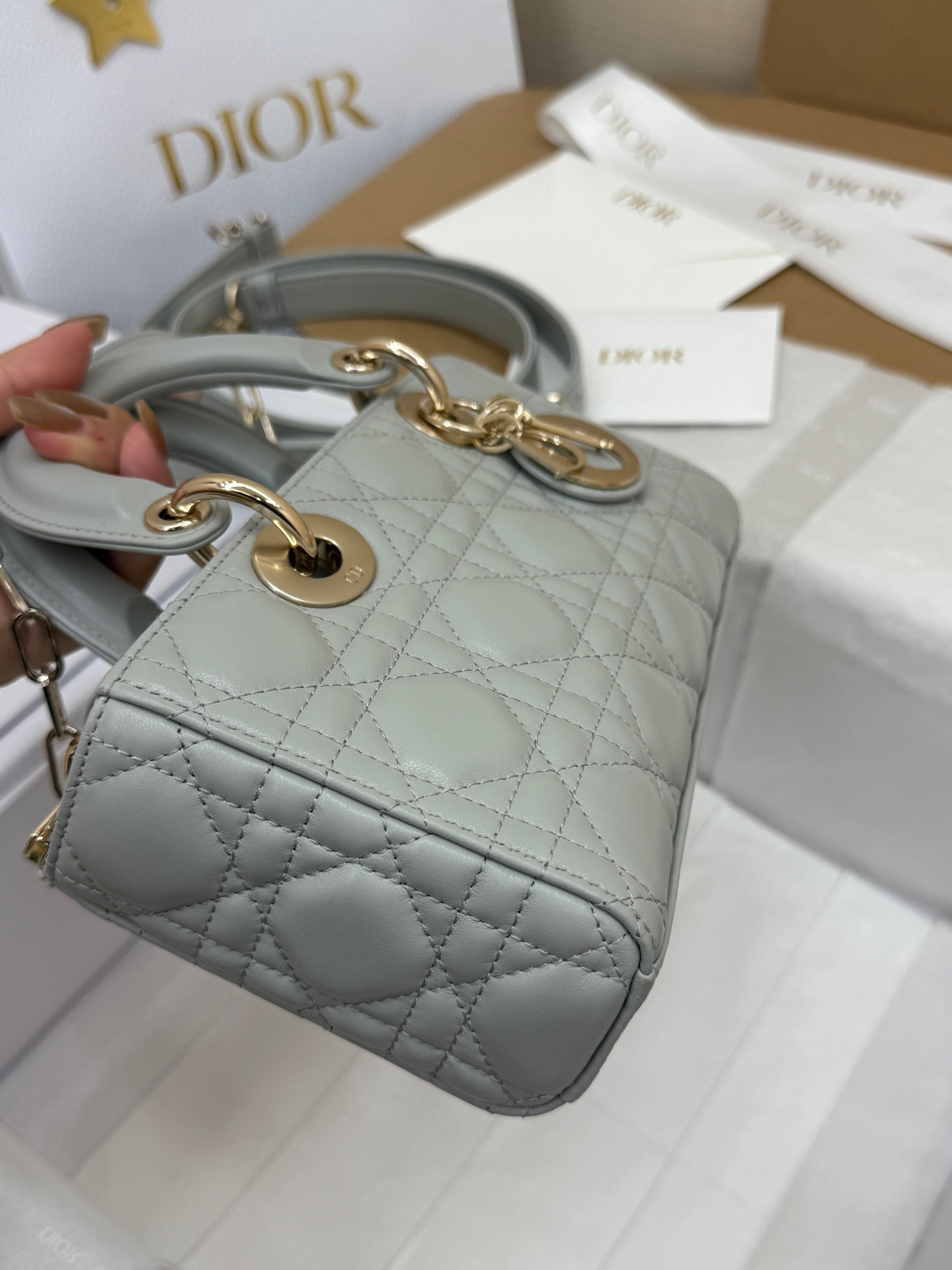 这款包包是AAAAA 1:1 质量 (非常棒). 使用了和原版一模一样的材料. 商标部分也保持了和迪奥/Dior一样. 图片拍摄是实物包包拍摄, 您所收到的实物保证和我们图片一模一样.
