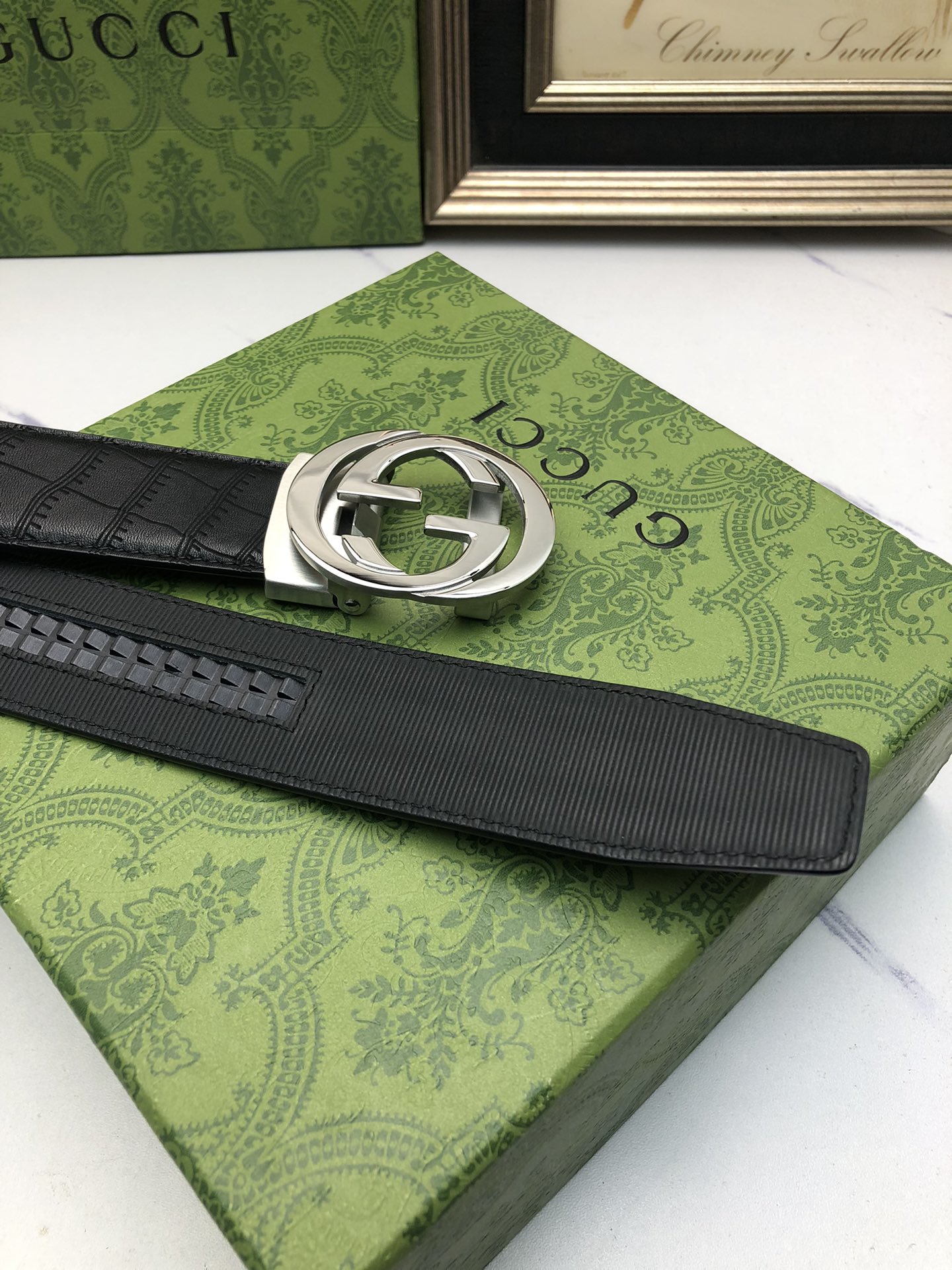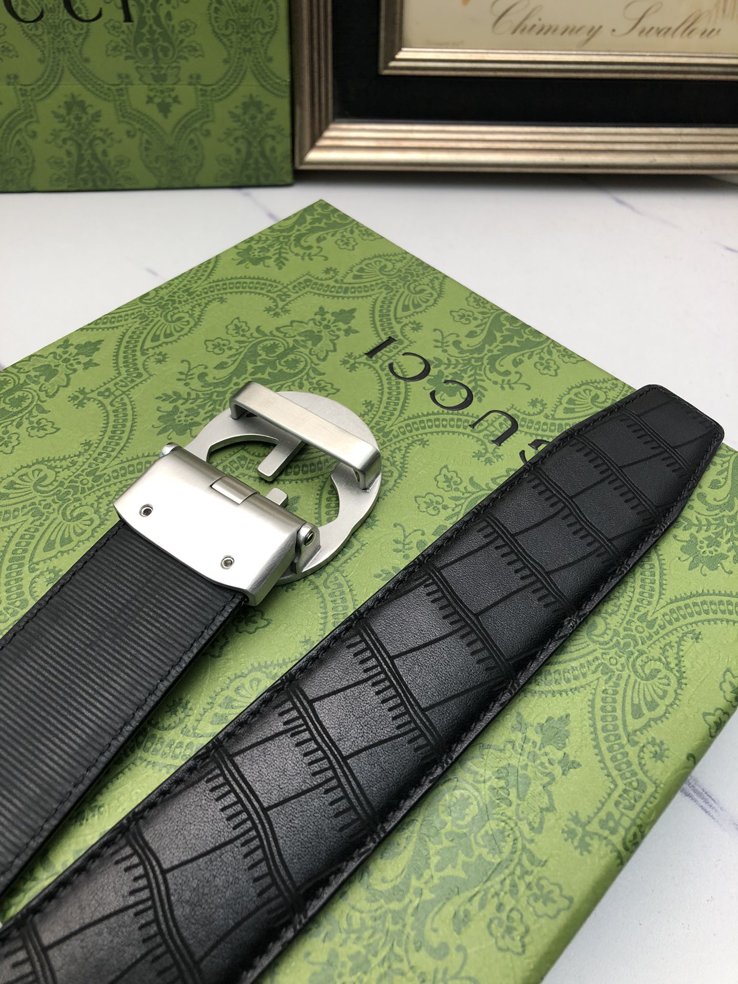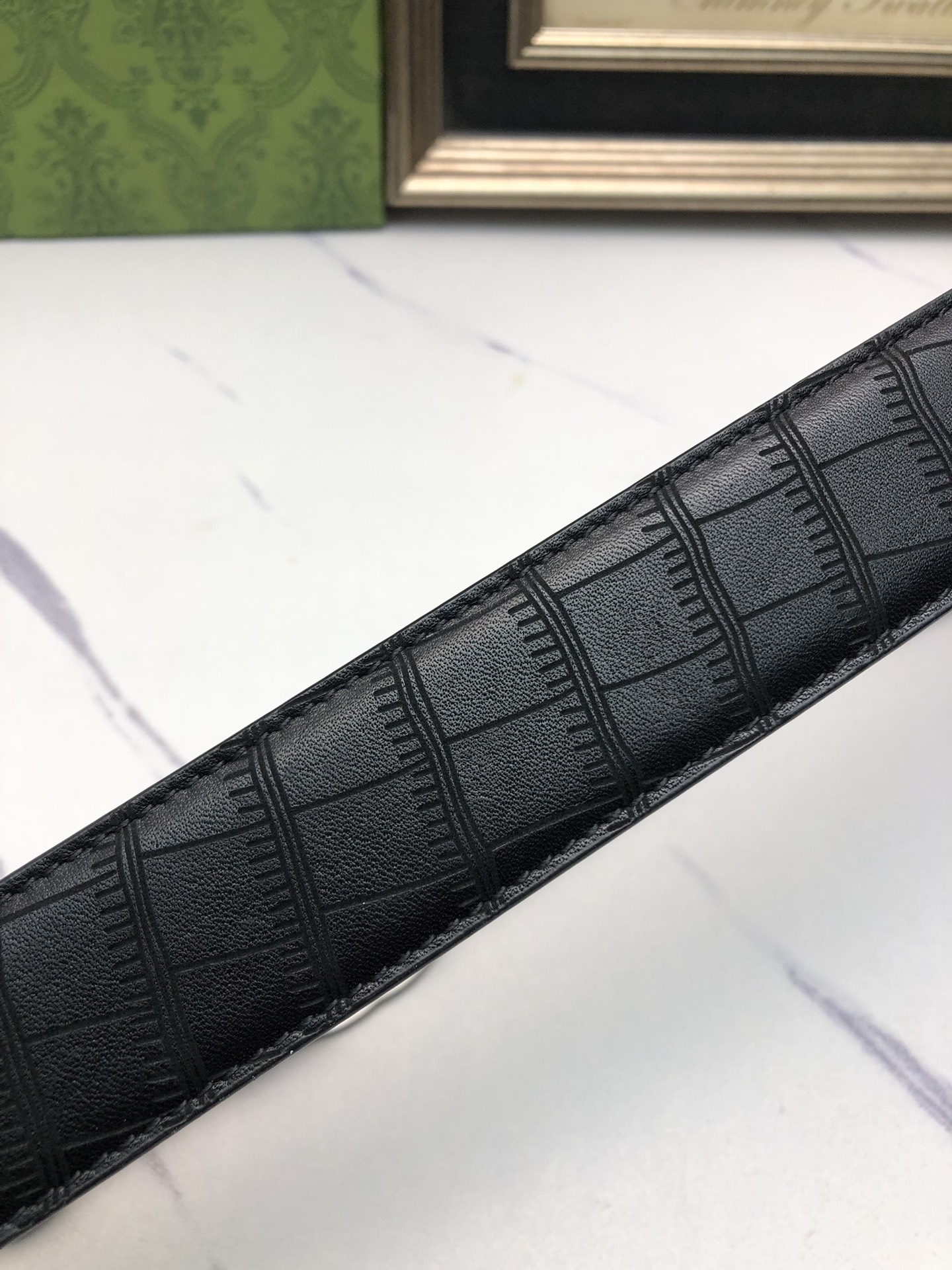 这款皮带是AAAAA 1:1 质量 (非常棒). 使用了和原版一模一样的材料. 商标部分也保持了和古奇/Gucci一样. 图片拍摄是实物皮带拍摄, 您所收到的实物保证和我们图片一模一样.