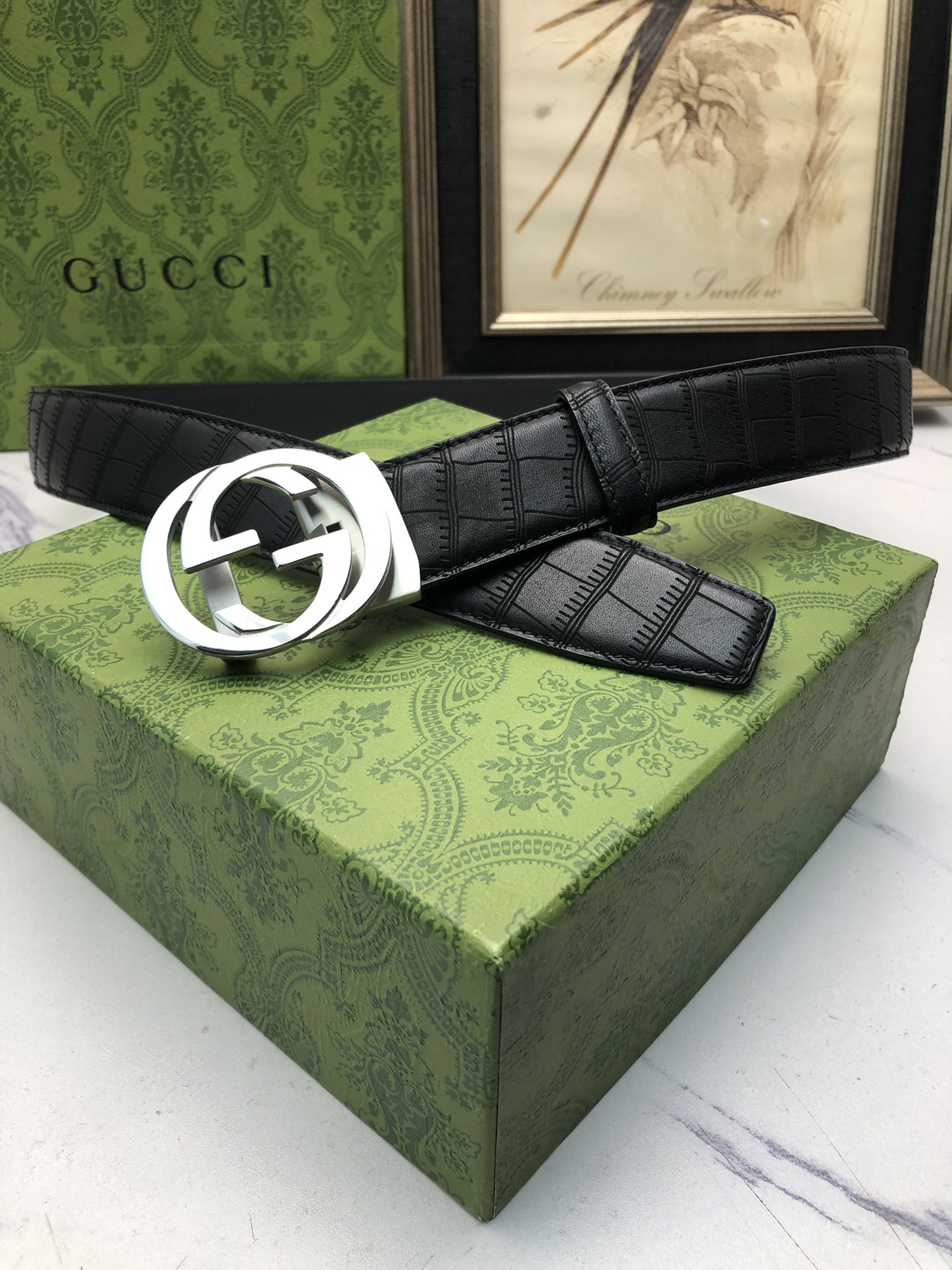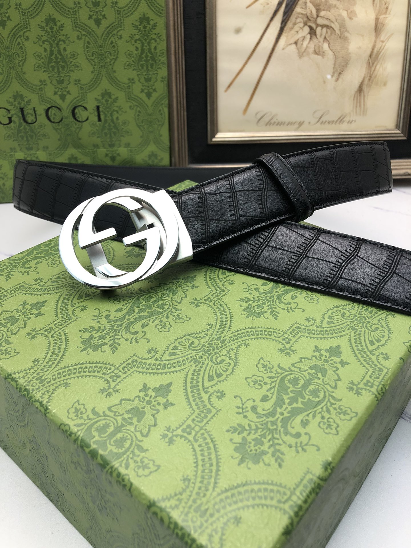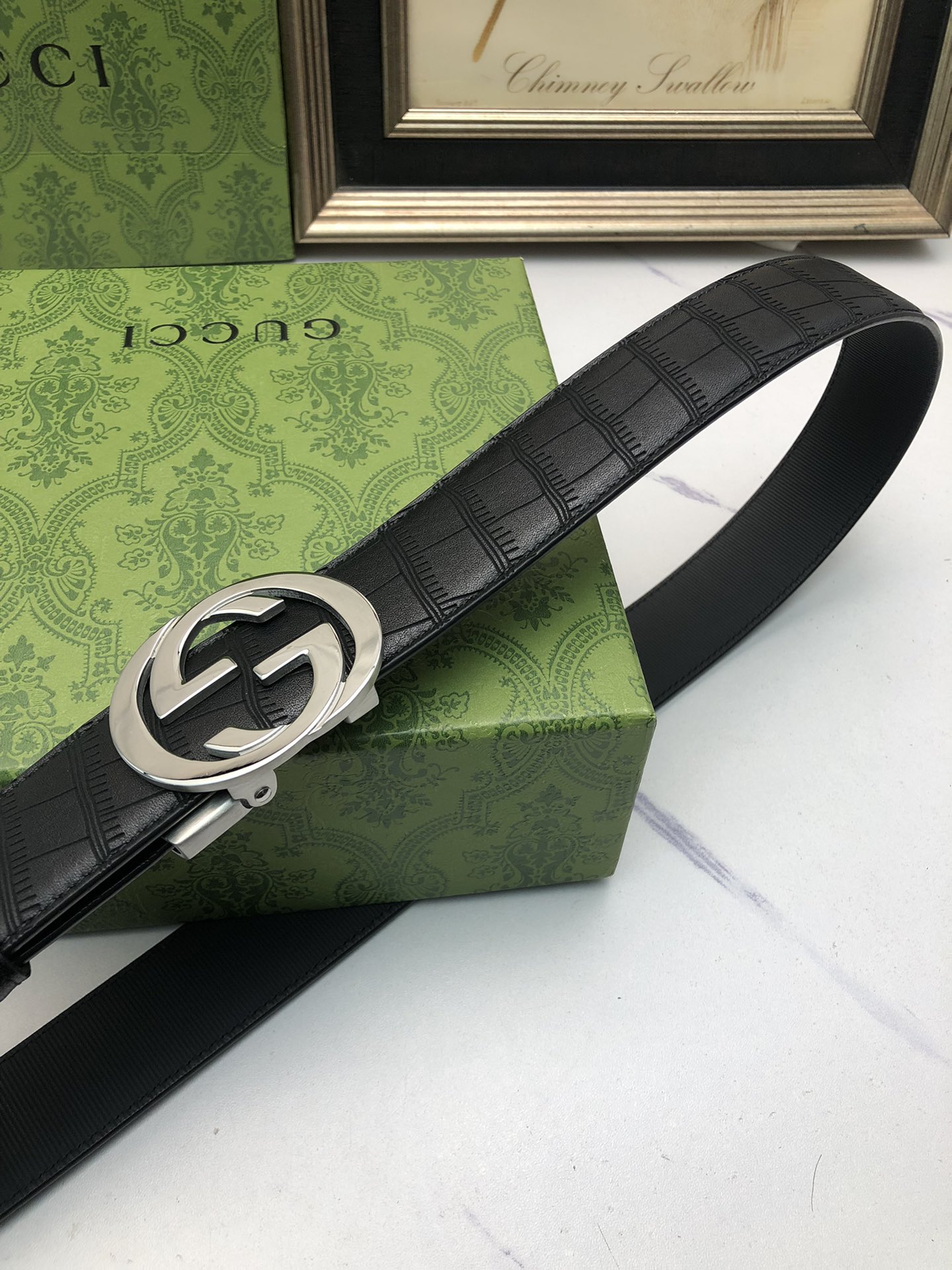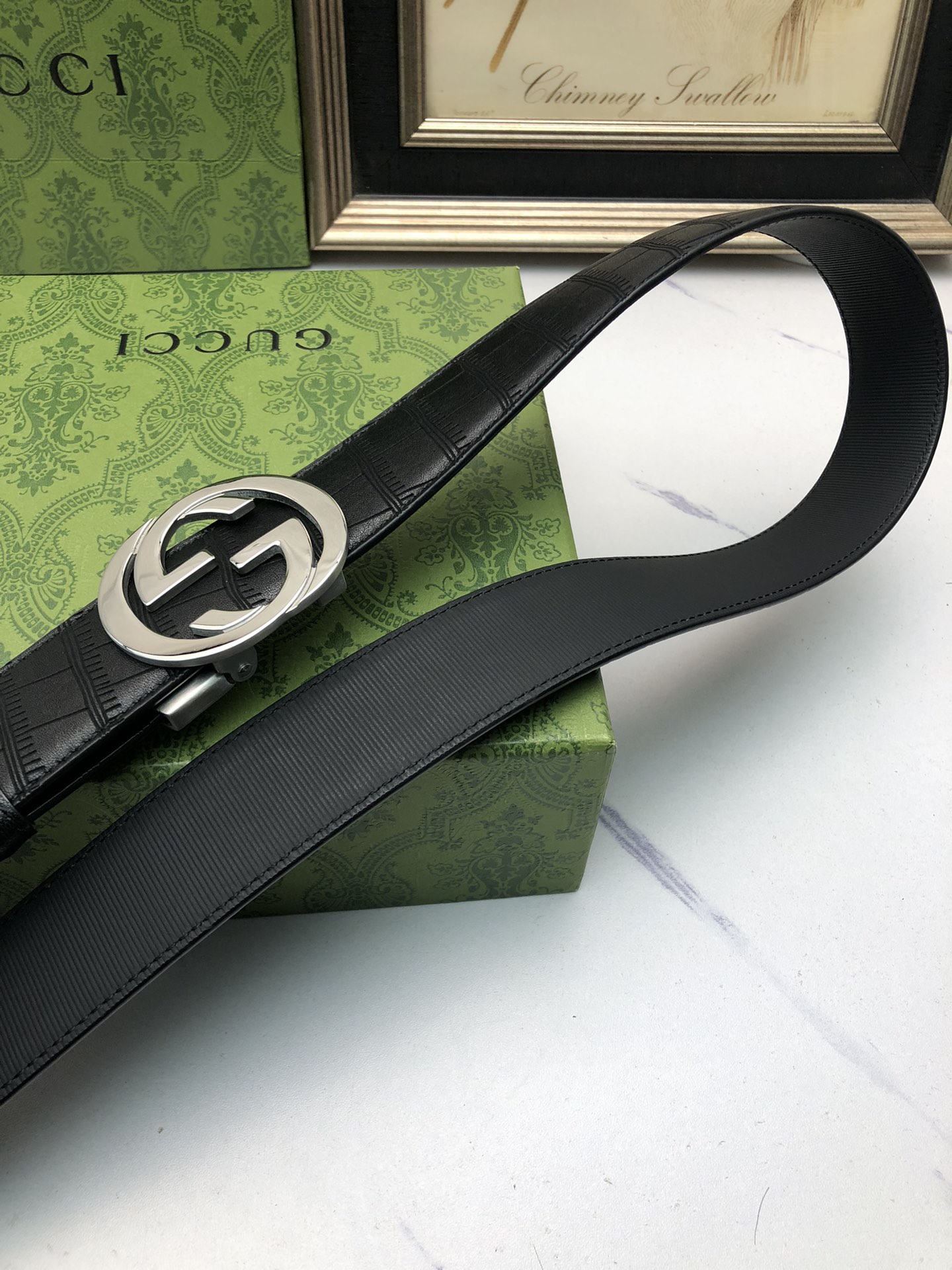 这款皮带是AAAAA 1:1 质量 (非常棒). 使用了和原版一模一样的材料. 商标部分也保持了和古奇/Gucci一样. 图片拍摄是实物皮带拍摄, 您所收到的实物保证和我们图片一模一样.