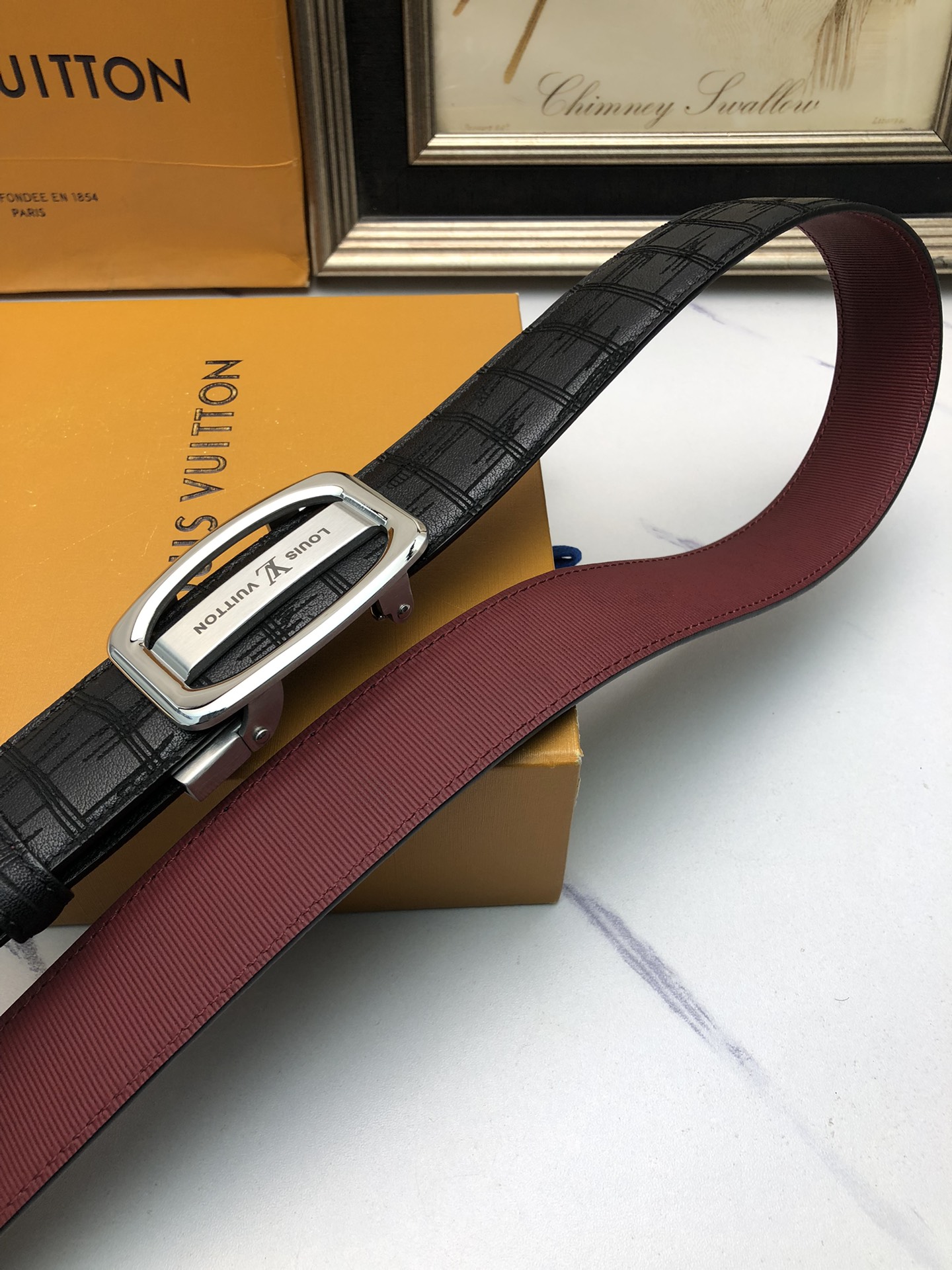 这款皮带是AAAAA 1:1 质量 (非常棒). 使用了和原版一模一样的材料. 商标部分也保持了和一样. 图片拍摄是实物皮带拍摄, 您所收到的实物保证和我们图片一模一样.