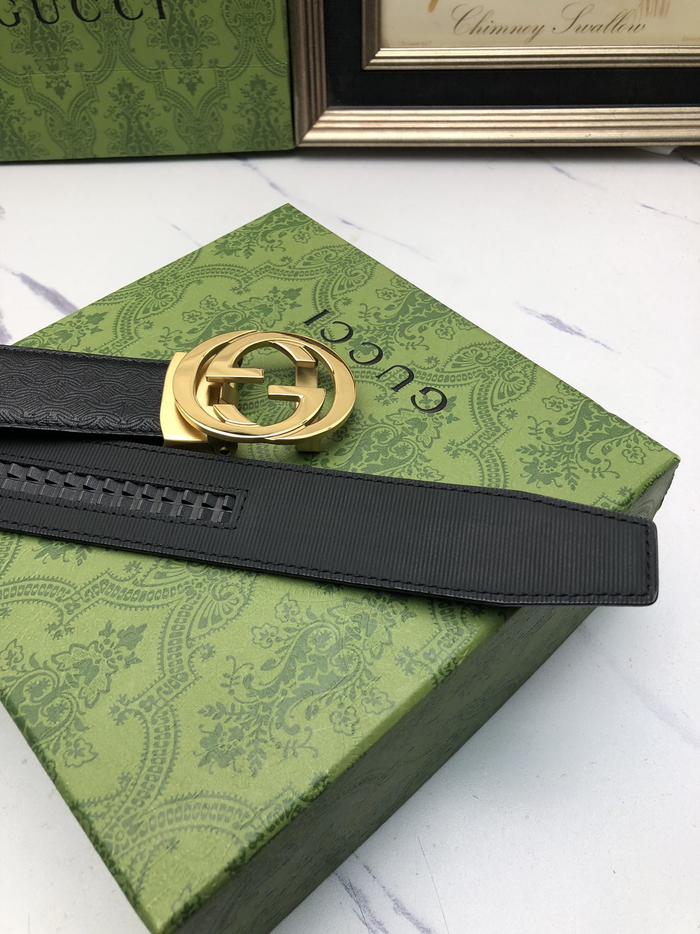 这款皮带是AAAAA 1:1 质量 (非常棒). 使用了和原版一模一样的材料. 商标部分也保持了和古奇/Gucci一样. 图片拍摄是实物皮带拍摄, 您所收到的实物保证和我们图片一模一样.