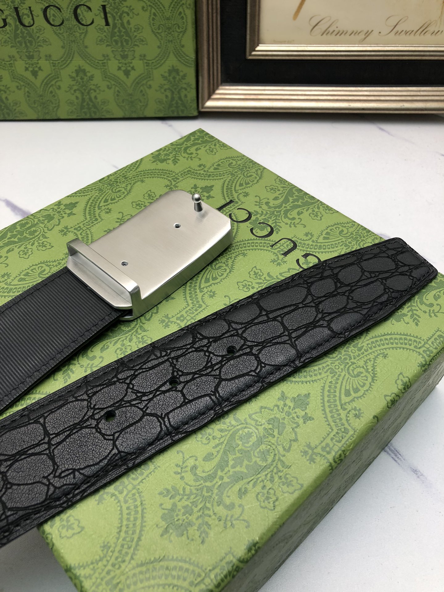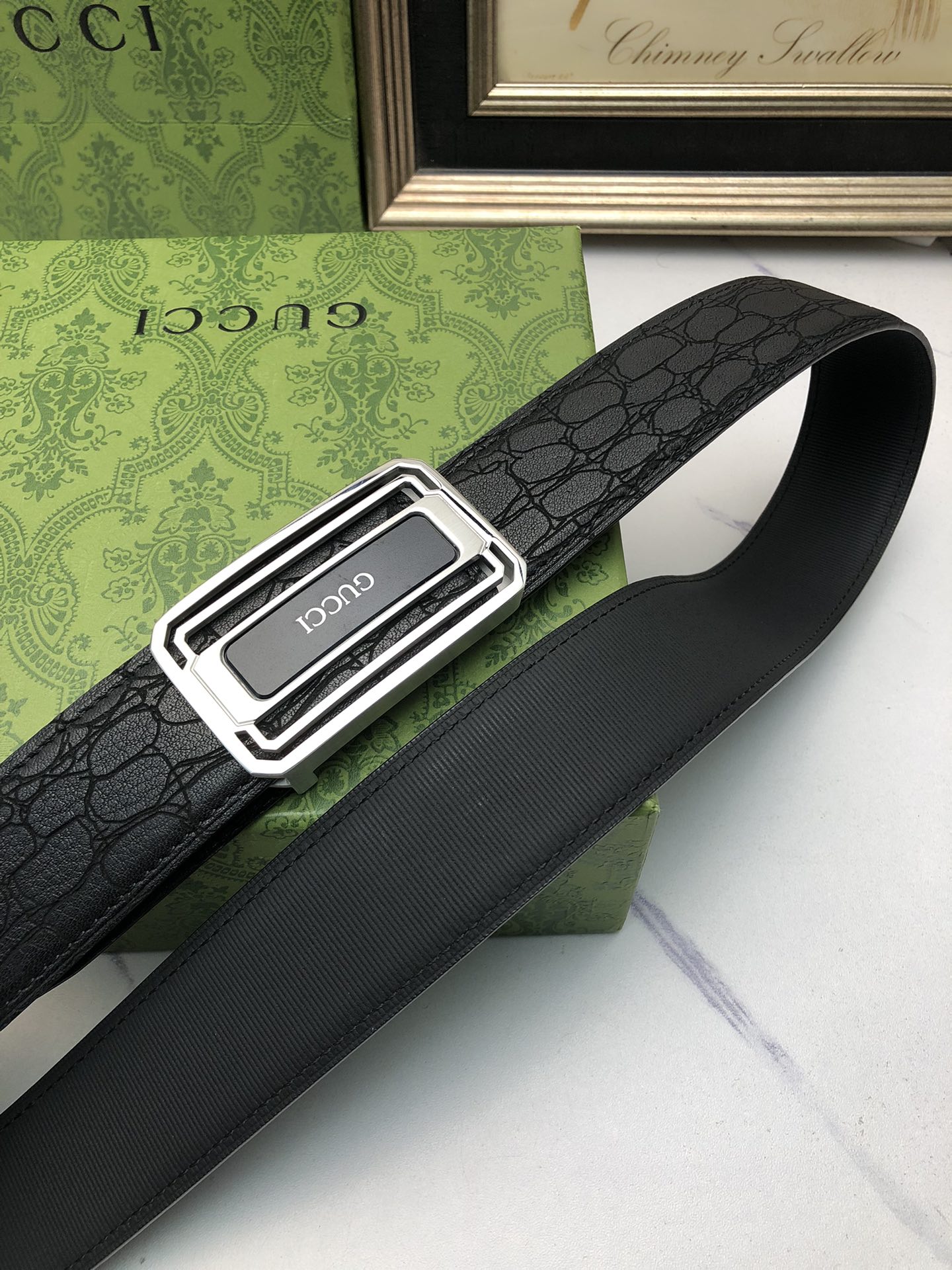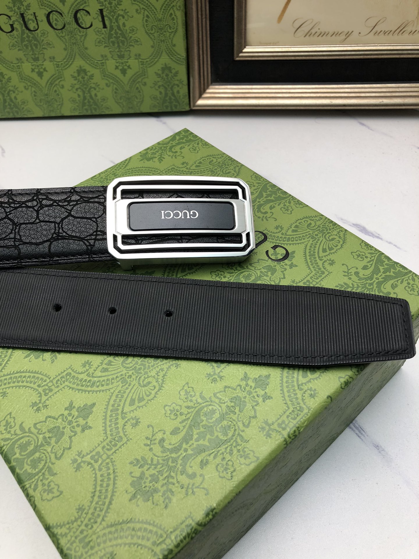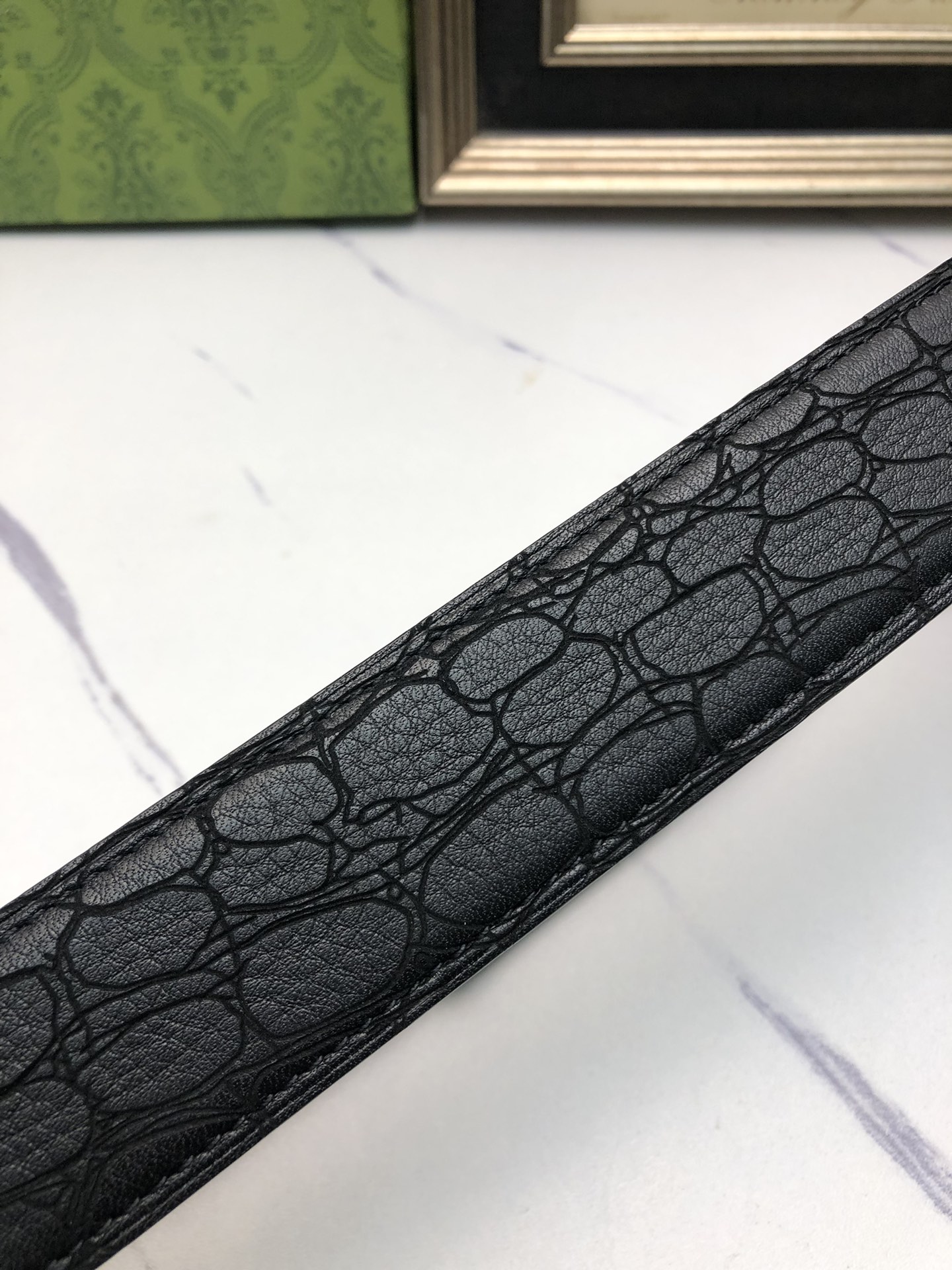 这款皮带是AAAAA 1:1 质量 (非常棒). 使用了和原版一模一样的材料. 商标部分也保持了和古奇/Gucci一样. 图片拍摄是实物皮带拍摄, 您所收到的实物保证和我们图片一模一样.