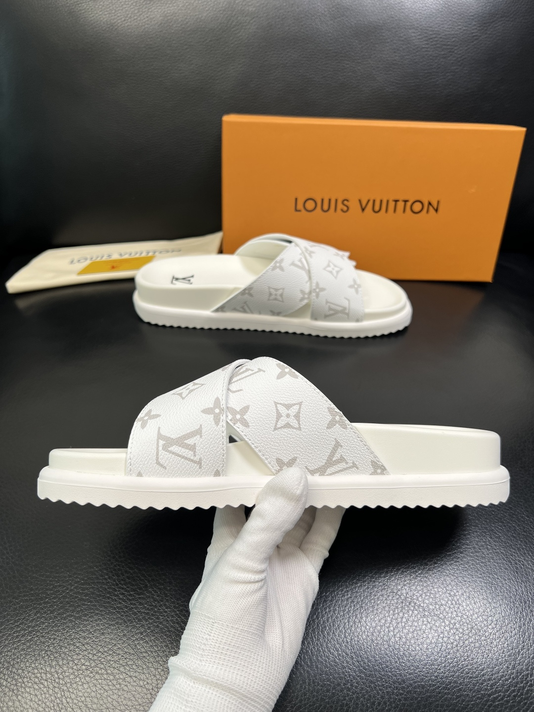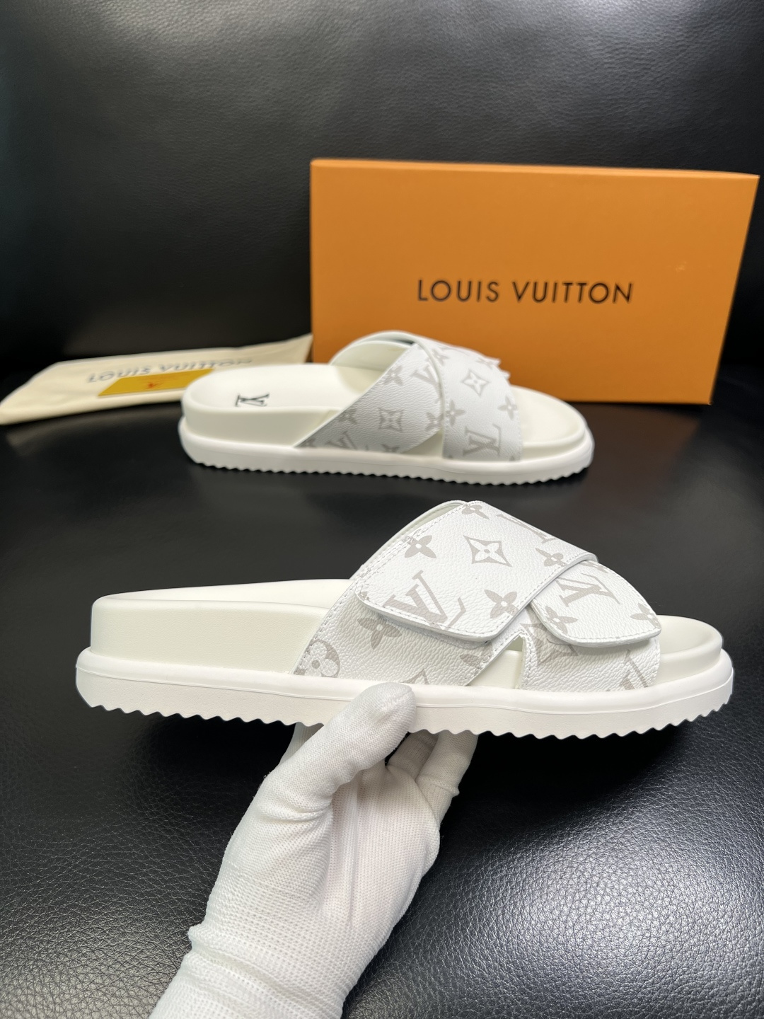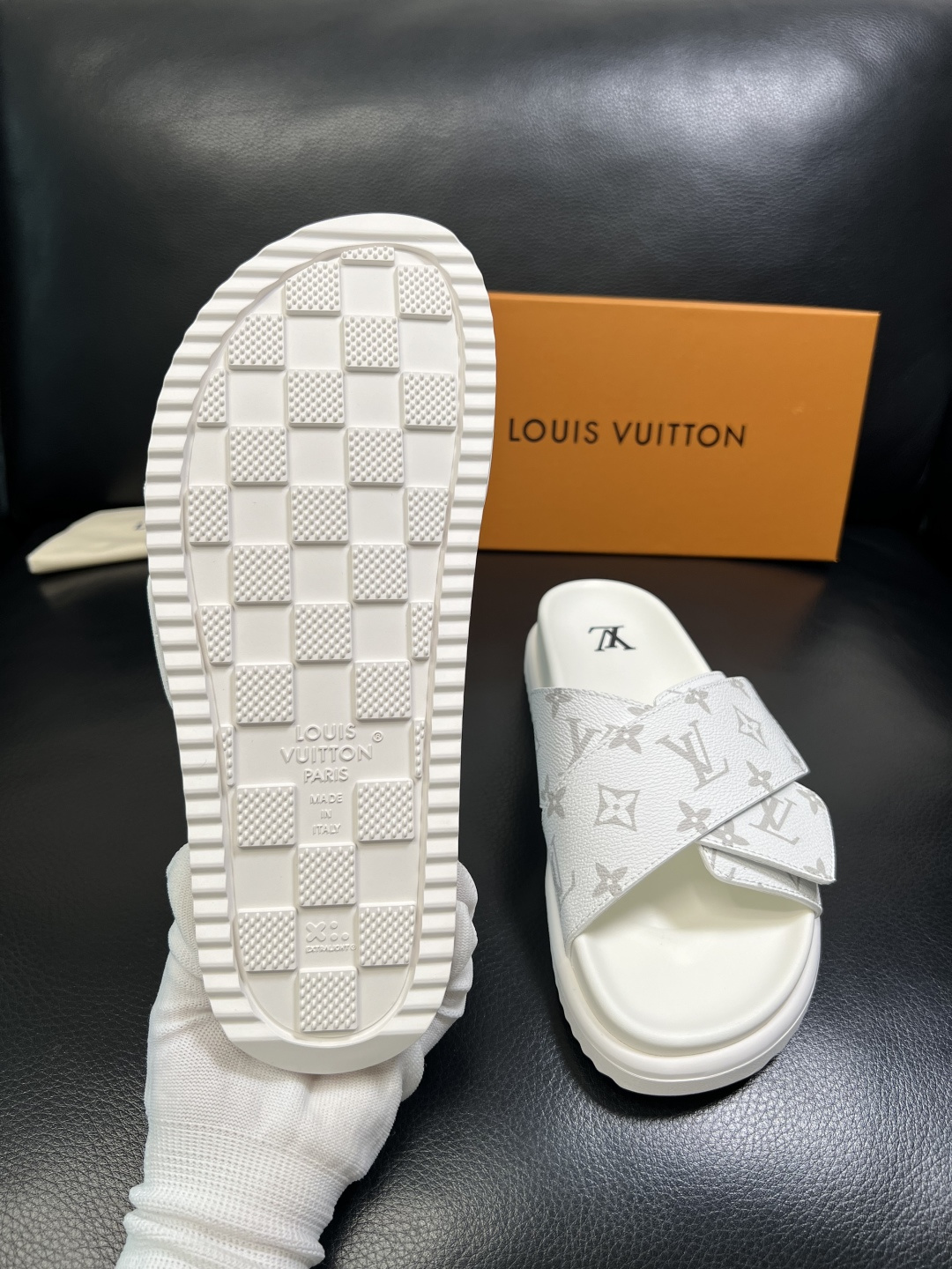这款鞋子是AAAAA 1:1 质量 (非常棒). 使用了和原版一模一样的材料. 商标部分也保持了和路易威登/Louis Vuitton一样. 图片拍摄是实物鞋子拍摄, 您所收到的实物保证和我们图片一模一样.