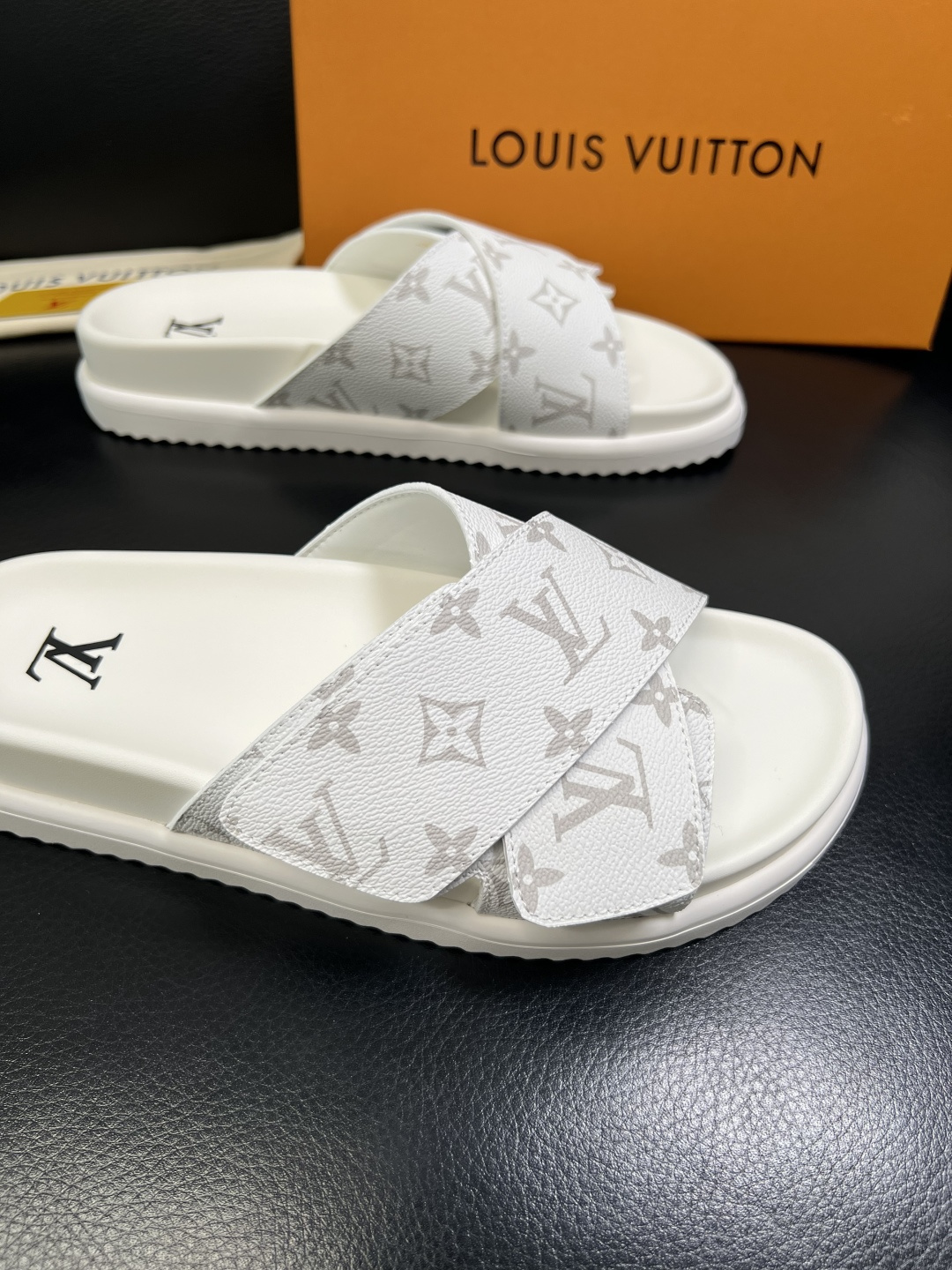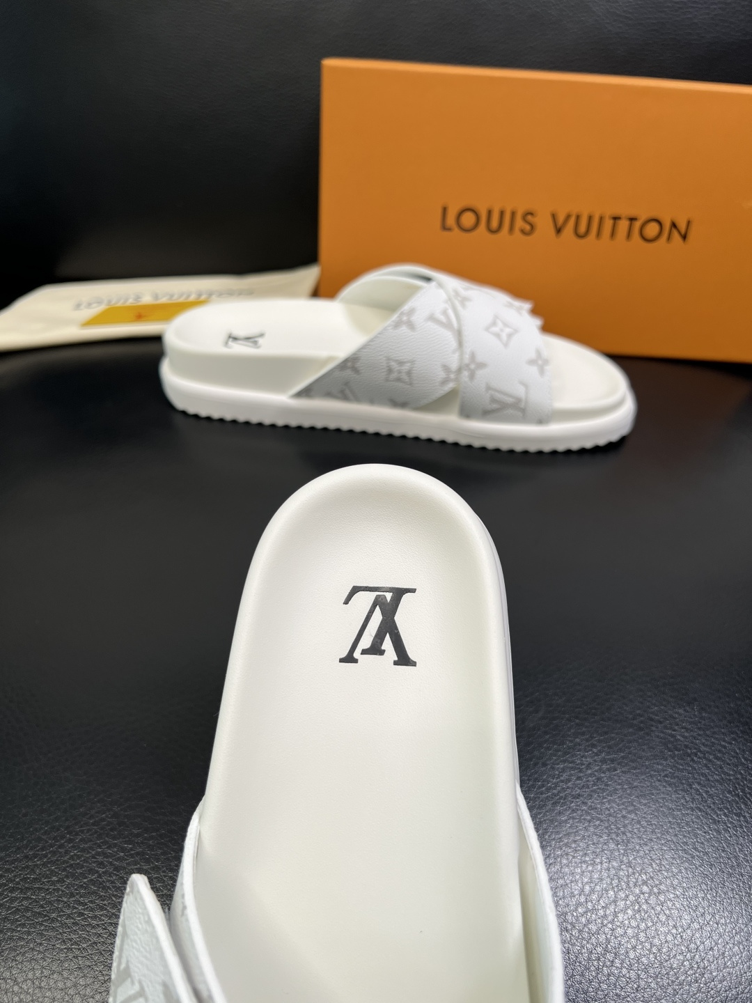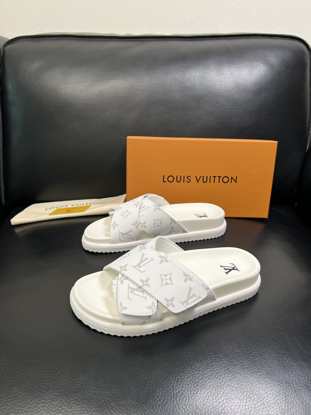这款鞋子是AAAAA 1:1 质量 (非常棒). 使用了和原版一模一样的材料. 商标部分也保持了和路易威登/Louis Vuitton一样. 图片拍摄是实物鞋子拍摄, 您所收到的实物保证和我们图片一模一样.