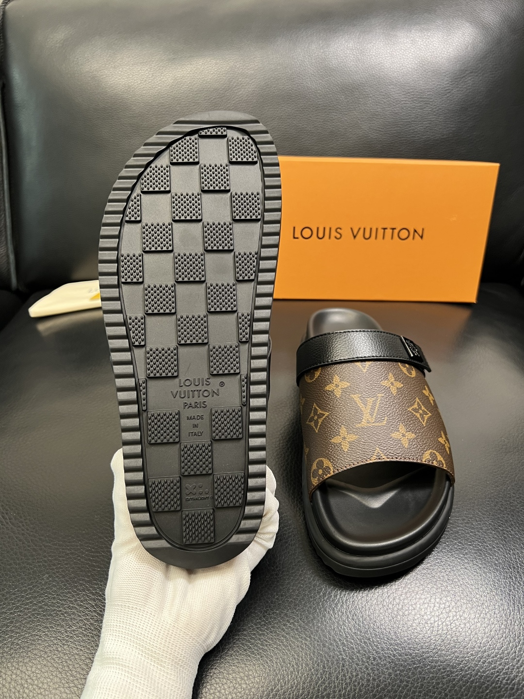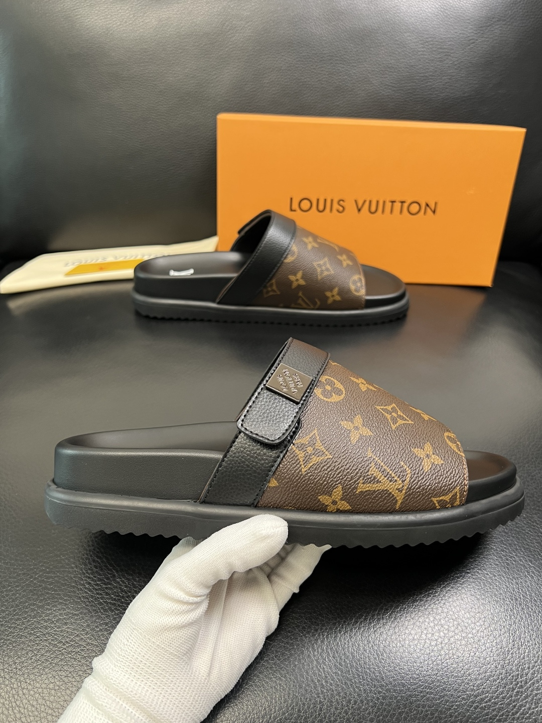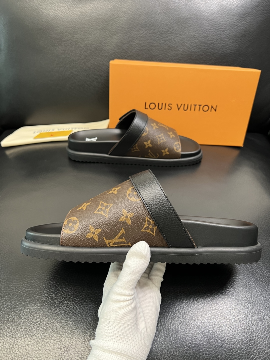 这款鞋子是AAAAA 1:1 质量 (非常棒). 使用了和原版一模一样的材料. 商标部分也保持了和路易威登/Louis Vuitton一样. 图片拍摄是实物鞋子拍摄, 您所收到的实物保证和我们图片一模一样.