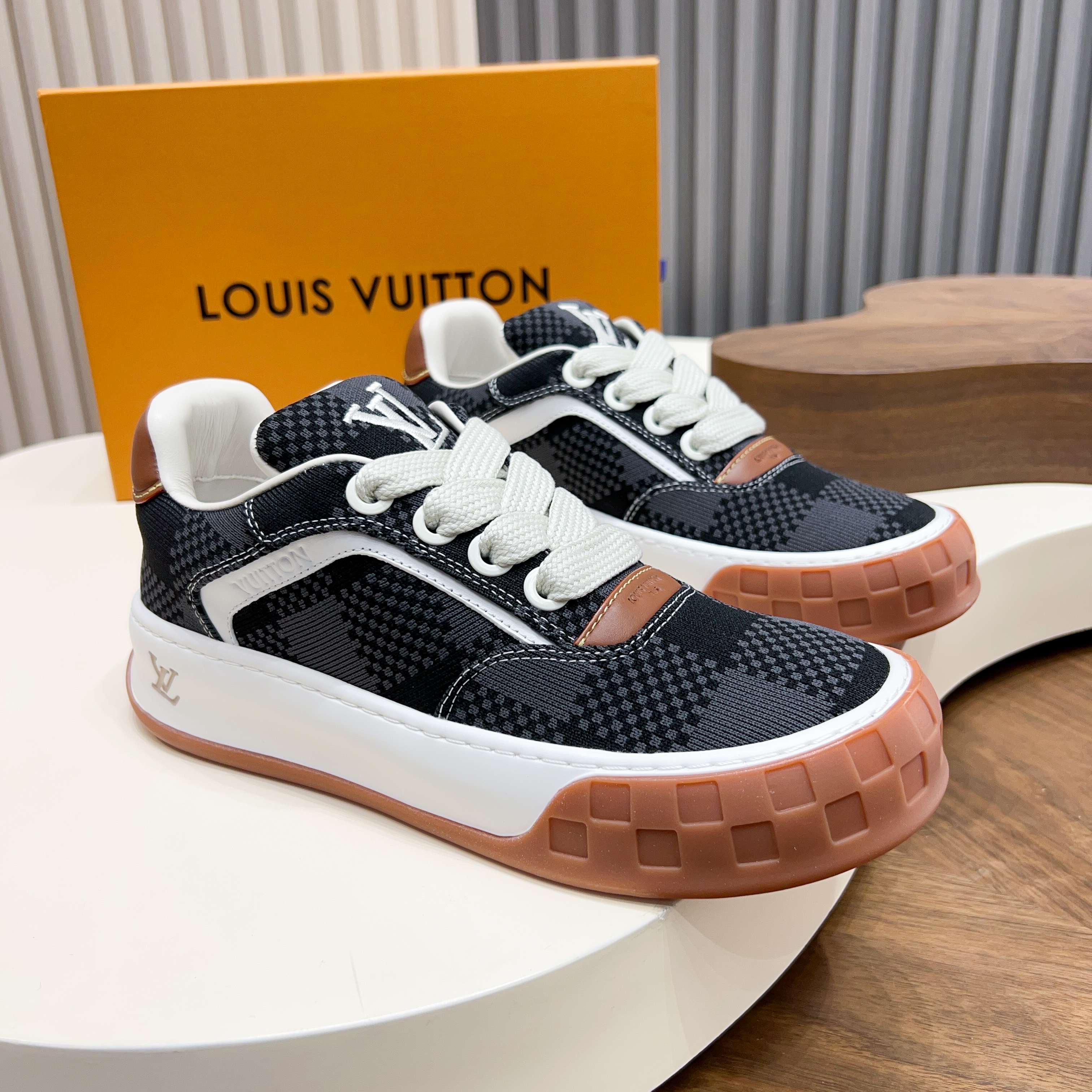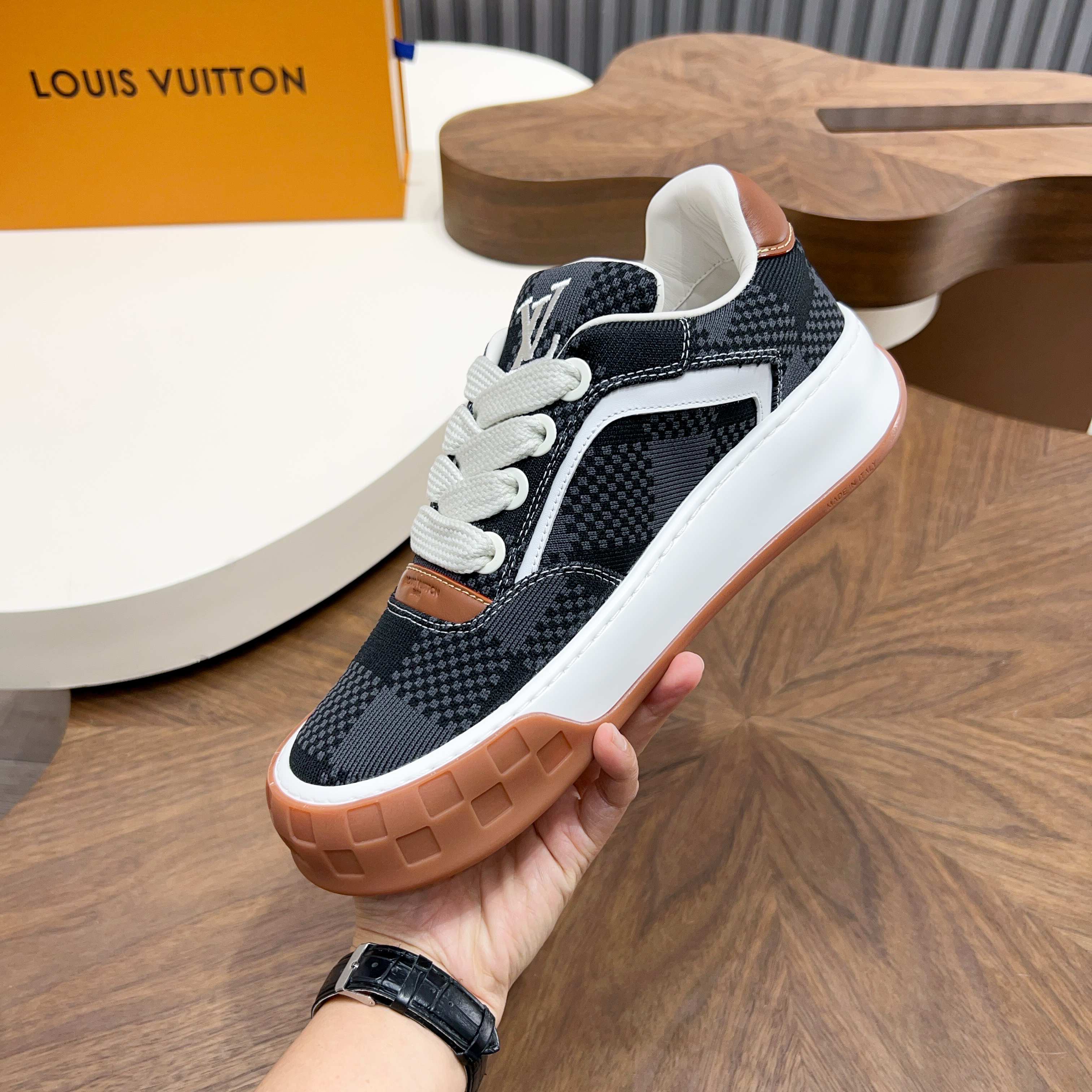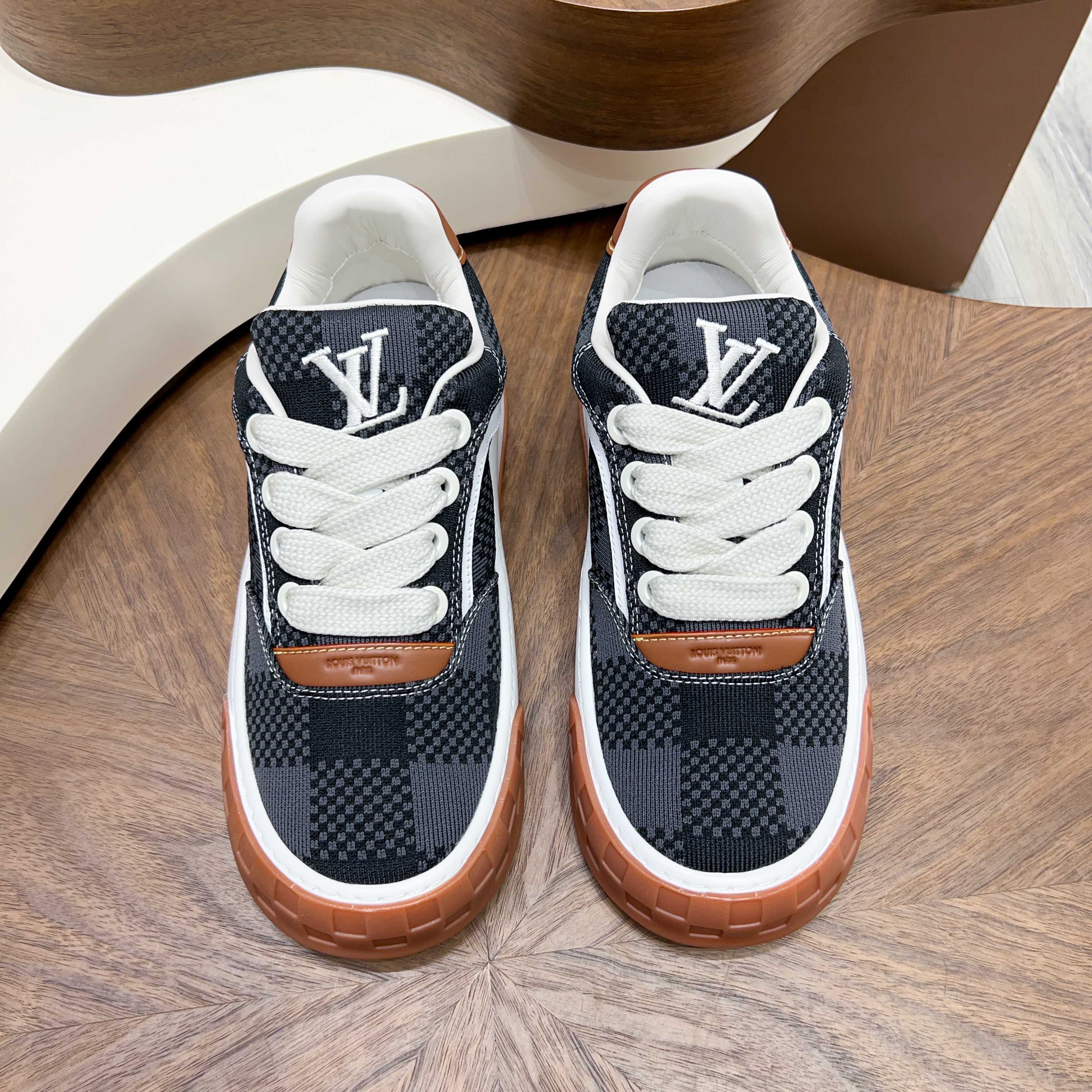 这款鞋子是AAAAA 1:1 质量 (非常棒). 使用了和原版一模一样的材料. 商标部分也保持了和路易威登/Louis Vuitton一样. 图片拍摄是实物鞋子拍摄, 您所收到的实物保证和我们图片一模一样.