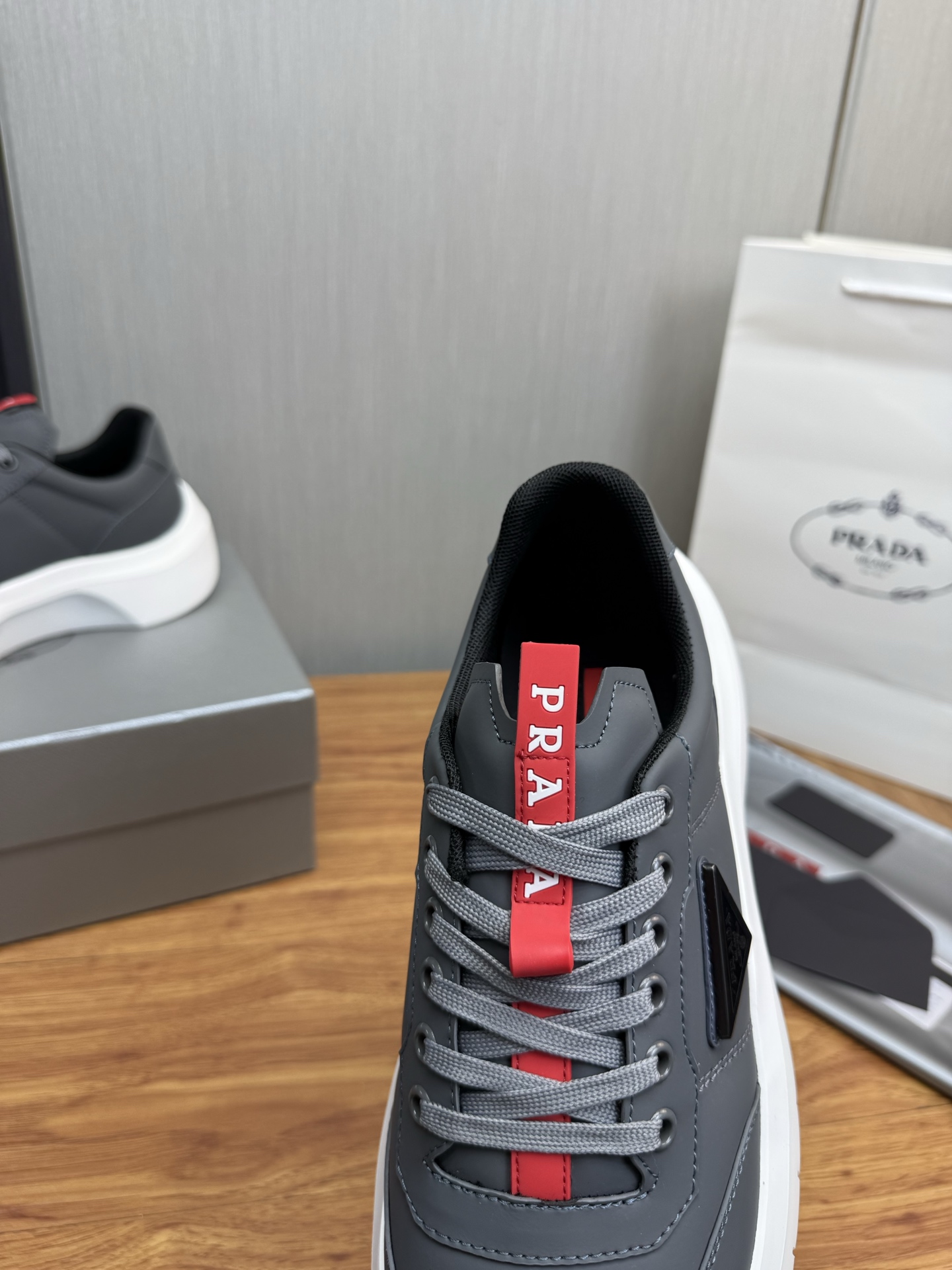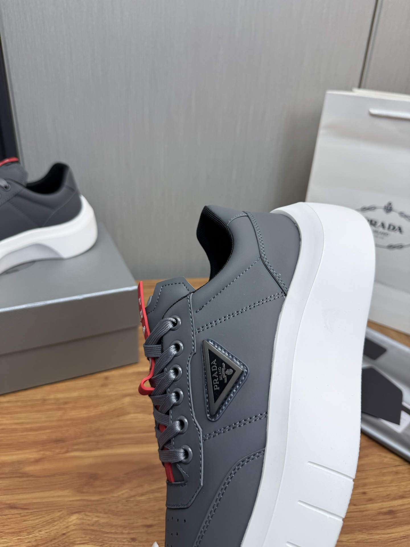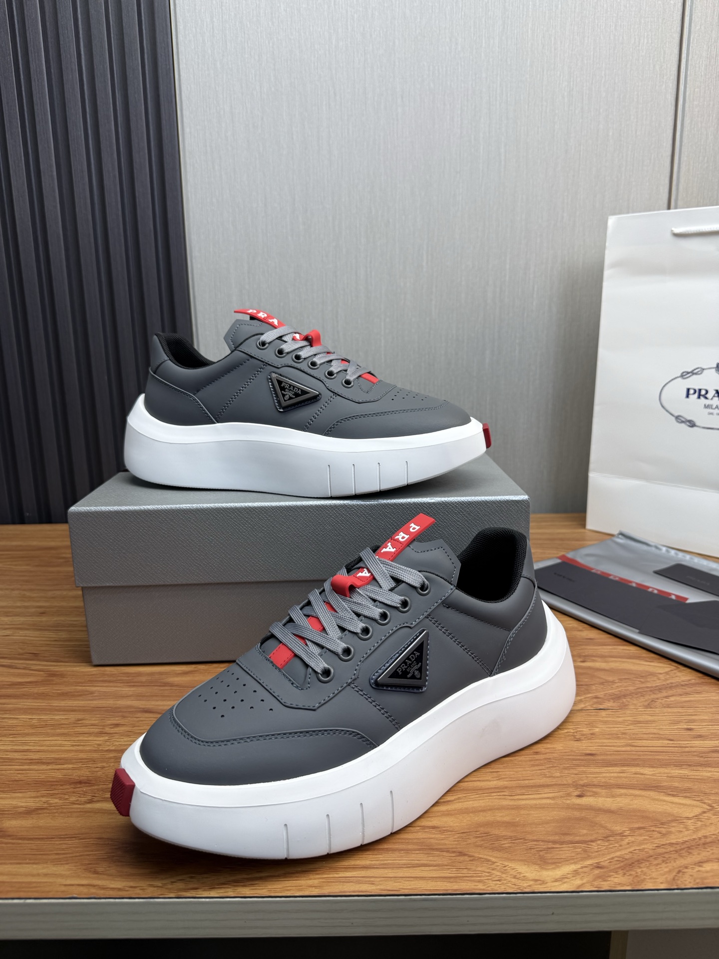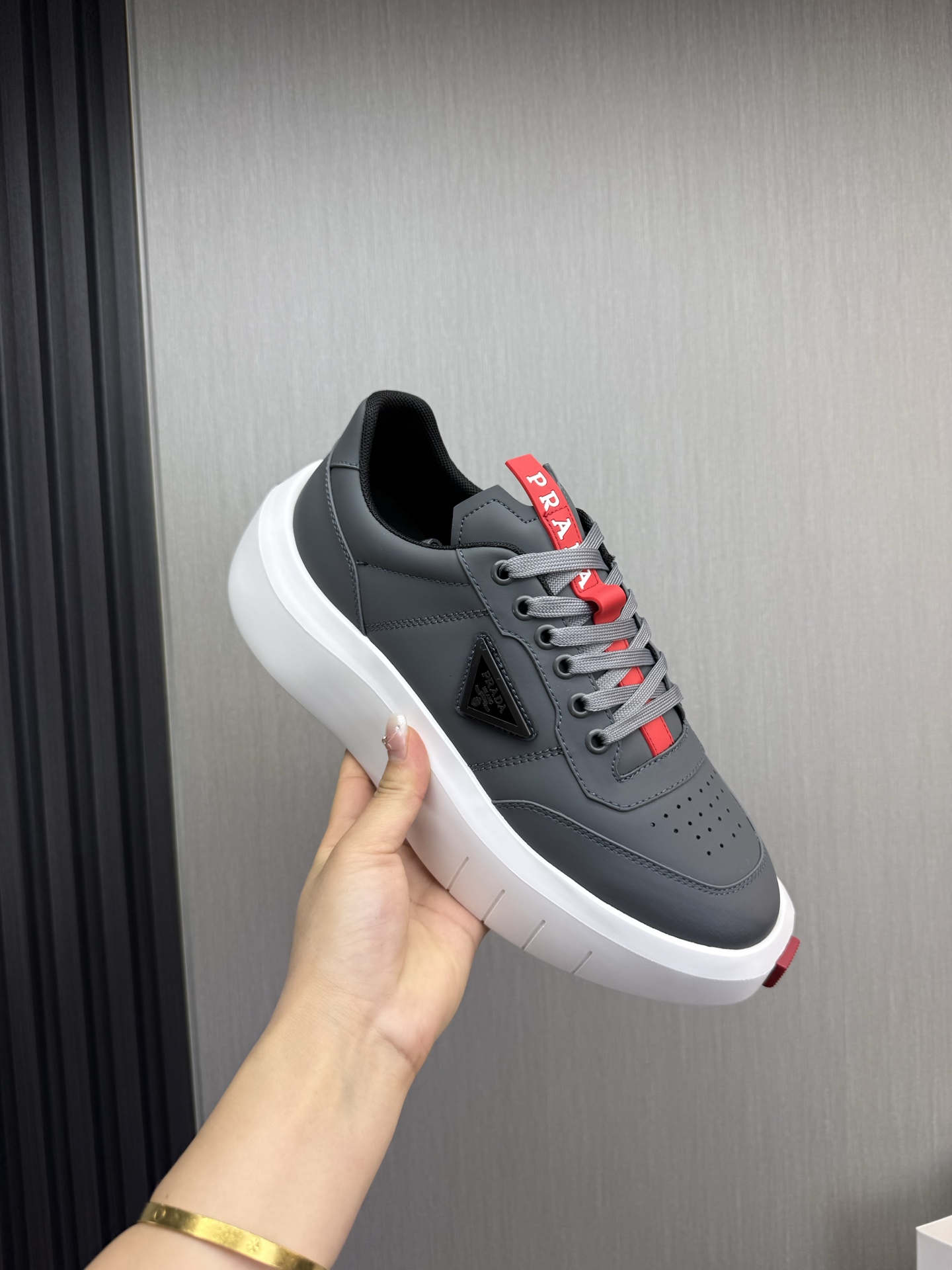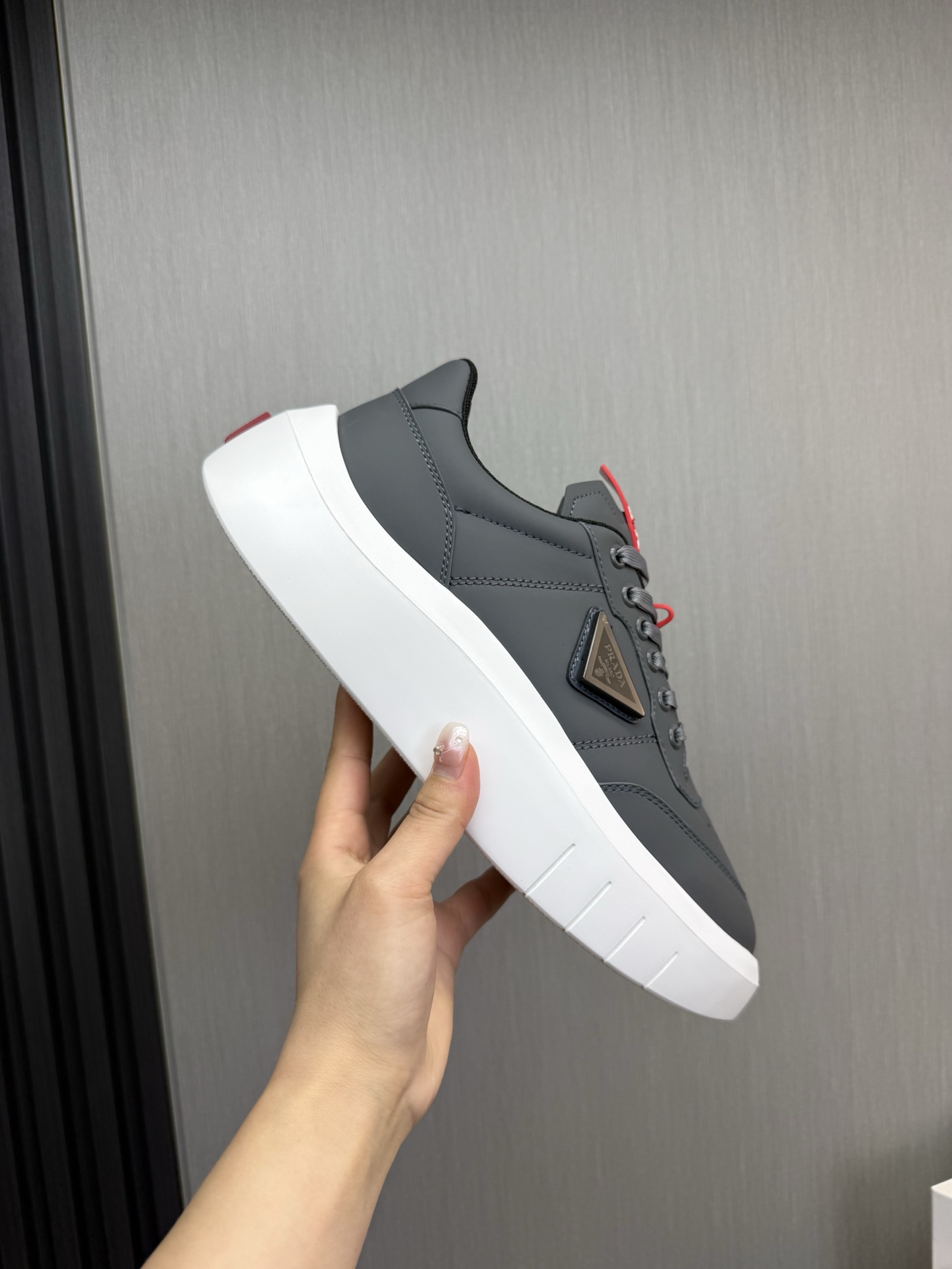 这款鞋子是AAAAA 1:1 质量 (非常棒). 使用了和原版一模一样的材料. 商标部分也保持了和普拉达/Prada一样. 图片拍摄是实物鞋子拍摄, 您所收到的实物保证和我们图片一模一样.