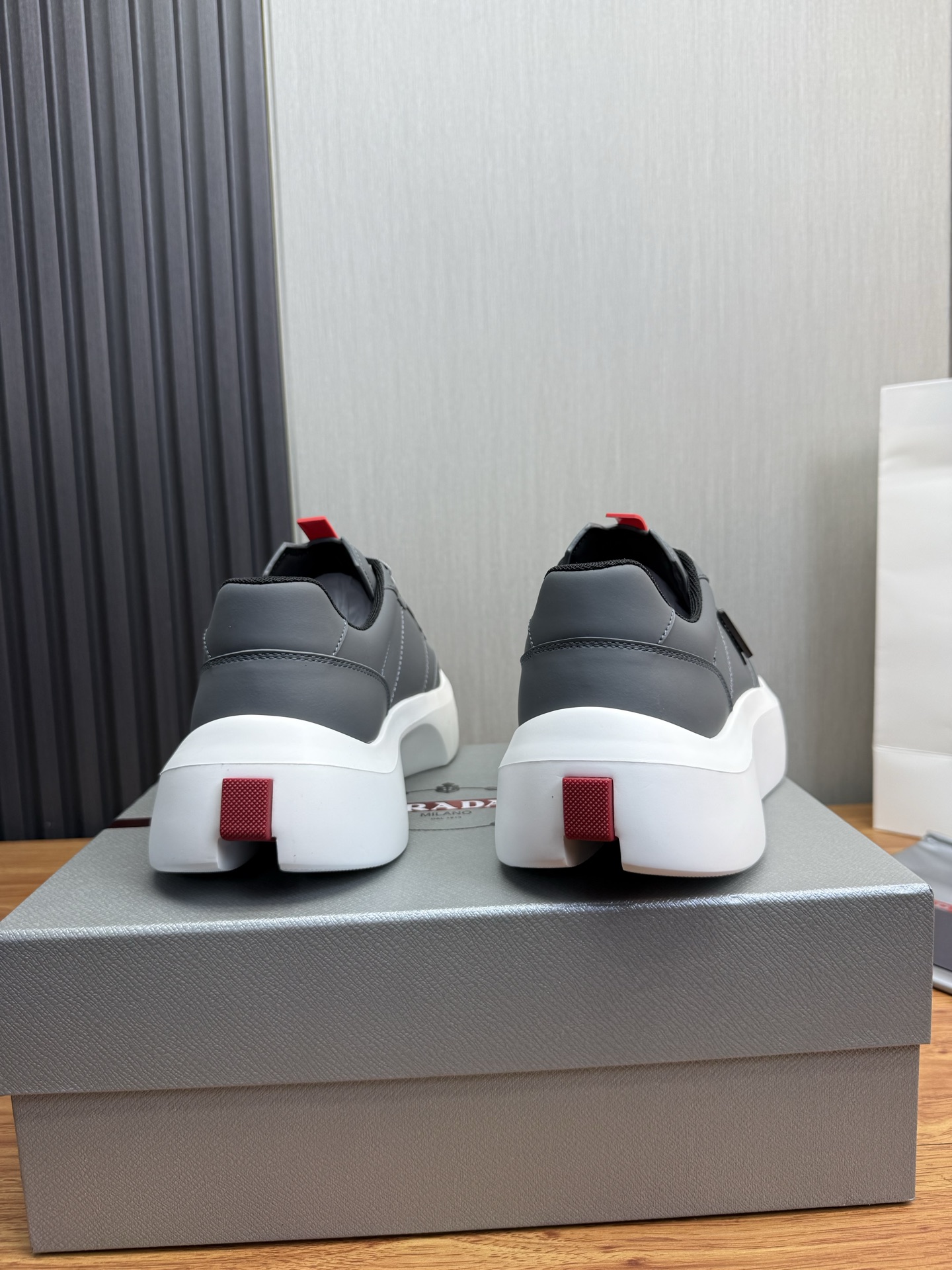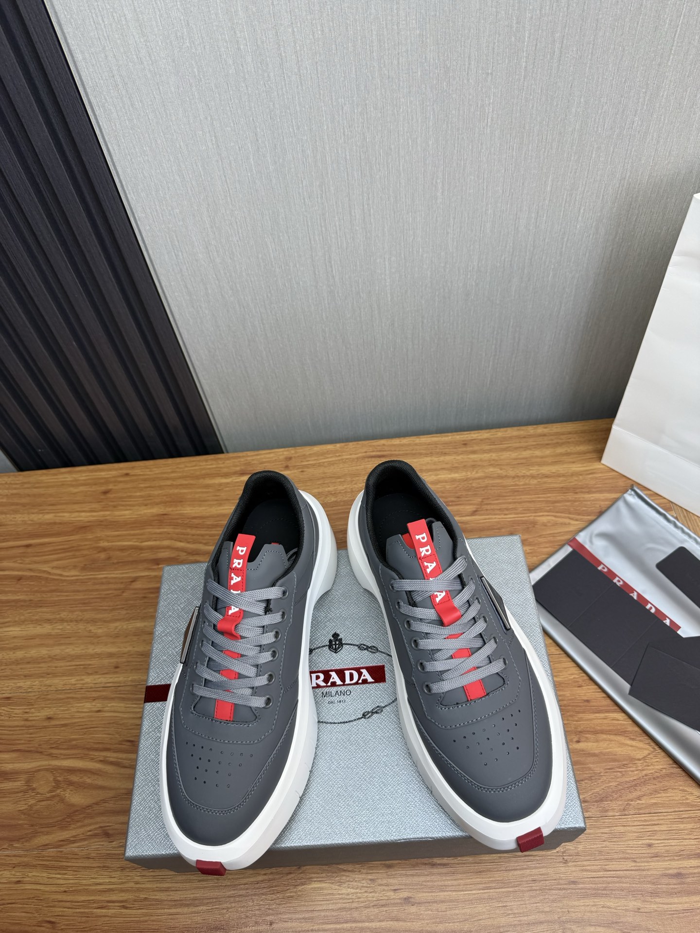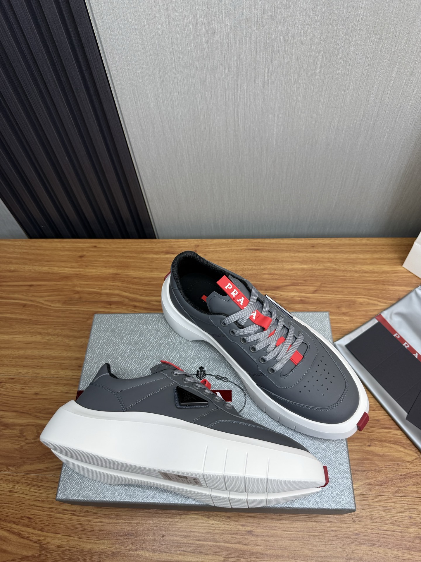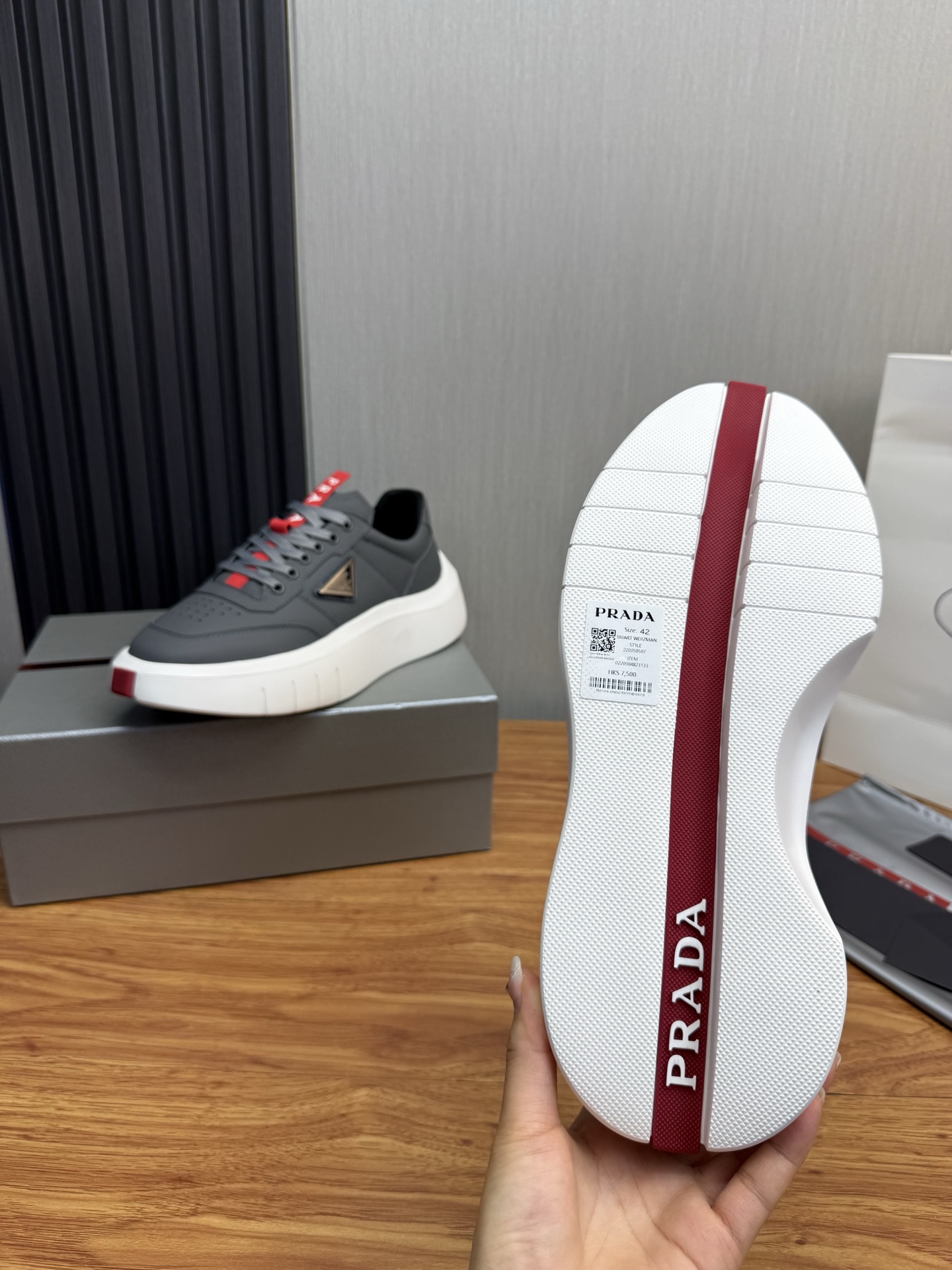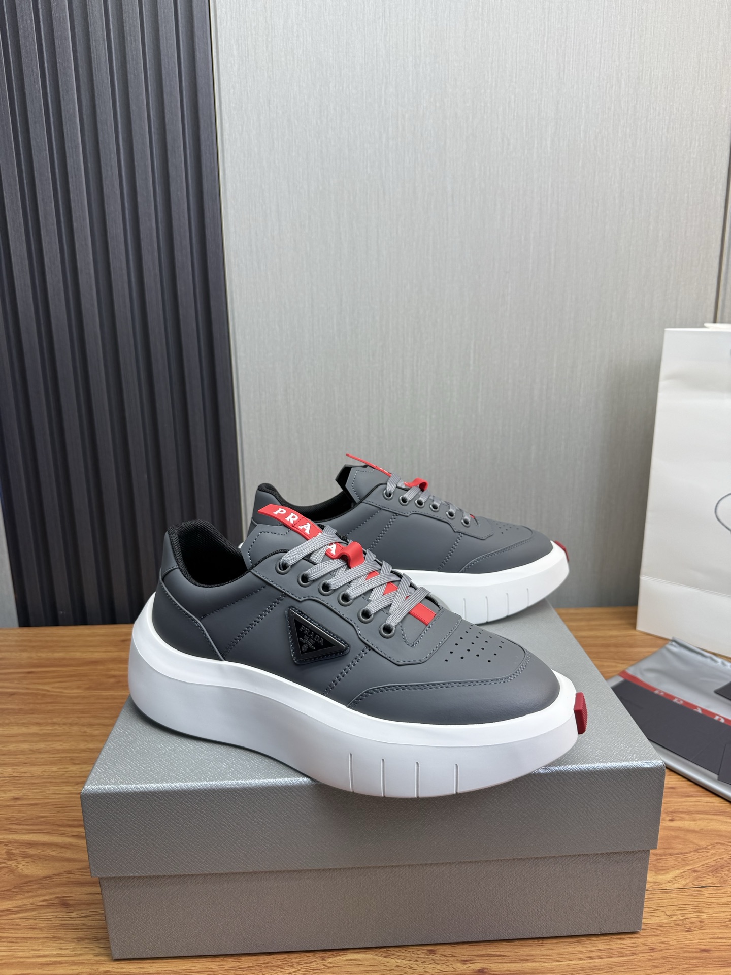 这款鞋子是AAAAA 1:1 质量 (非常棒). 使用了和原版一模一样的材料. 商标部分也保持了和普拉达/Prada一样. 图片拍摄是实物鞋子拍摄, 您所收到的实物保证和我们图片一模一样.