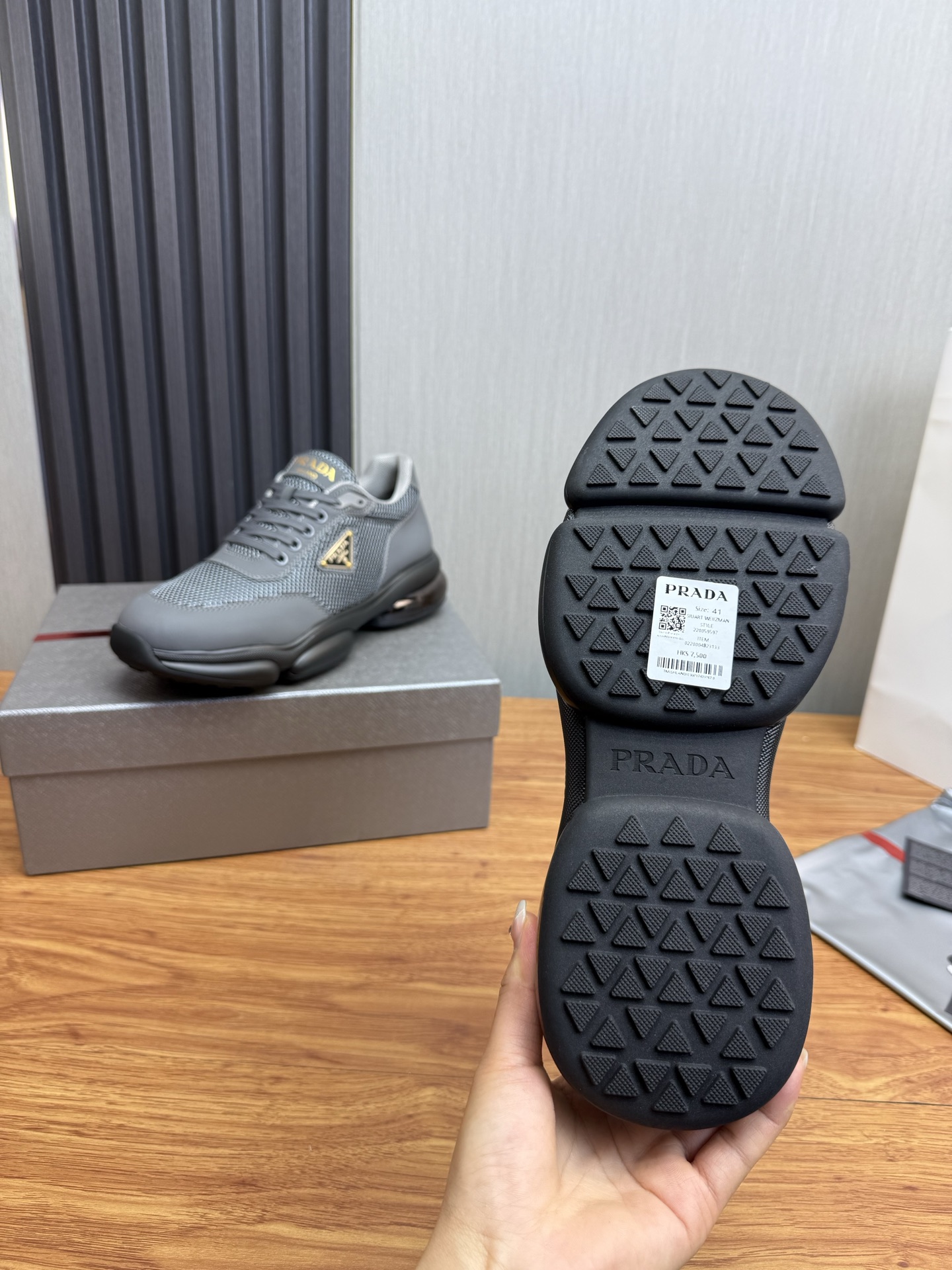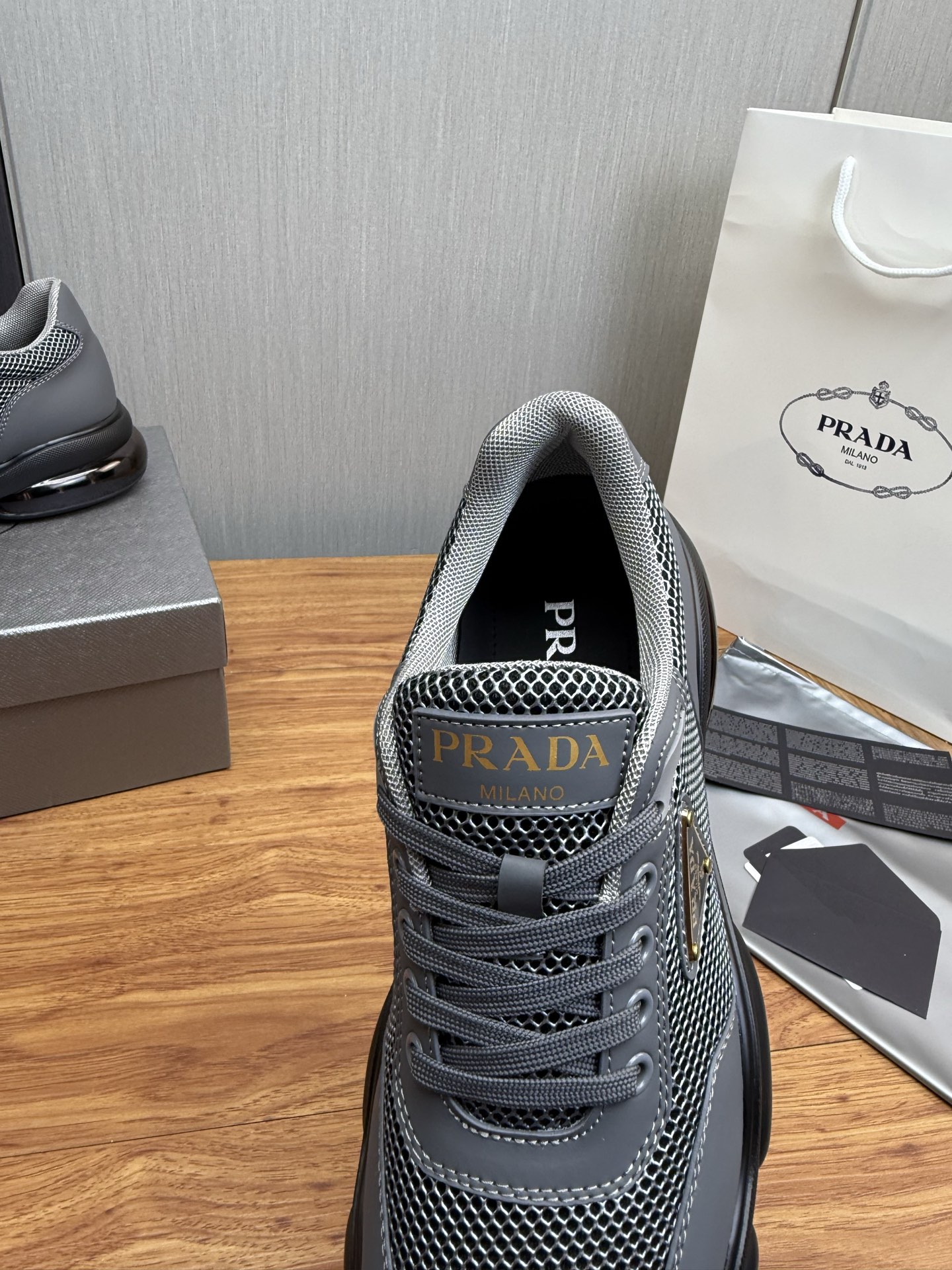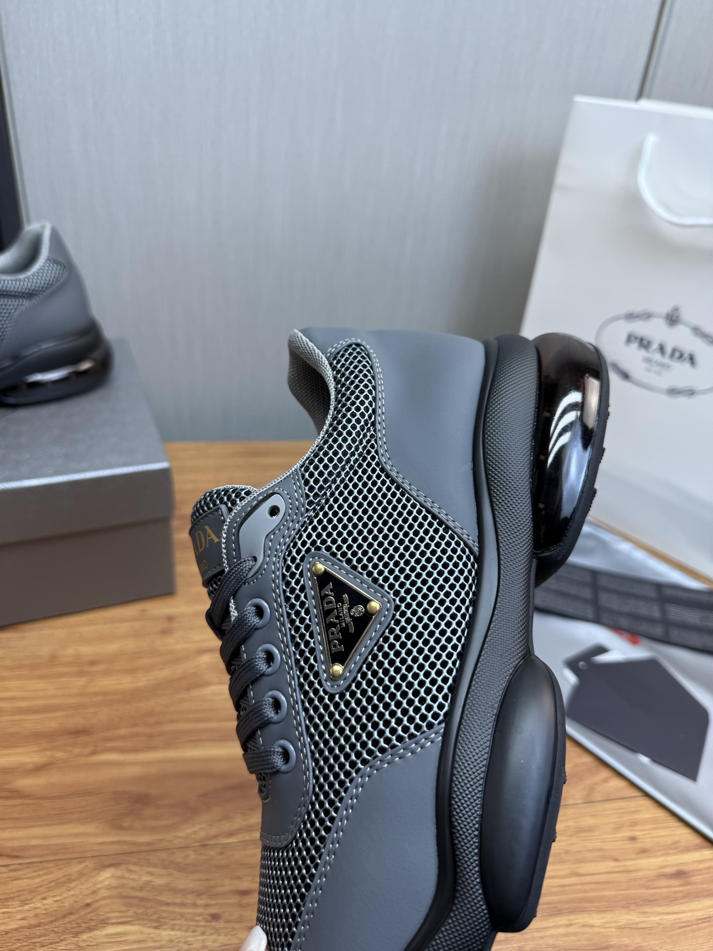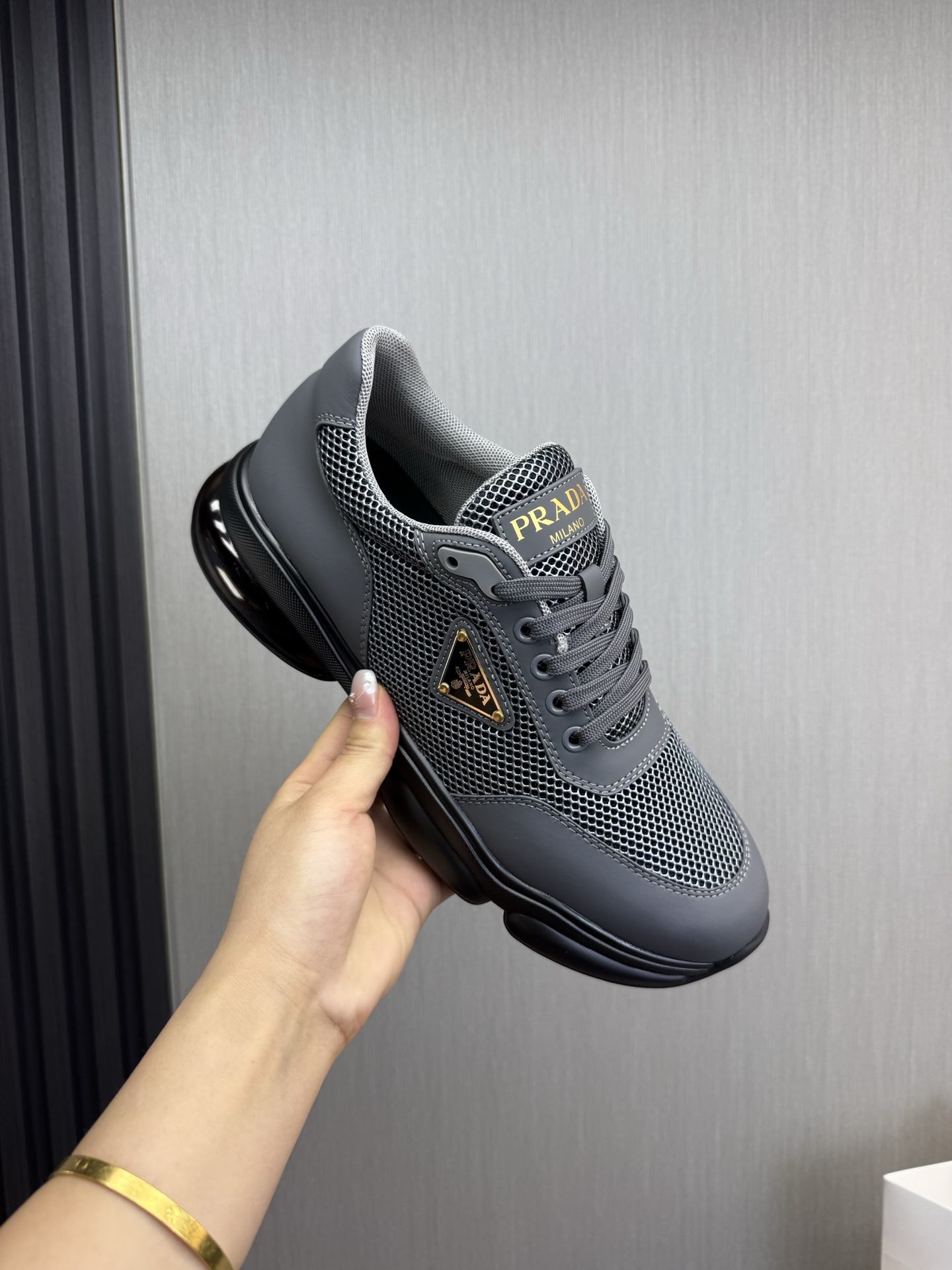 这款鞋子是AAAAA 1:1 质量 (非常棒). 使用了和原版一模一样的材料. 商标部分也保持了和普拉达/Prada一样. 图片拍摄是实物鞋子拍摄, 您所收到的实物保证和我们图片一模一样.
