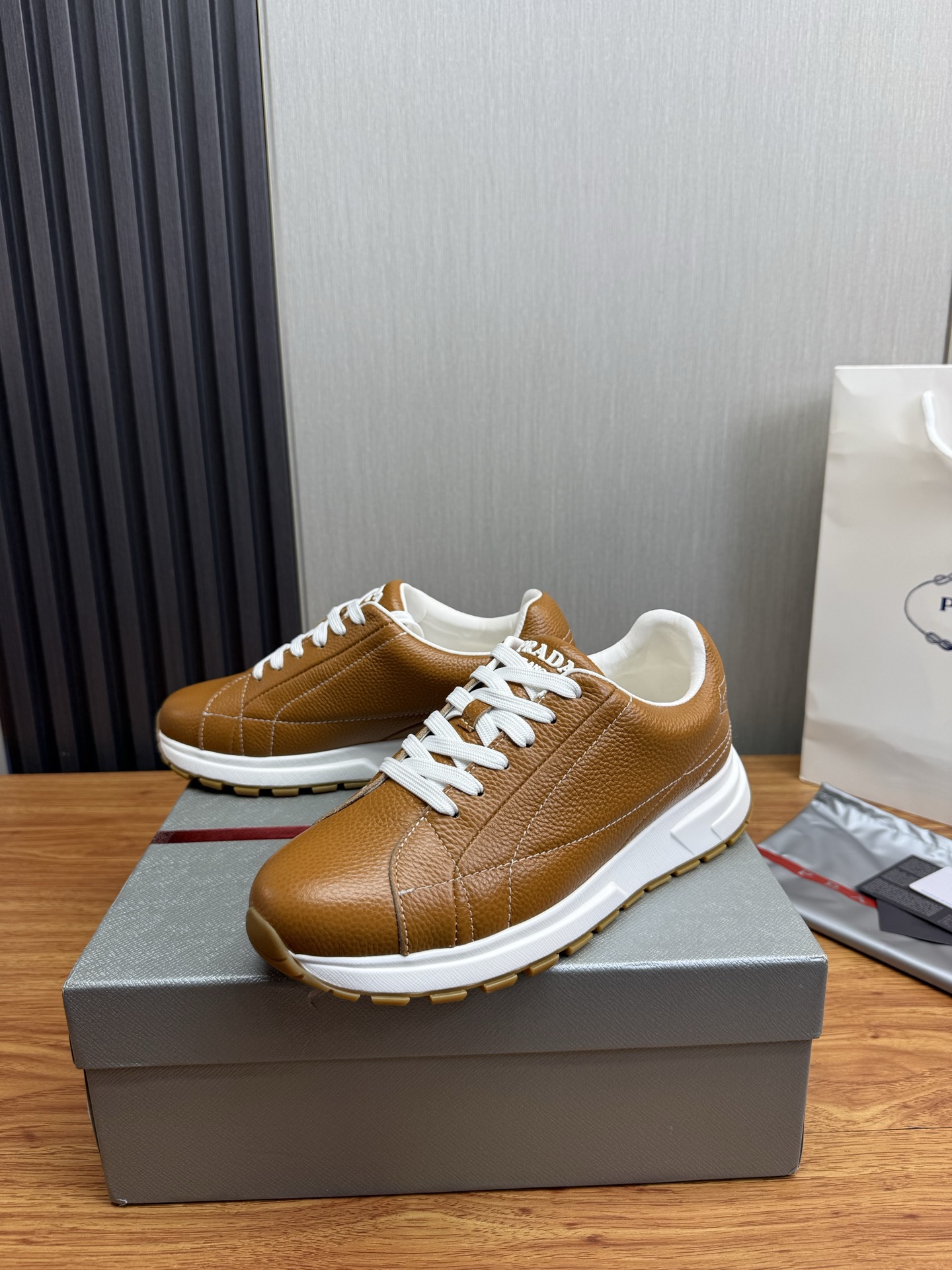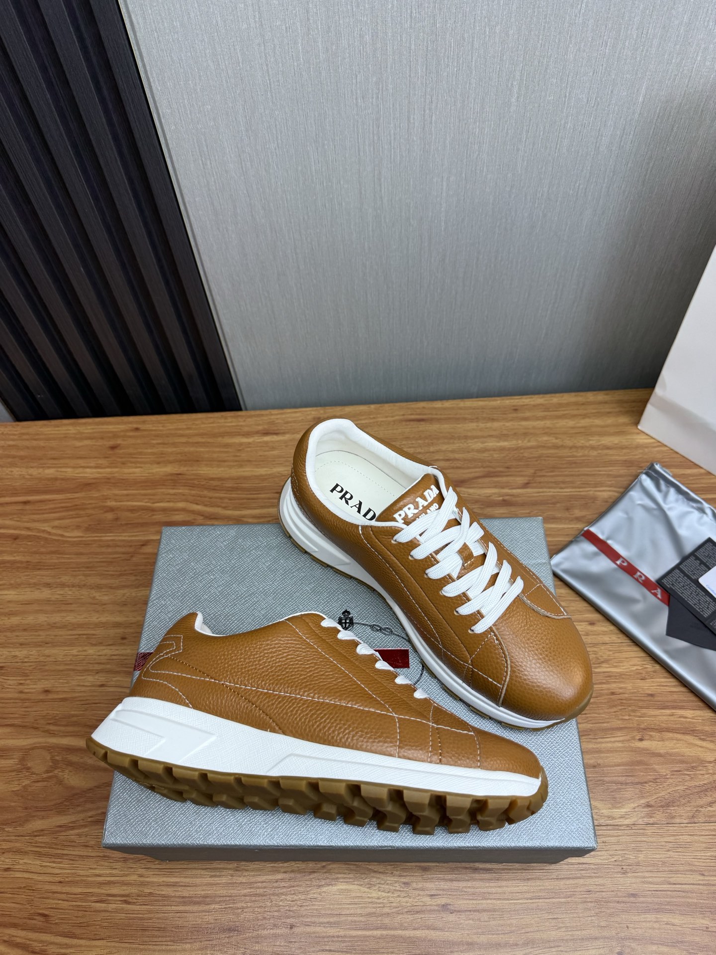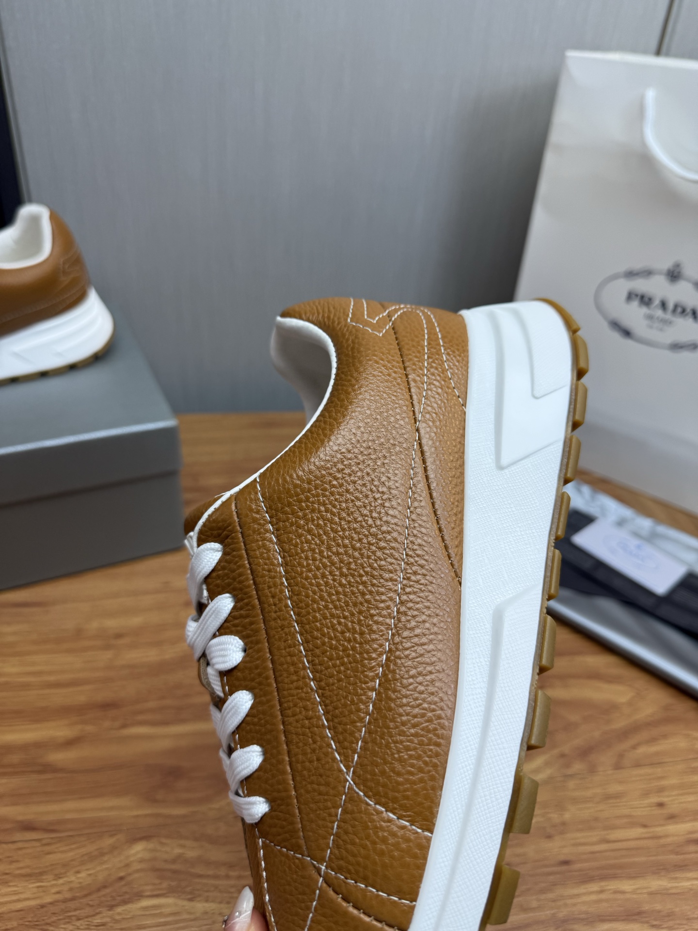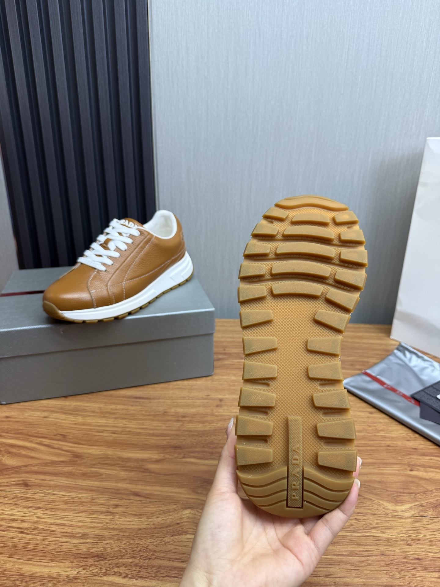 这款鞋子是AAAAA 1:1 质量 (非常棒). 使用了和原版一模一样的材料. 商标部分也保持了和普拉达/Prada一样. 图片拍摄是实物鞋子拍摄, 您所收到的实物保证和我们图片一模一样.