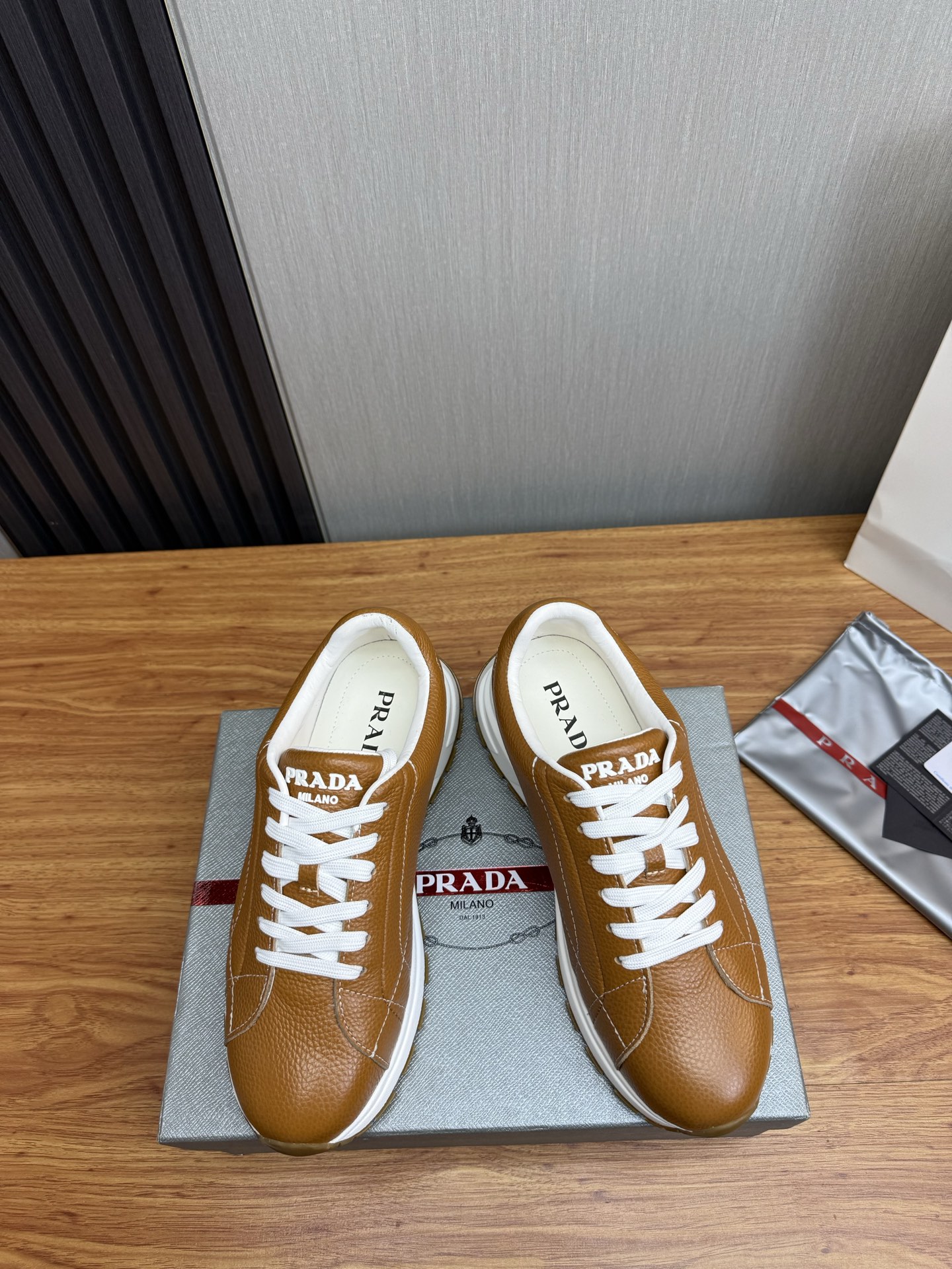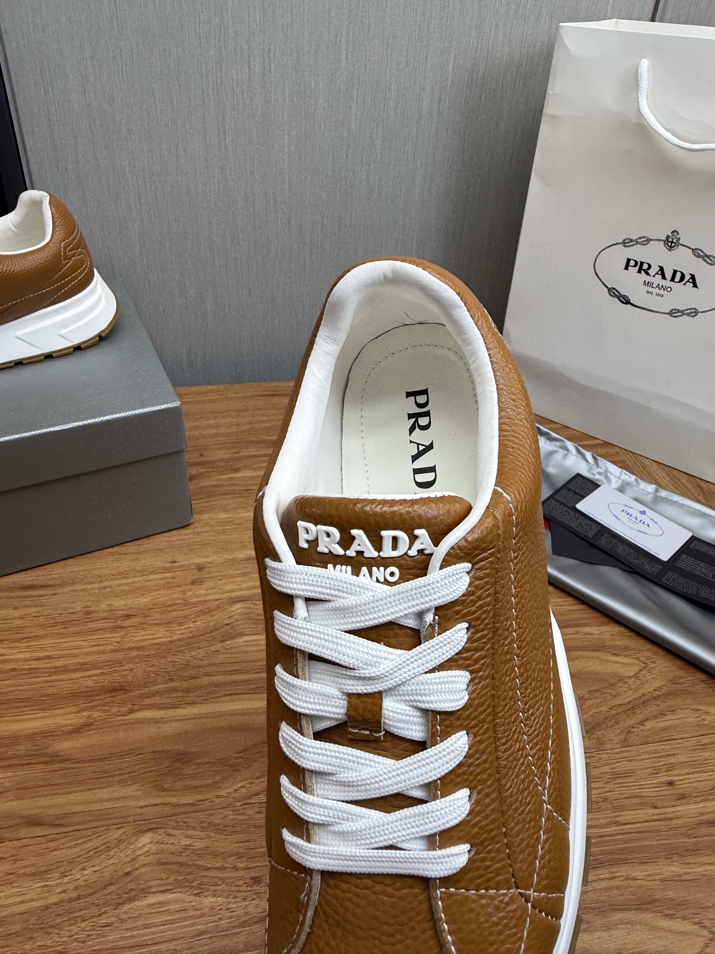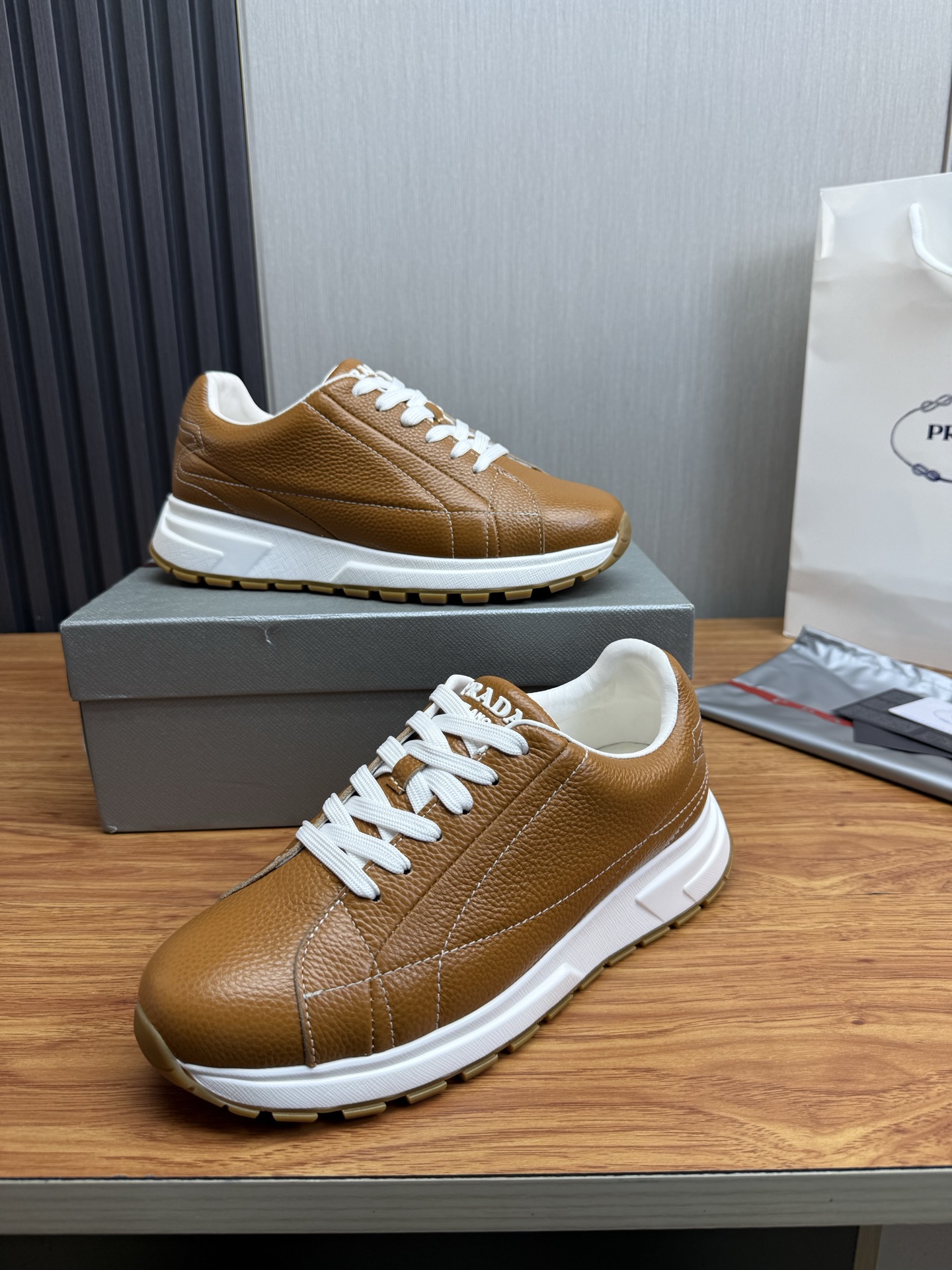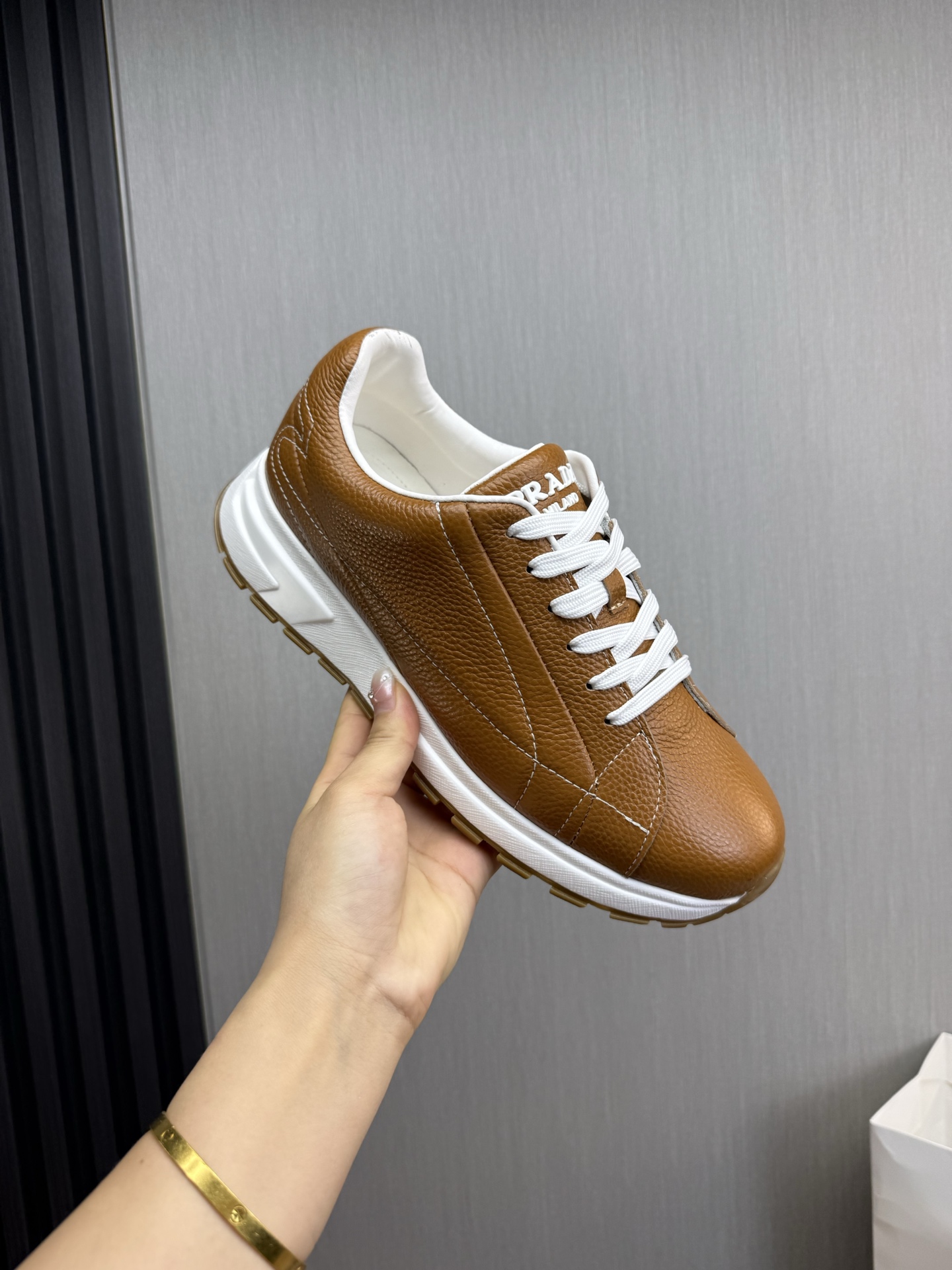这款鞋子是AAAAA 1:1 质量 (非常棒). 使用了和原版一模一样的材料. 商标部分也保持了和普拉达/Prada一样. 图片拍摄是实物鞋子拍摄, 您所收到的实物保证和我们图片一模一样.