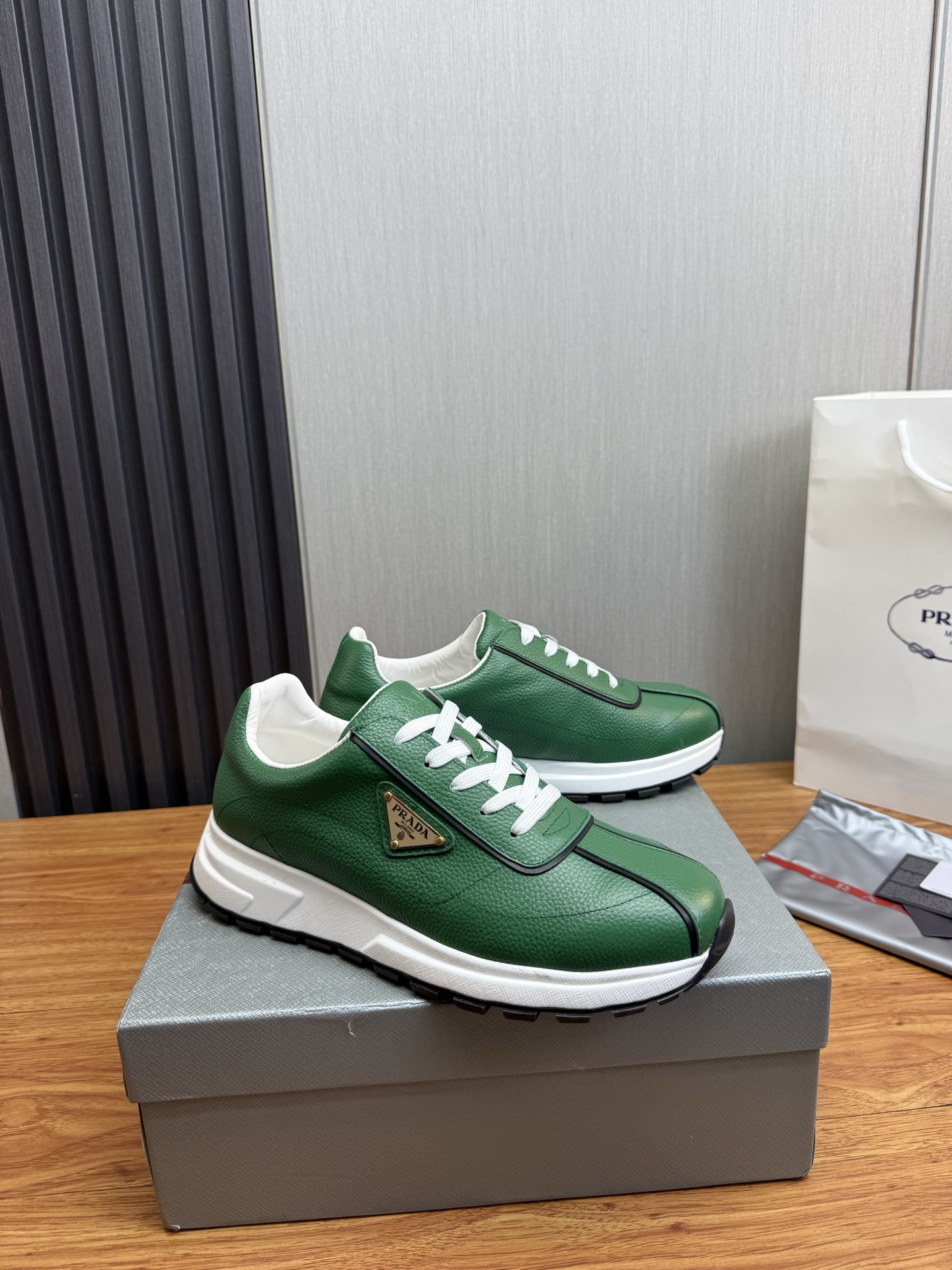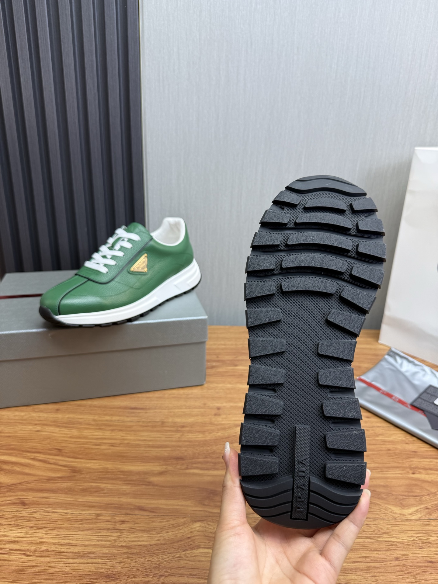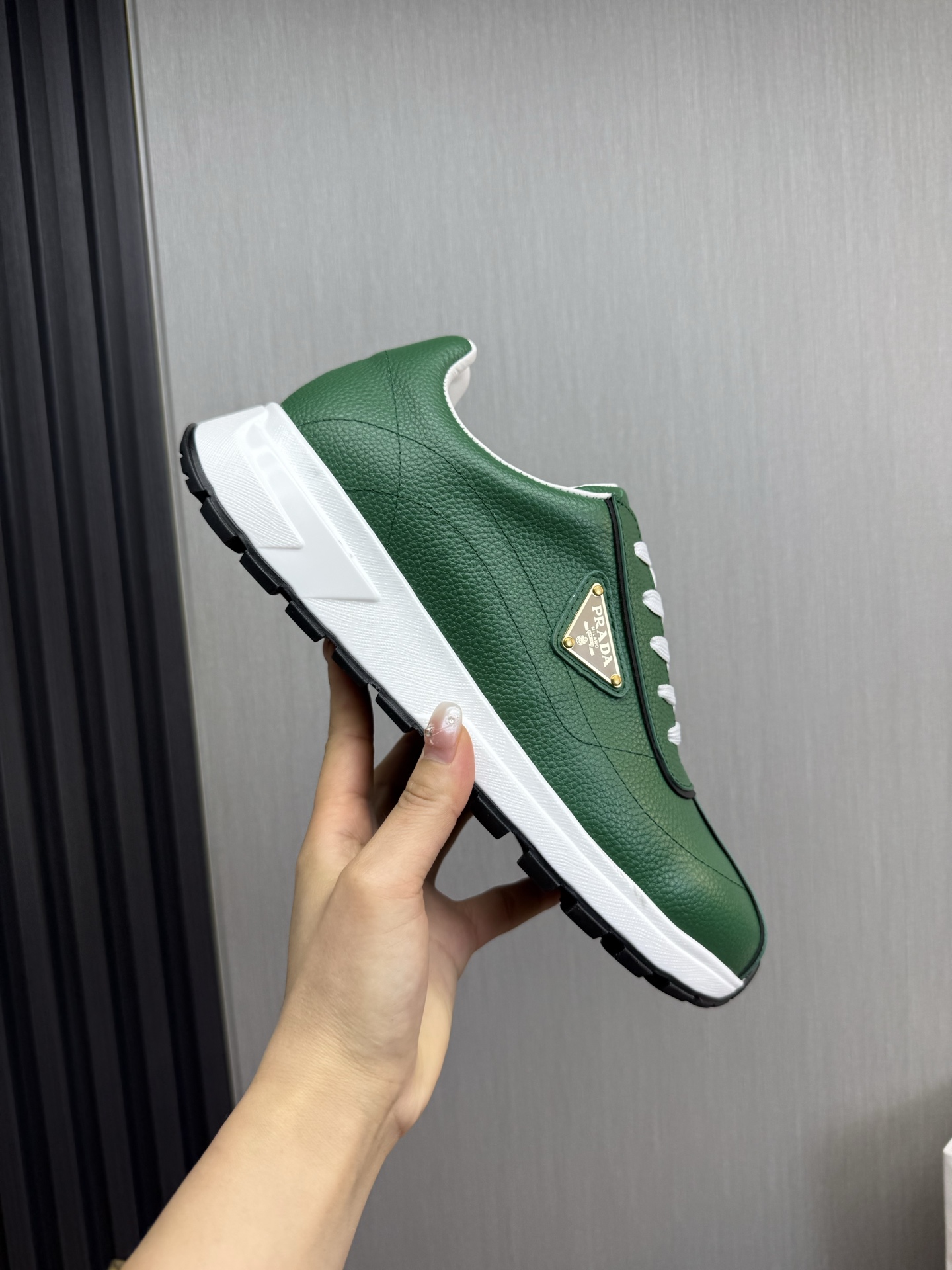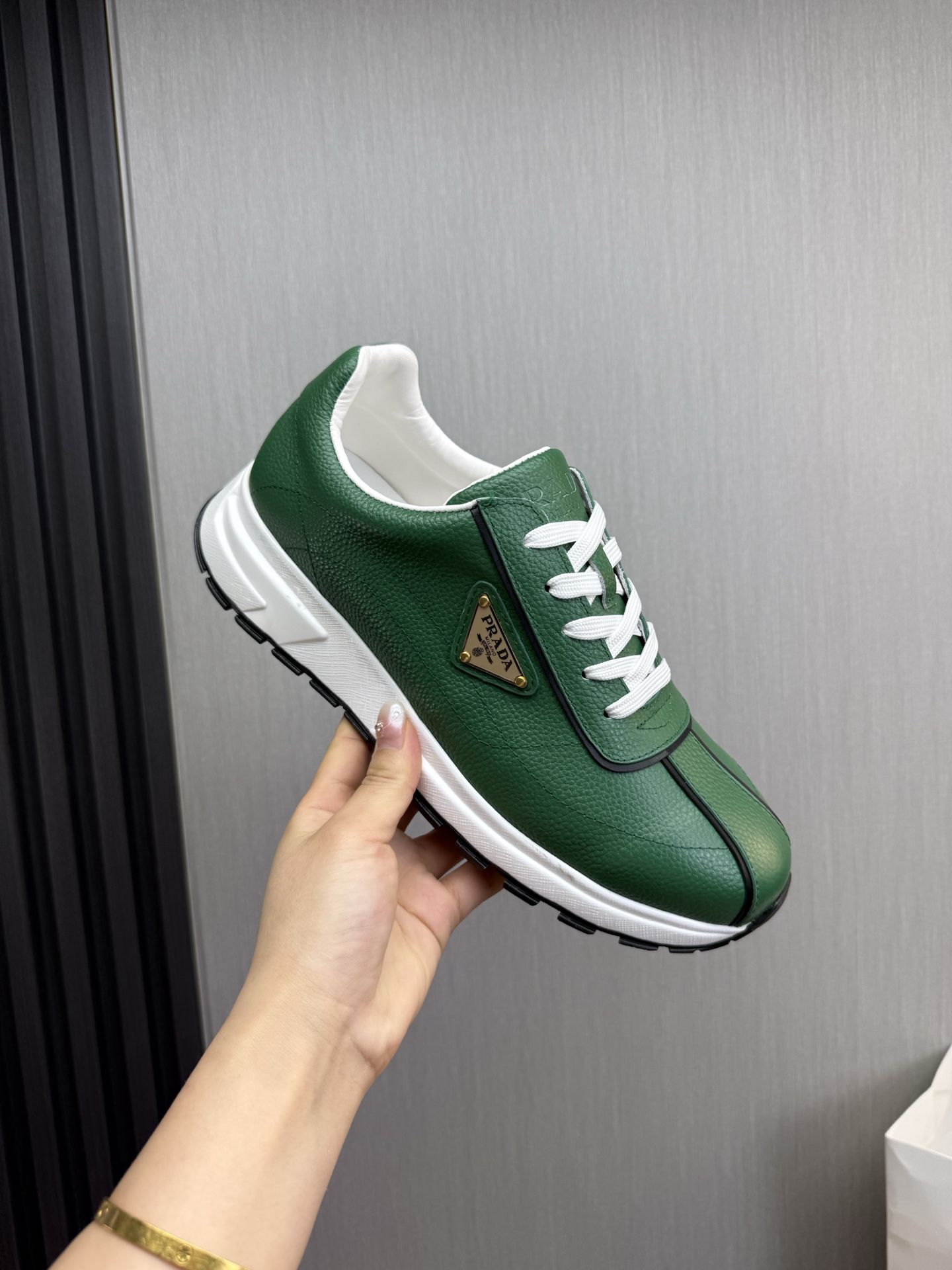 这款鞋子是AAAAA 1:1 质量 (非常棒). 使用了和原版一模一样的材料. 商标部分也保持了和普拉达/Prada一样. 图片拍摄是实物鞋子拍摄, 您所收到的实物保证和我们图片一模一样.